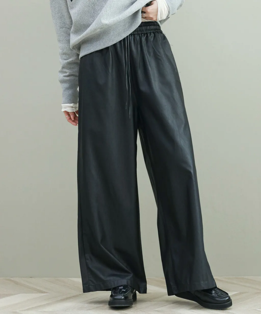 迷ったらこれ:フェイクレザーワイドパンツ(洒落感を底上げ)