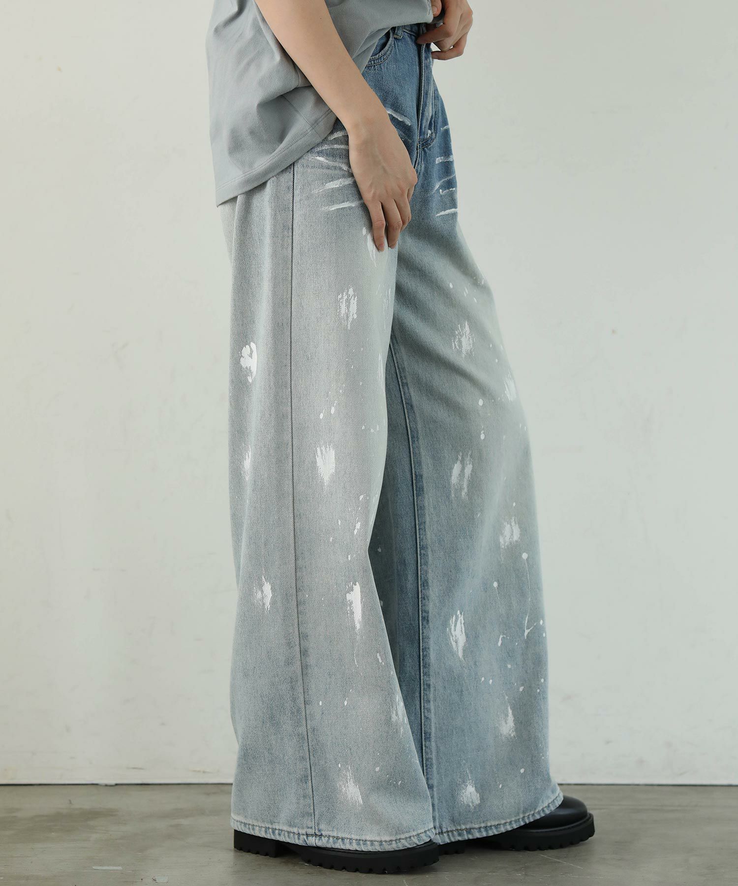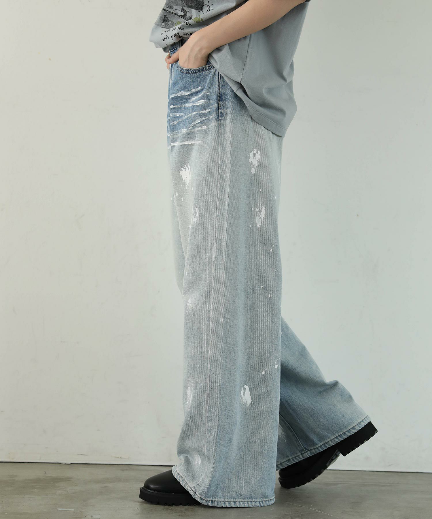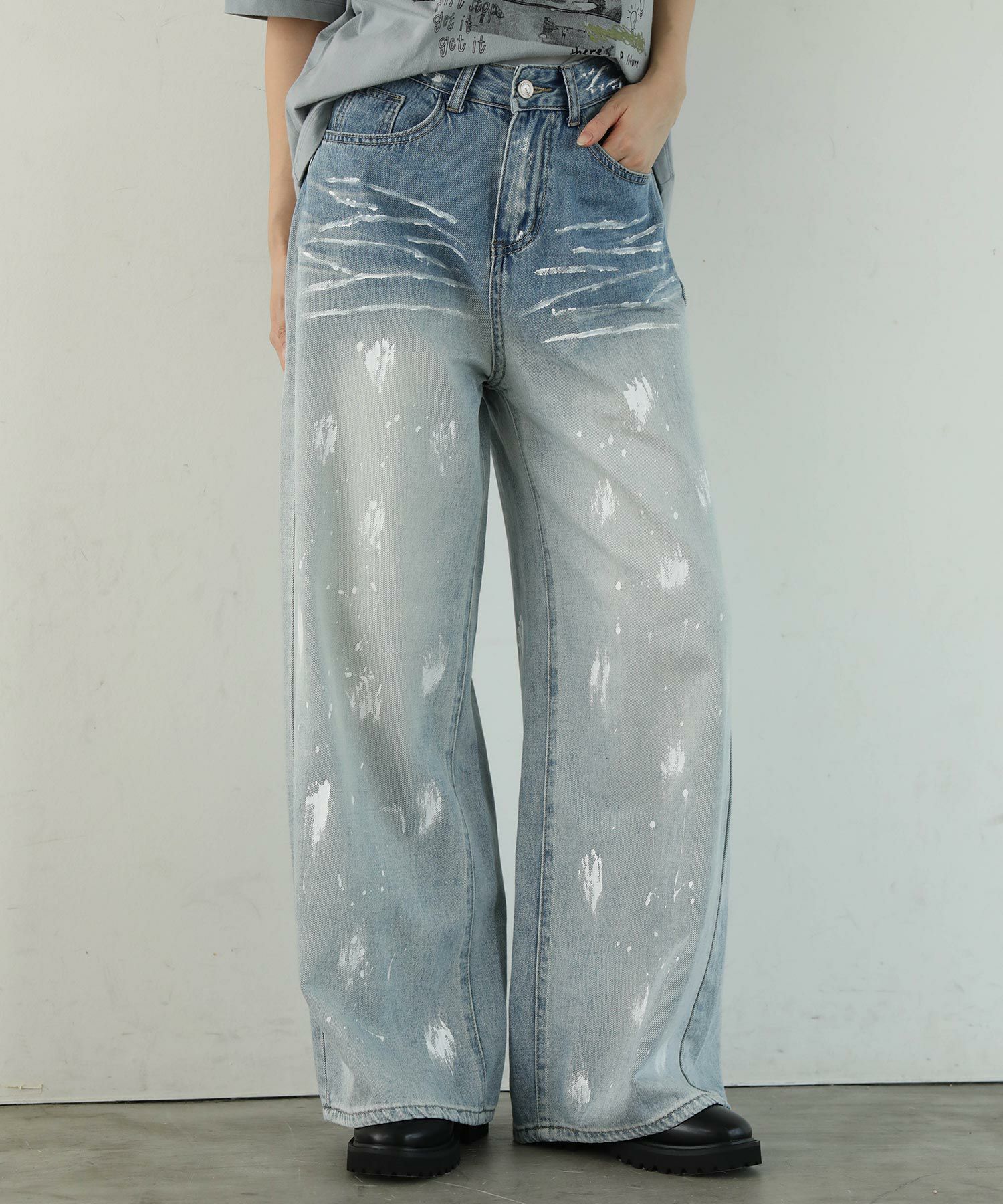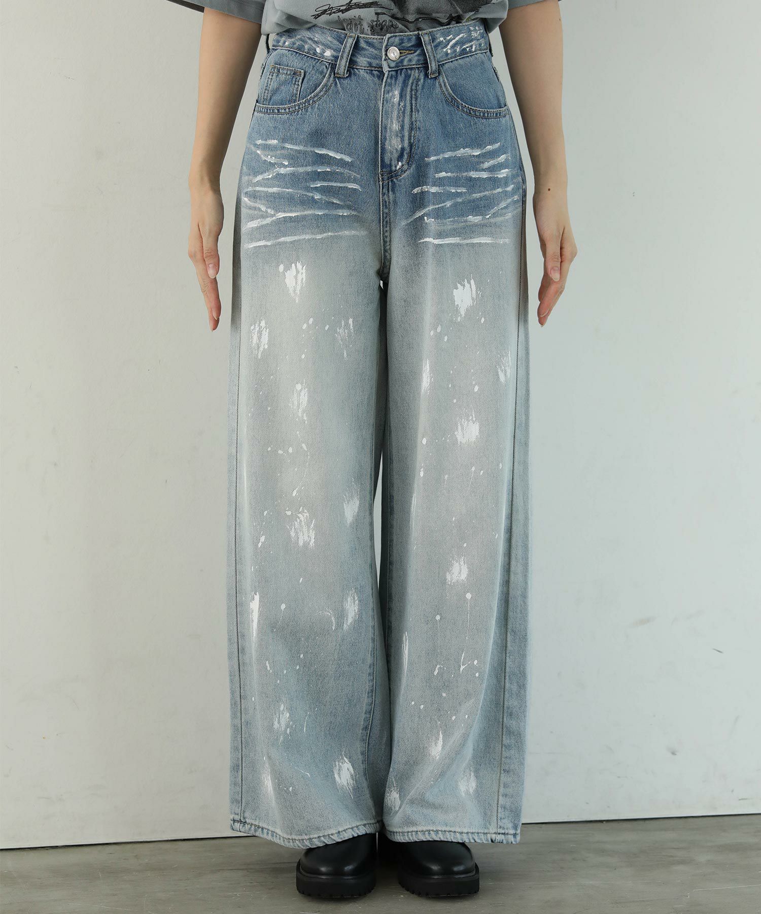 大胆なペイントデザインが目を引くデニムパンツ