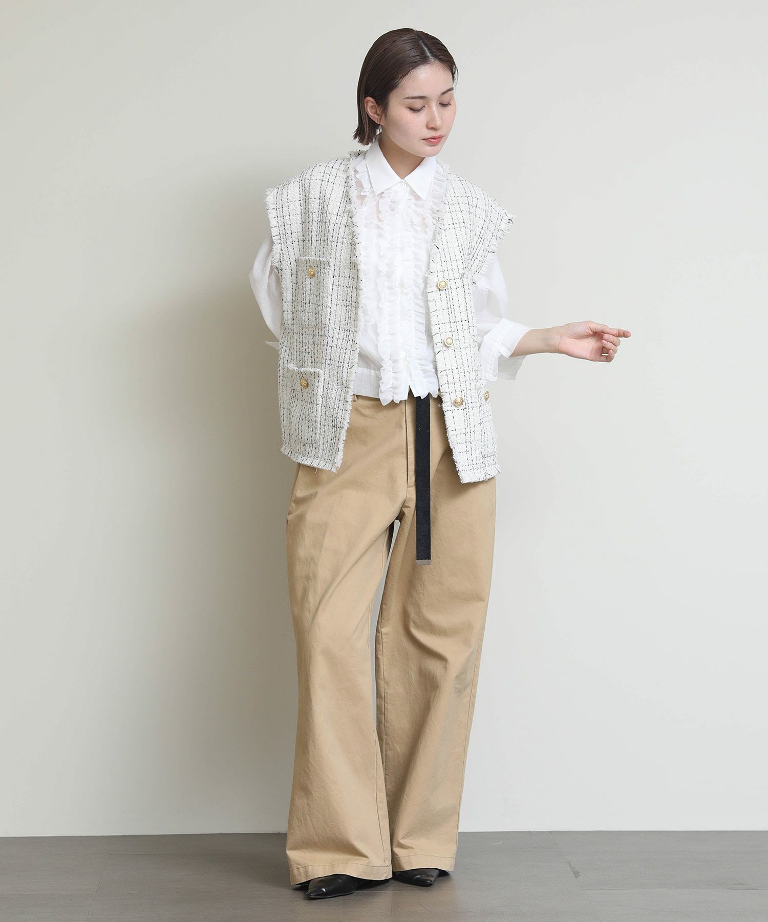 高級感のあるツイード素材のベストが登場。