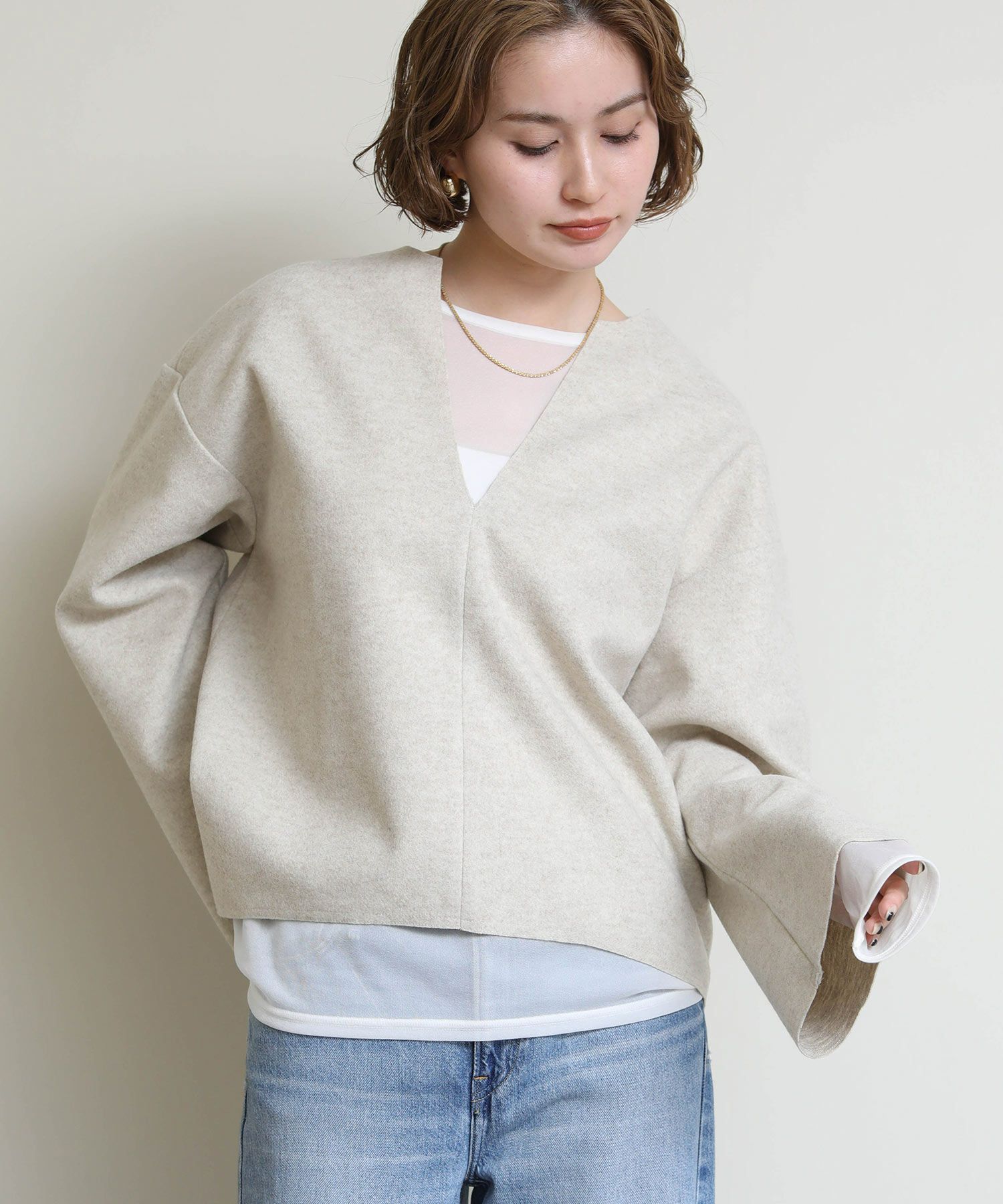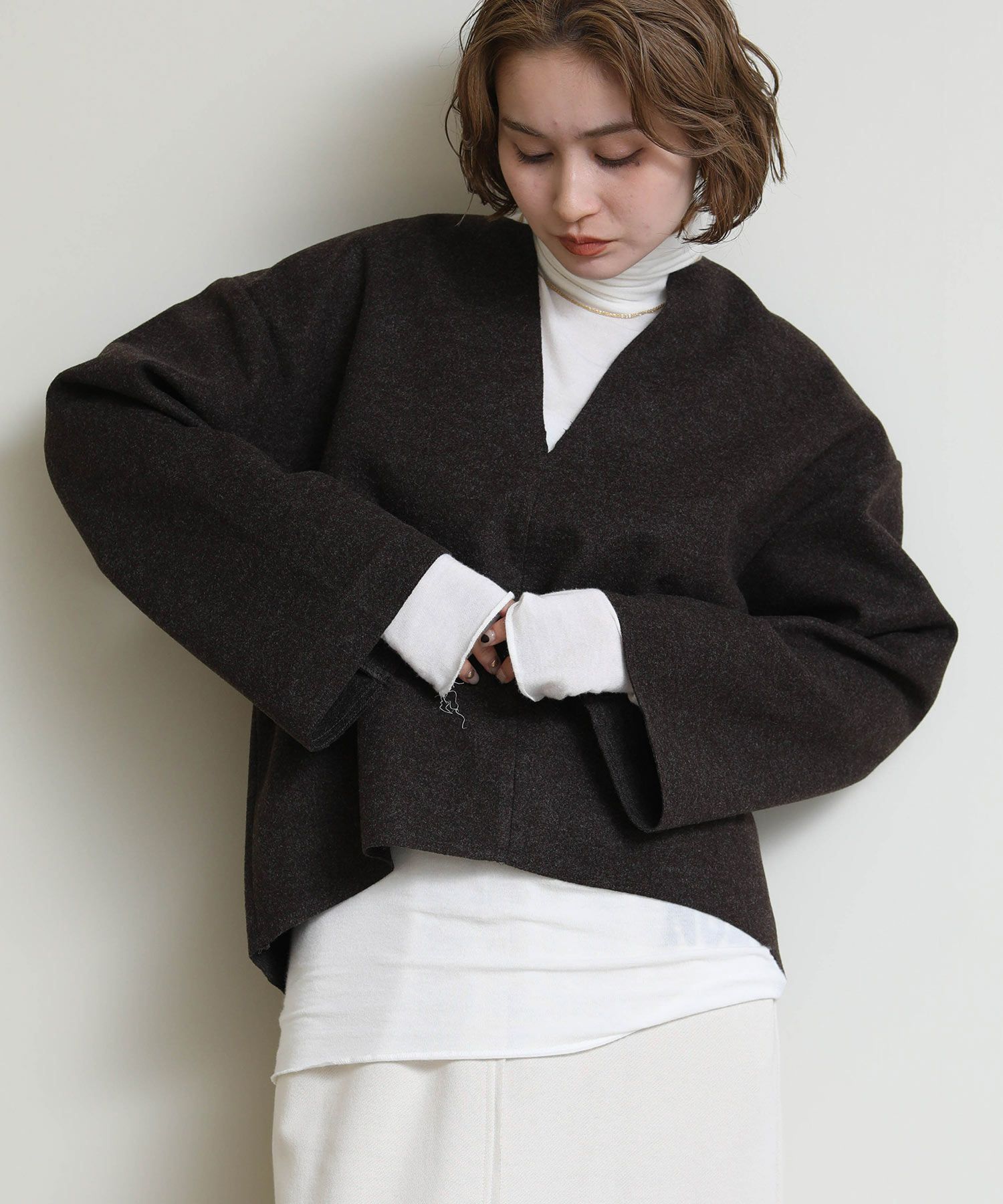 ※着用画像は撮影状況、光の当たり具合で色みが違って見える場合がございます。実際の色みについては、画像一覧の最後に掲載している詳細画像をご参照ください。