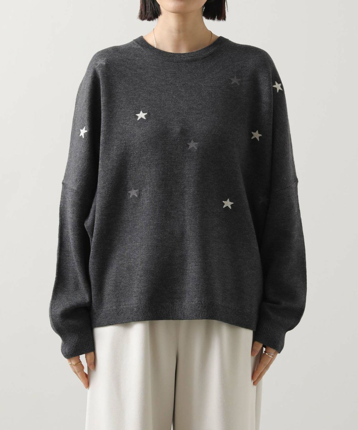 星刺繍スムースクルーネックプルオーバー