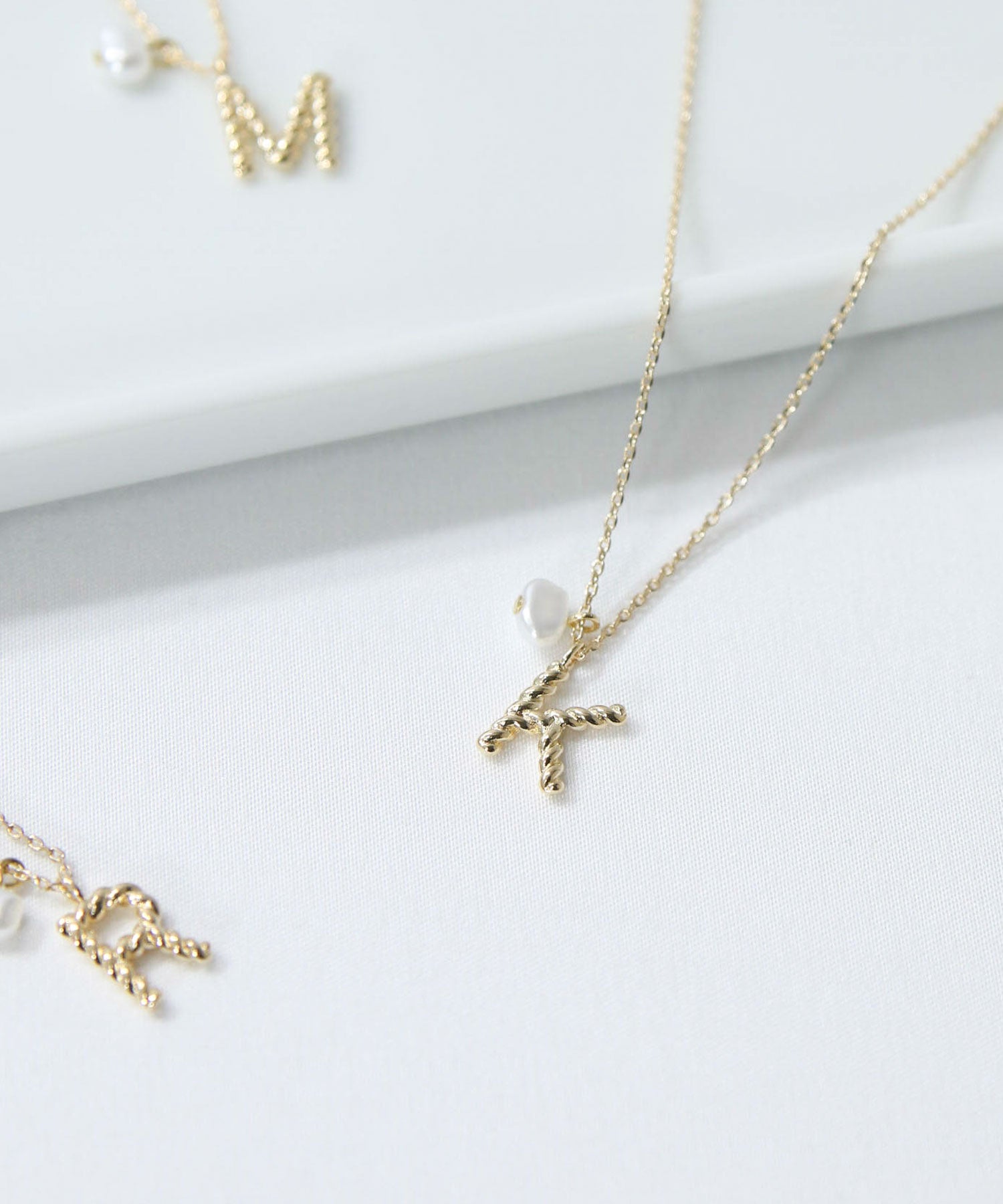 首元に可愛さと華やかさをプラスしてくれるイニシャルネックレス。