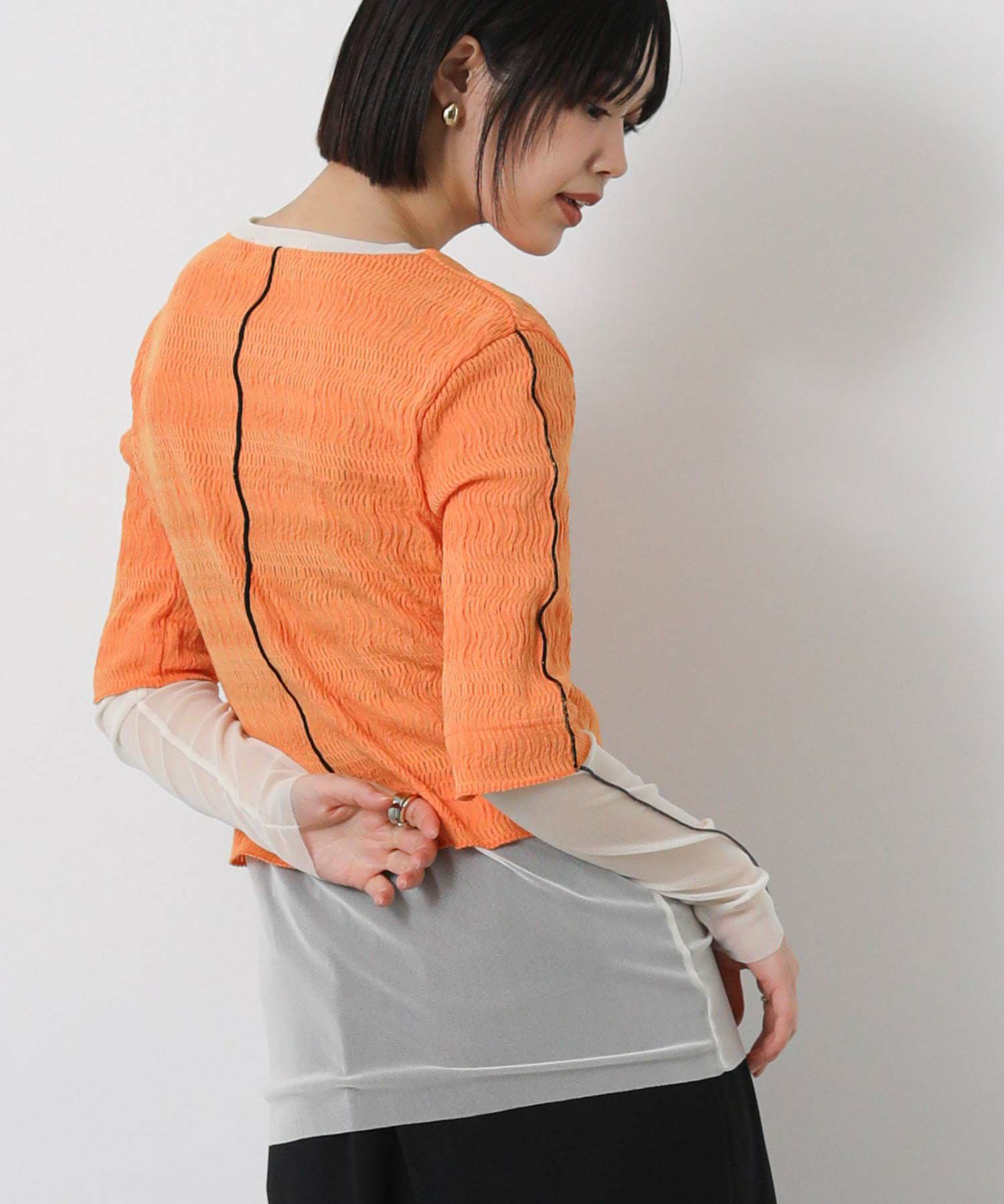 ※着用画像は撮影状況、光の当たり具合で色みが違って見える場合がございます。実際の色みについては、画像一覧の最後に掲載している詳細画像をご参照ください。