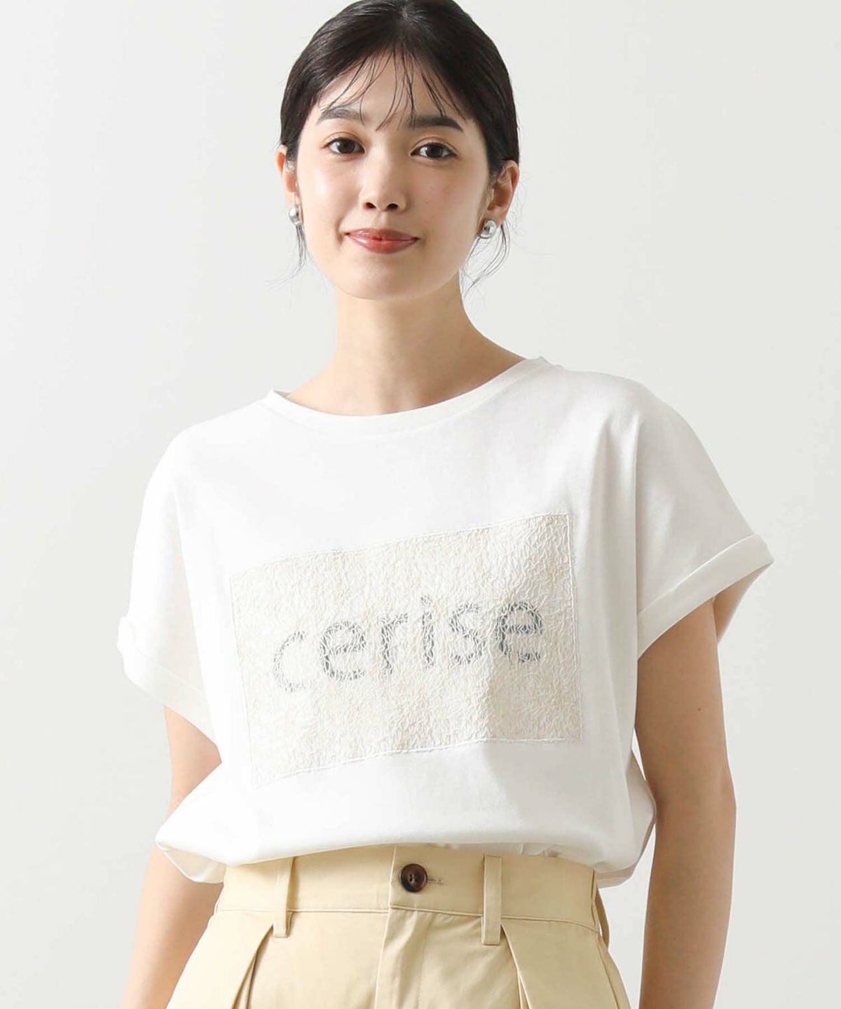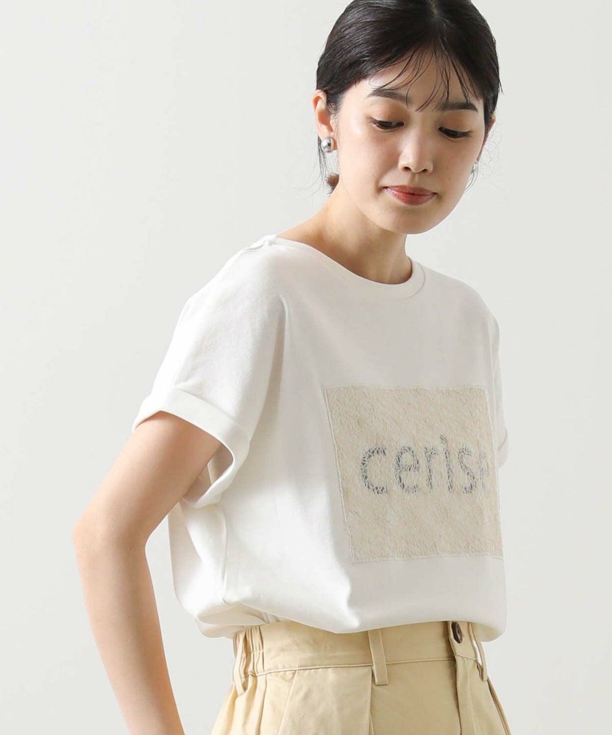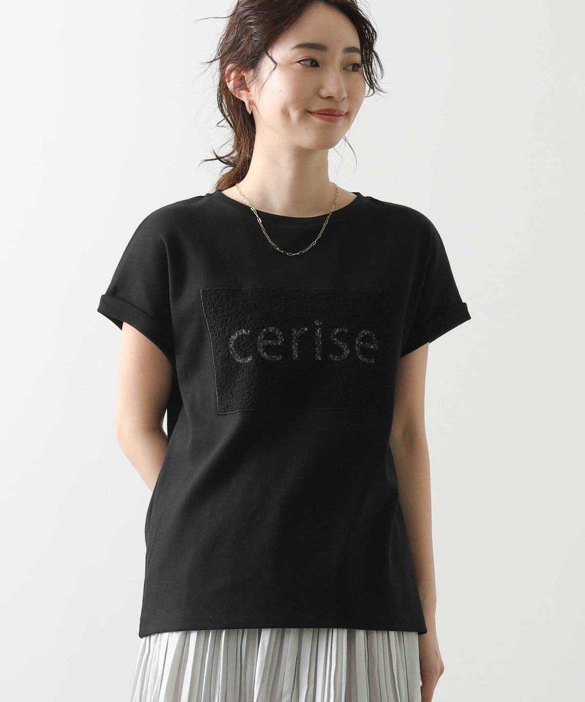スクエアネックシアーヘムTシャツ
