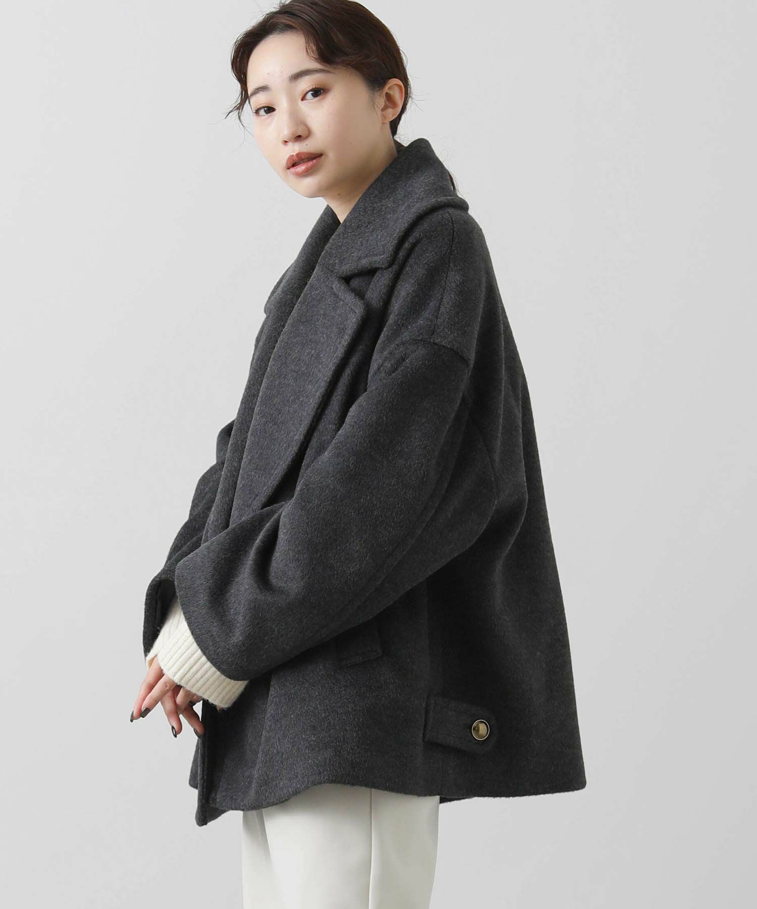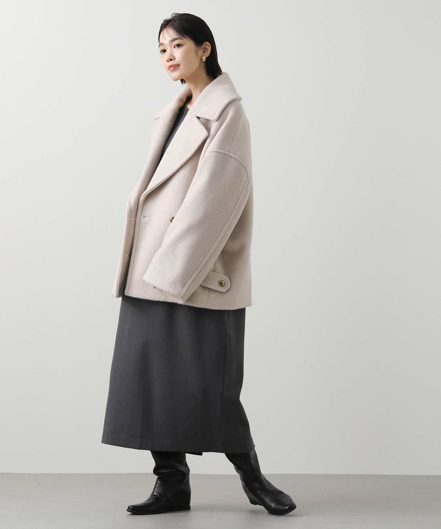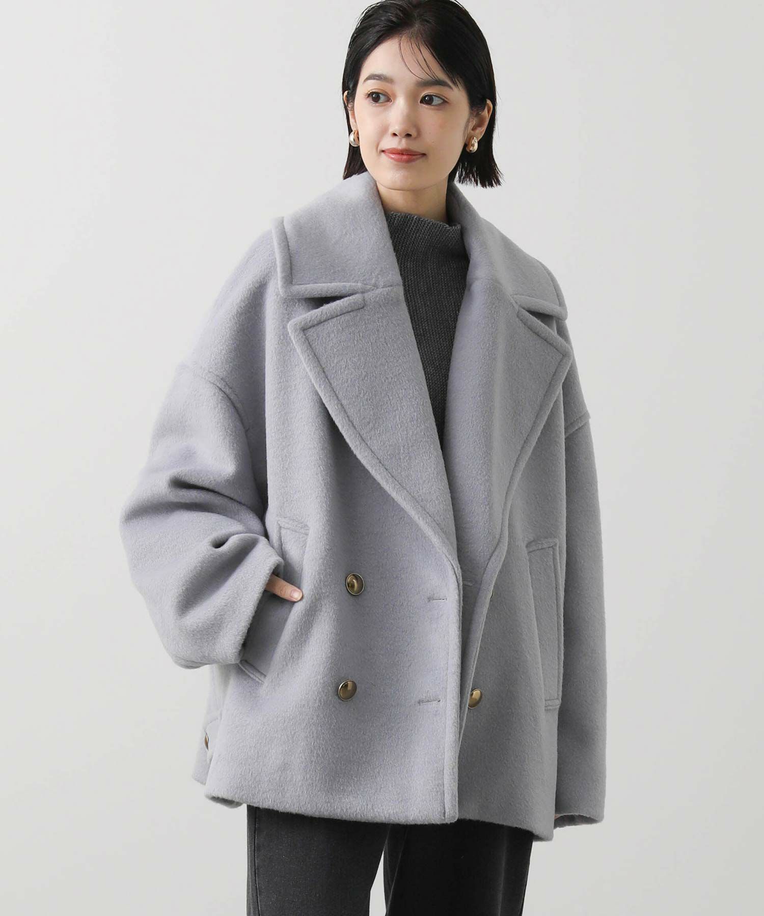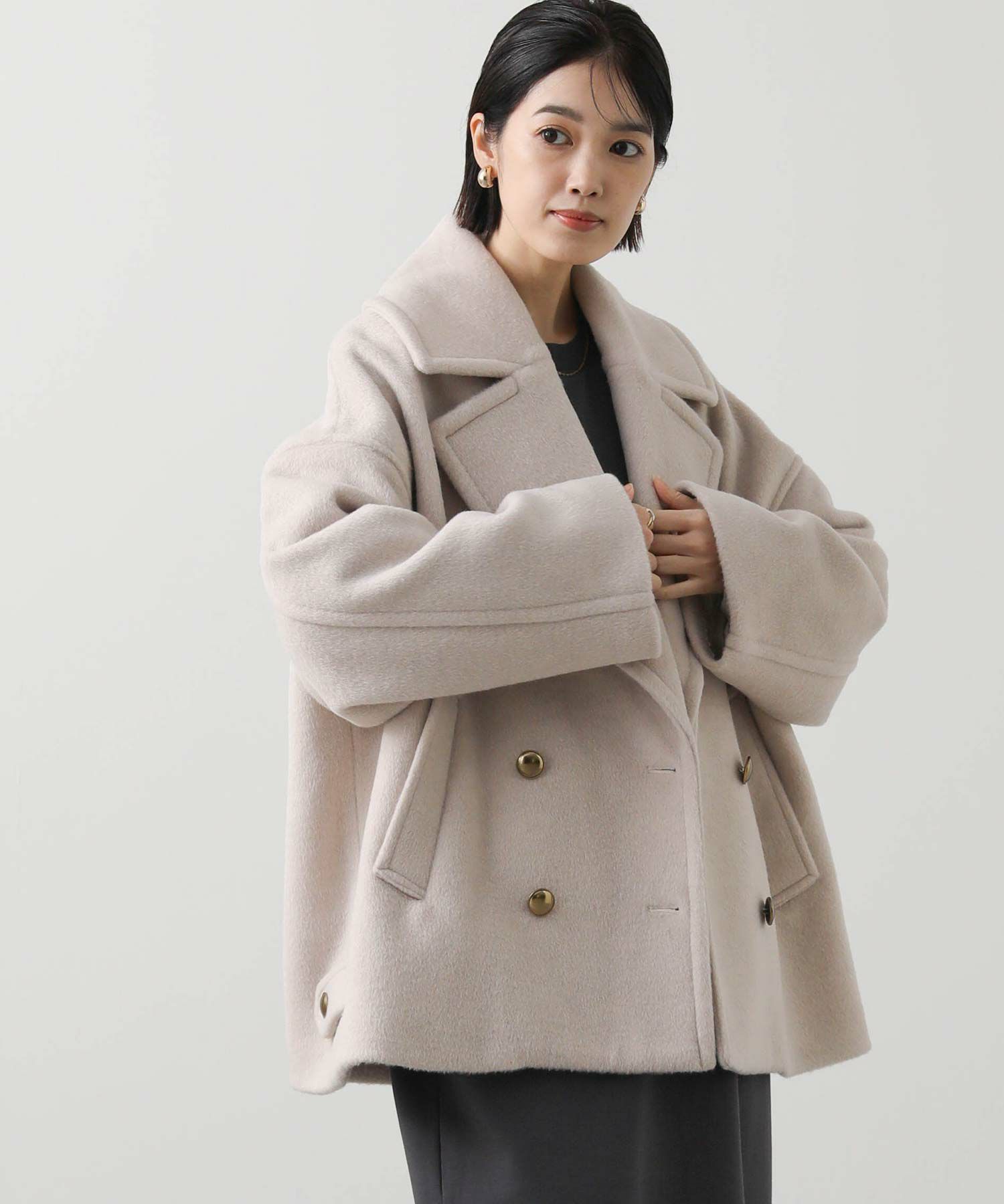 大衿が目を惹く、シンプル×ベーシックなPコート。ゆるっとしたサイズ感で今っぽい雰囲気で着られます。柔らかく滑らかな肌触りのビーバー素材で仕立てたので、どこか上品さも漂います。