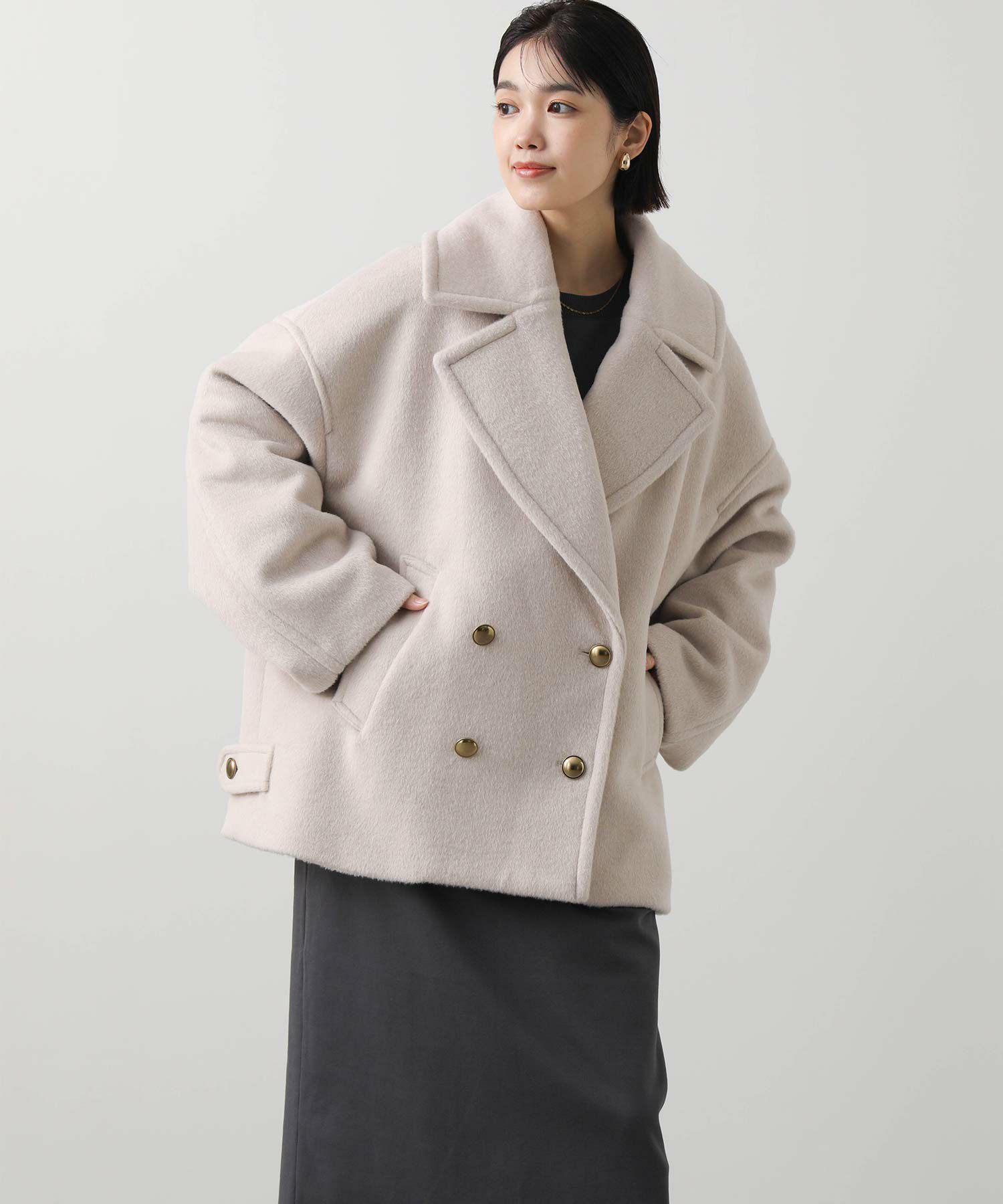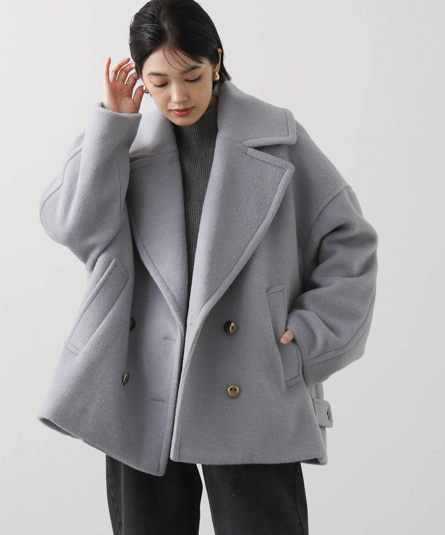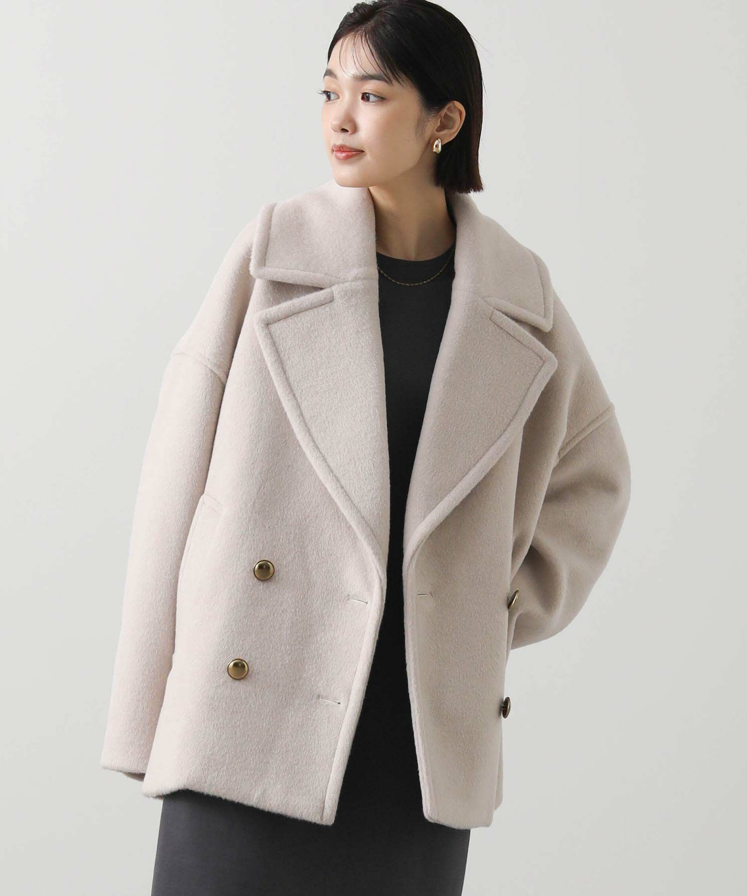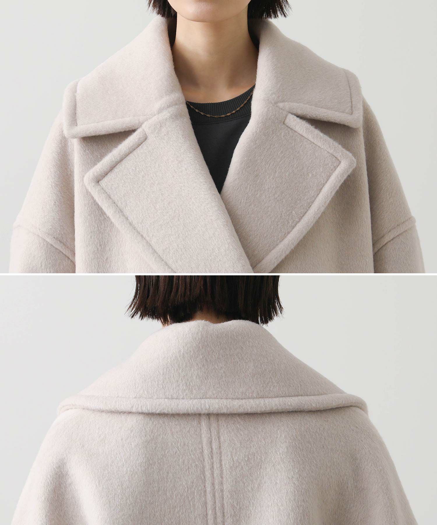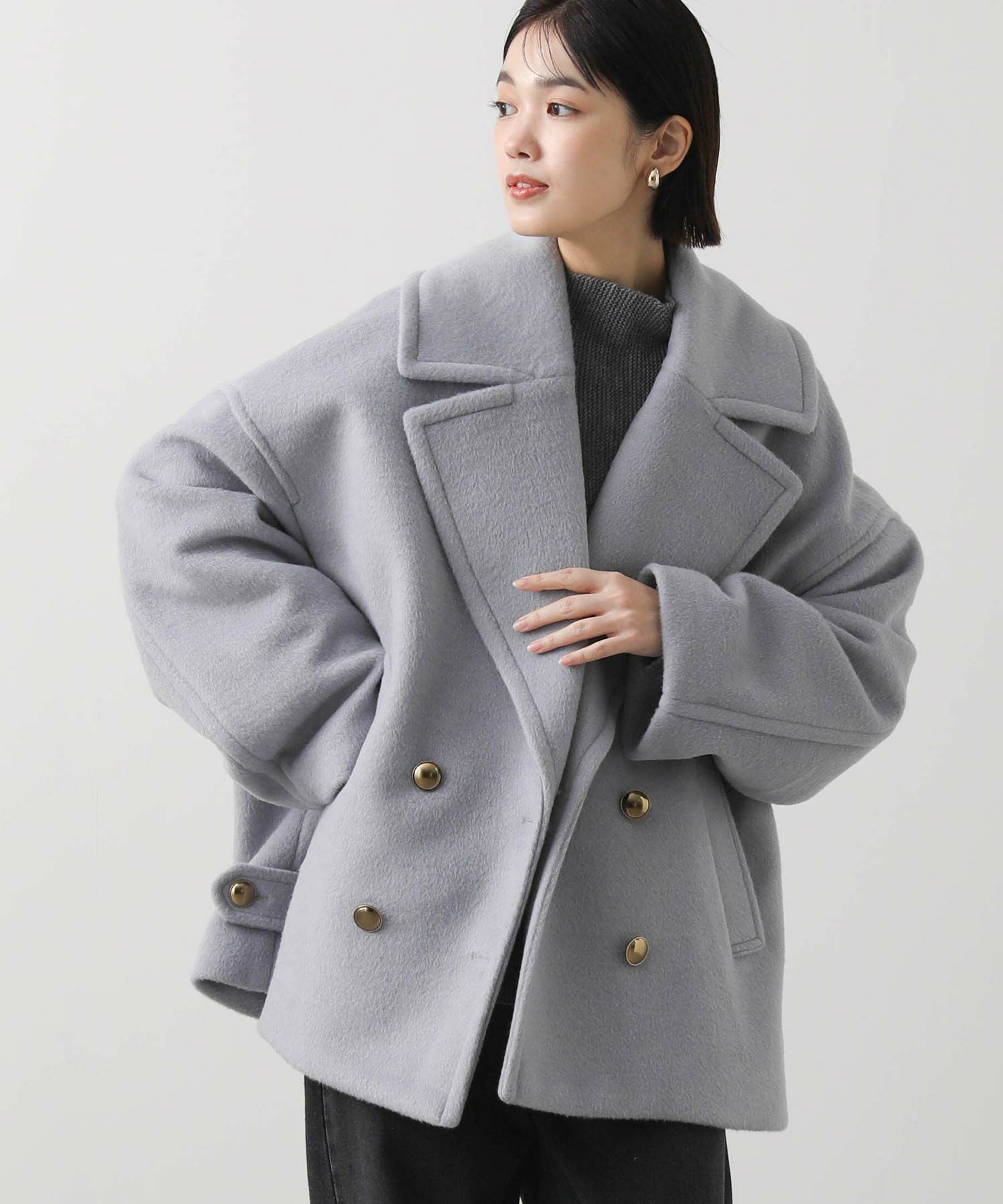 大衿が目を惹く、シンプル×ベーシックなPコート。ゆるっとしたサイズ感で今っぽい雰囲気で着られます。柔らかく滑らかな肌触りのビーバー素材で仕立てたので、どこか上品さも漂います。