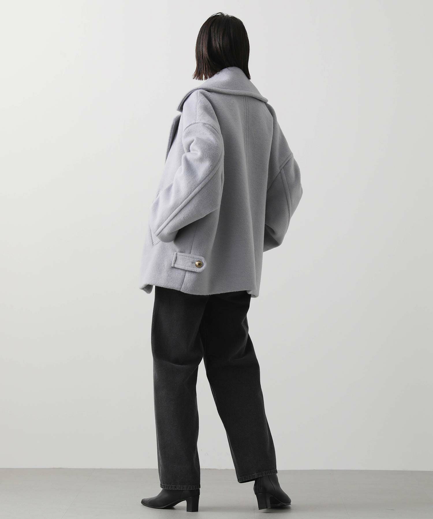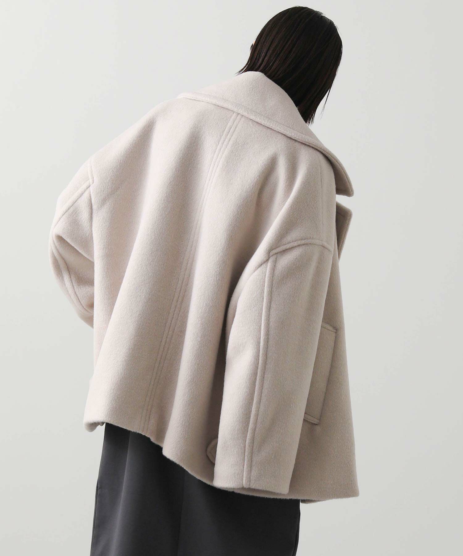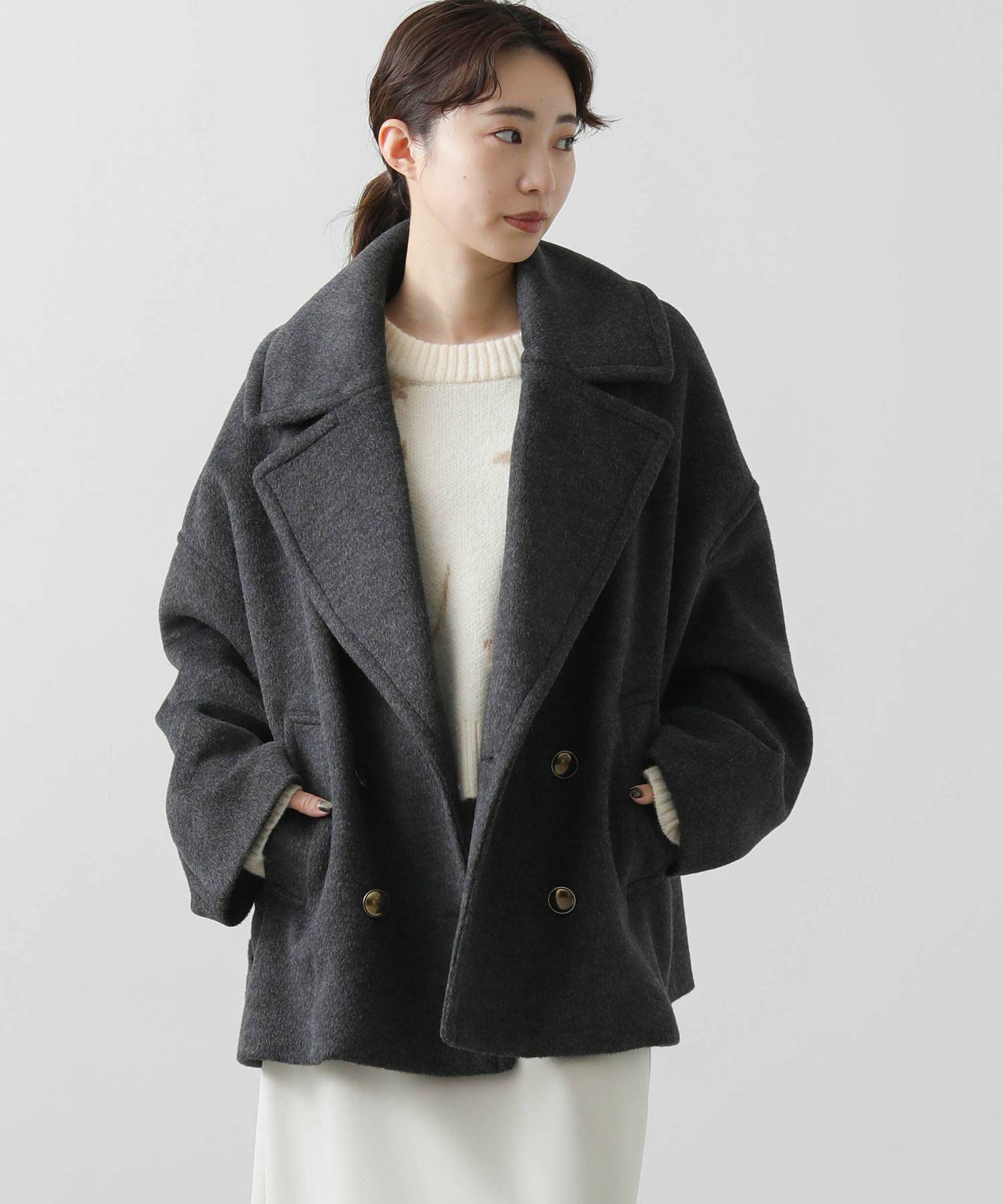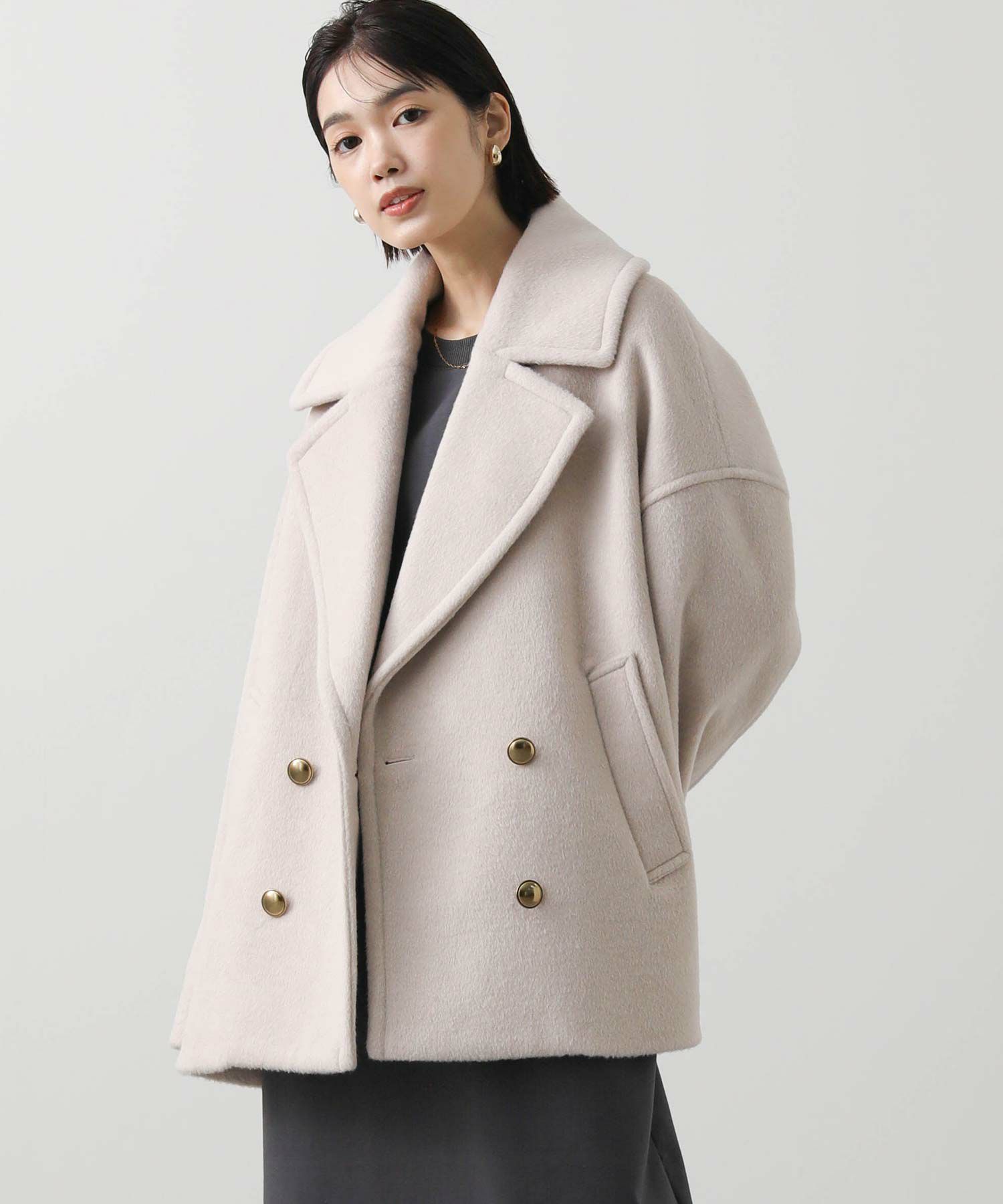 大衿が目を惹く、シンプル×ベーシックなPコート。ゆるっとしたサイズ感で今っぽい雰囲気で着られます。柔らかく滑らかな肌触りのビーバー素材で仕立てたので、どこか上品さも漂います。