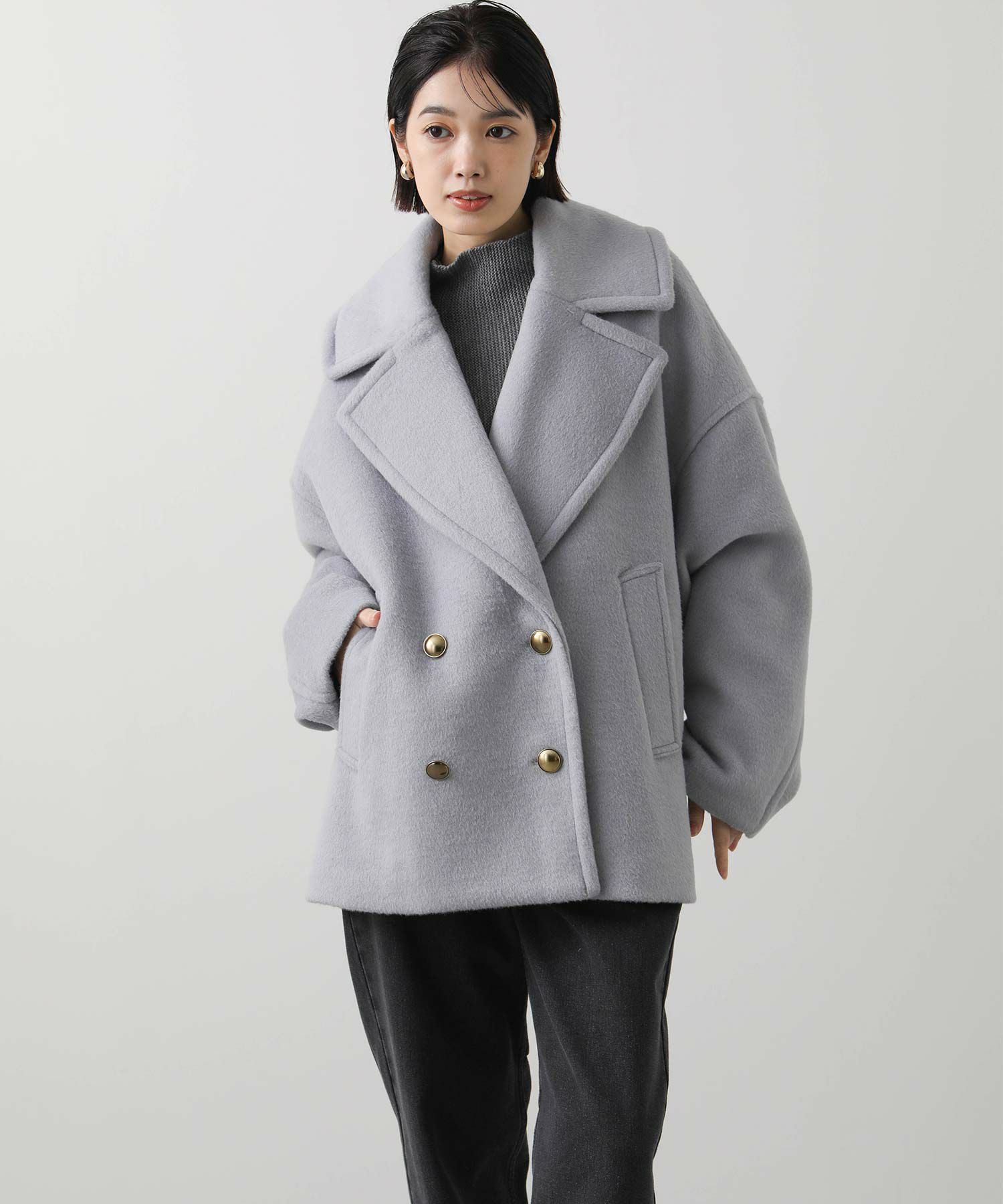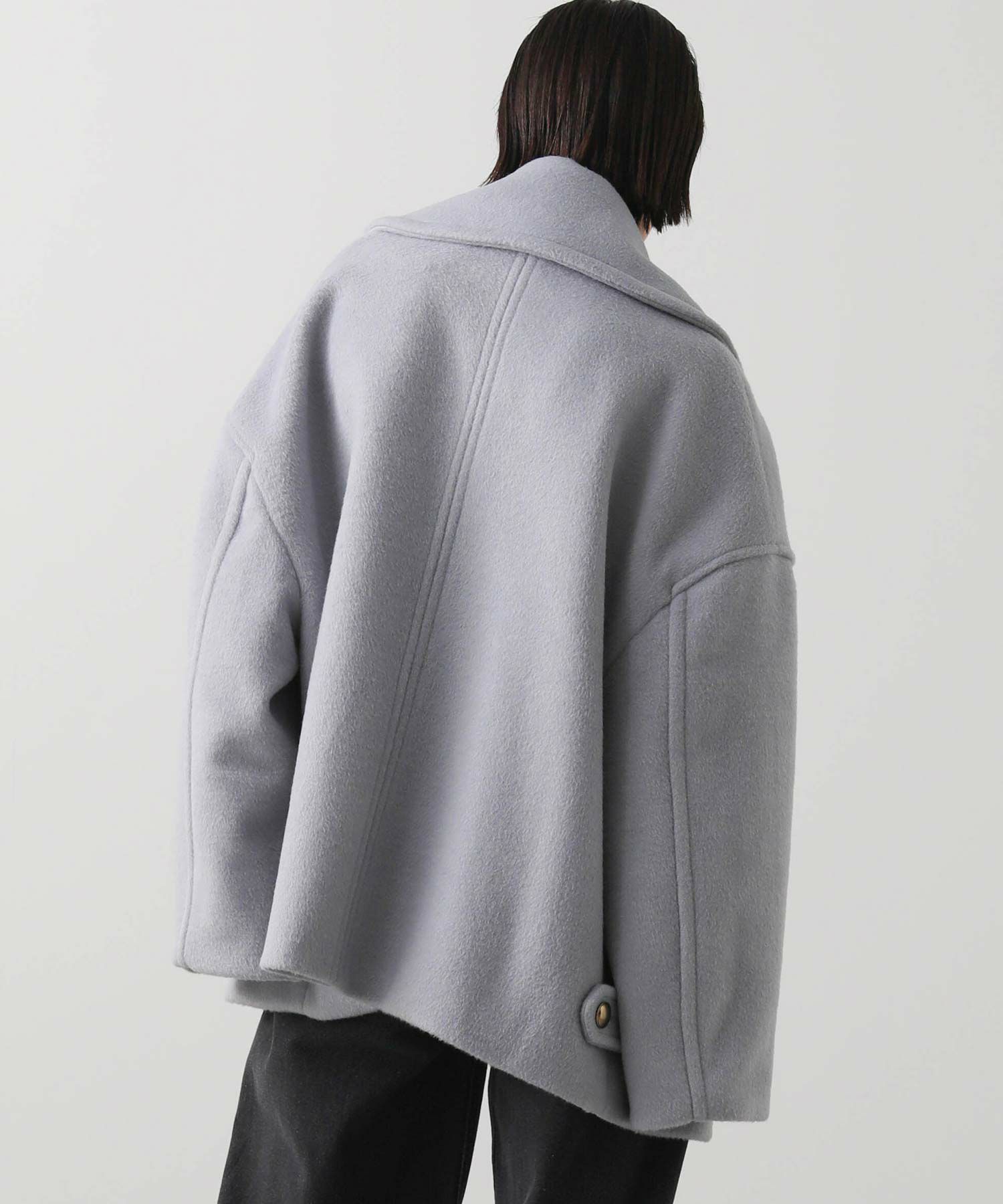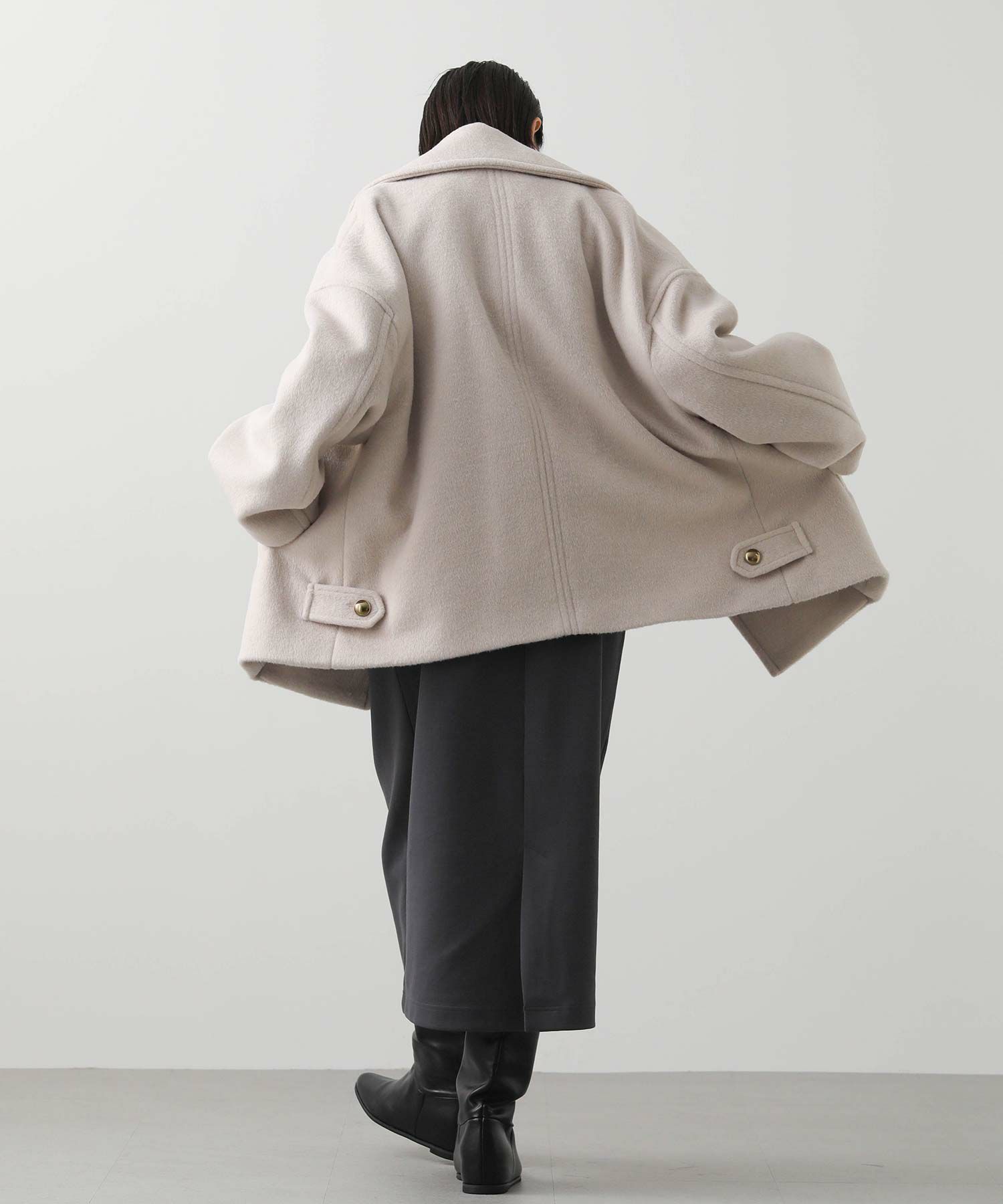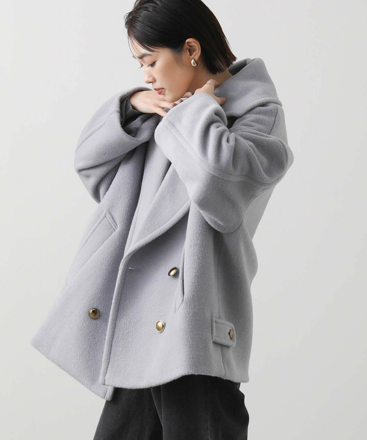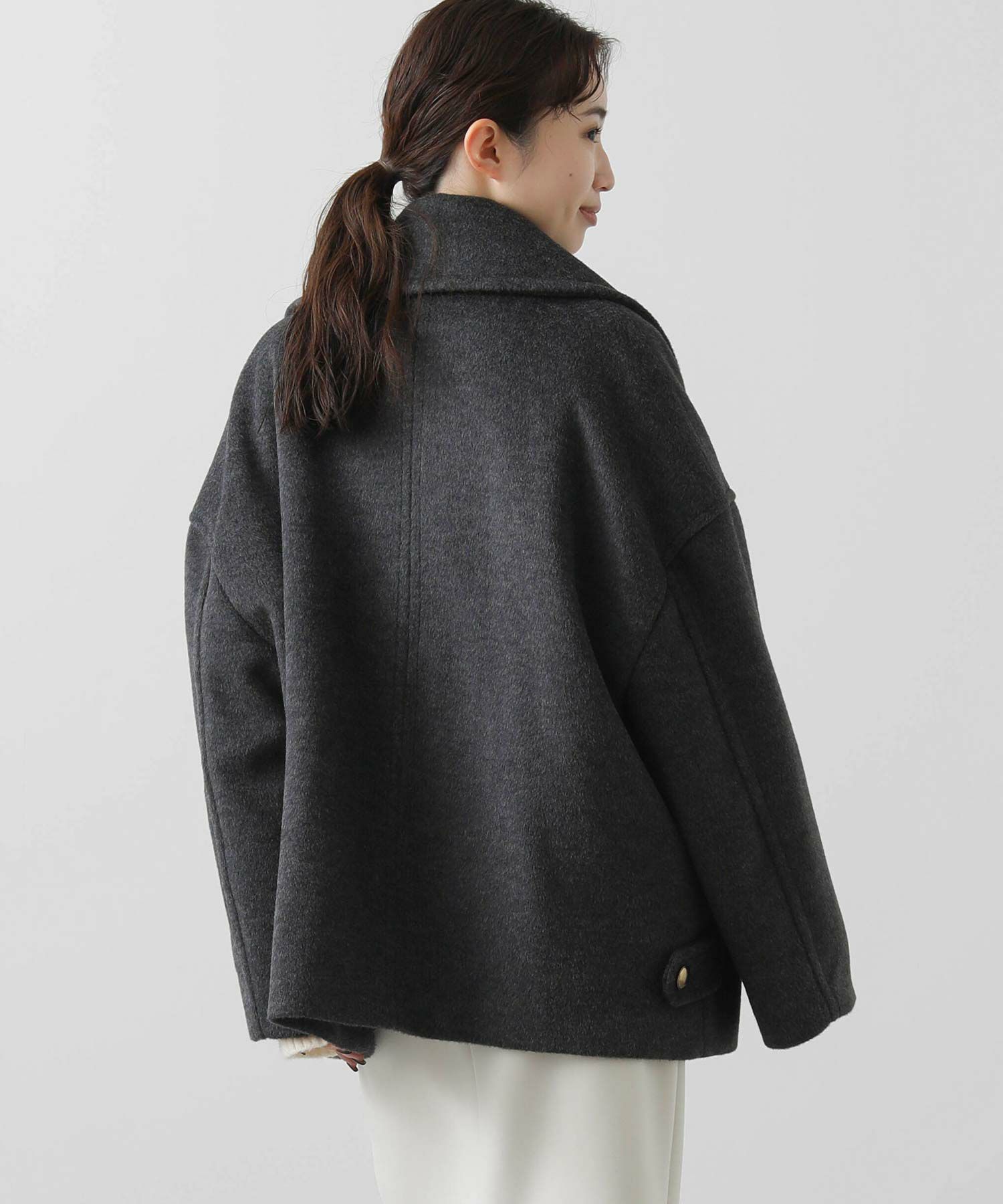 大衿が目を惹く、シンプル×ベーシックなPコート。ゆるっとしたサイズ感で今っぽい雰囲気で着られます。柔らかく滑らかな肌触りのビーバー素材で仕立てたので、どこか上品さも漂います。