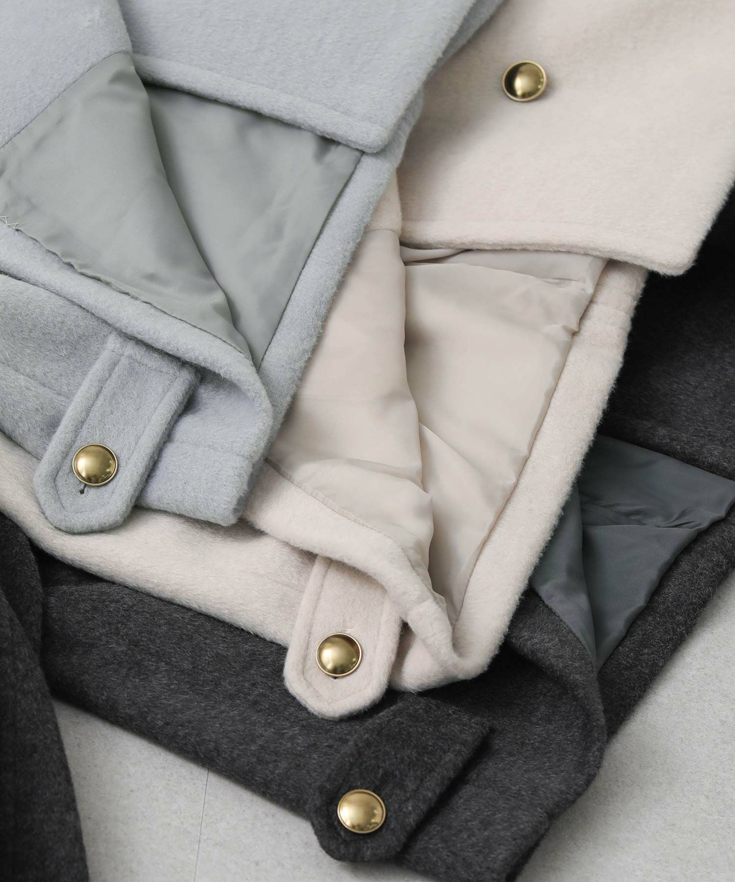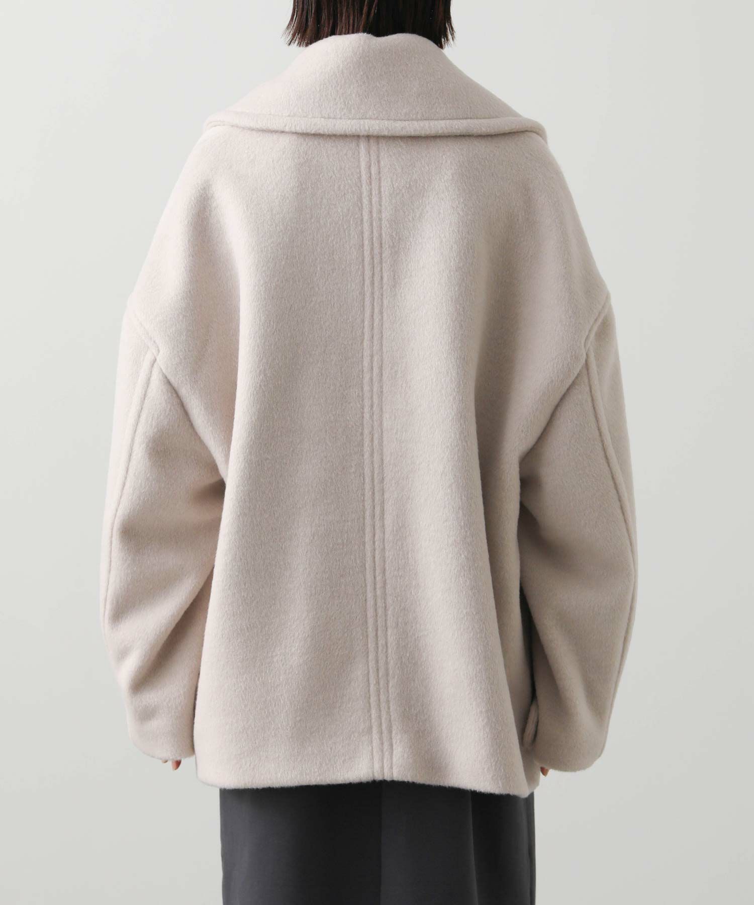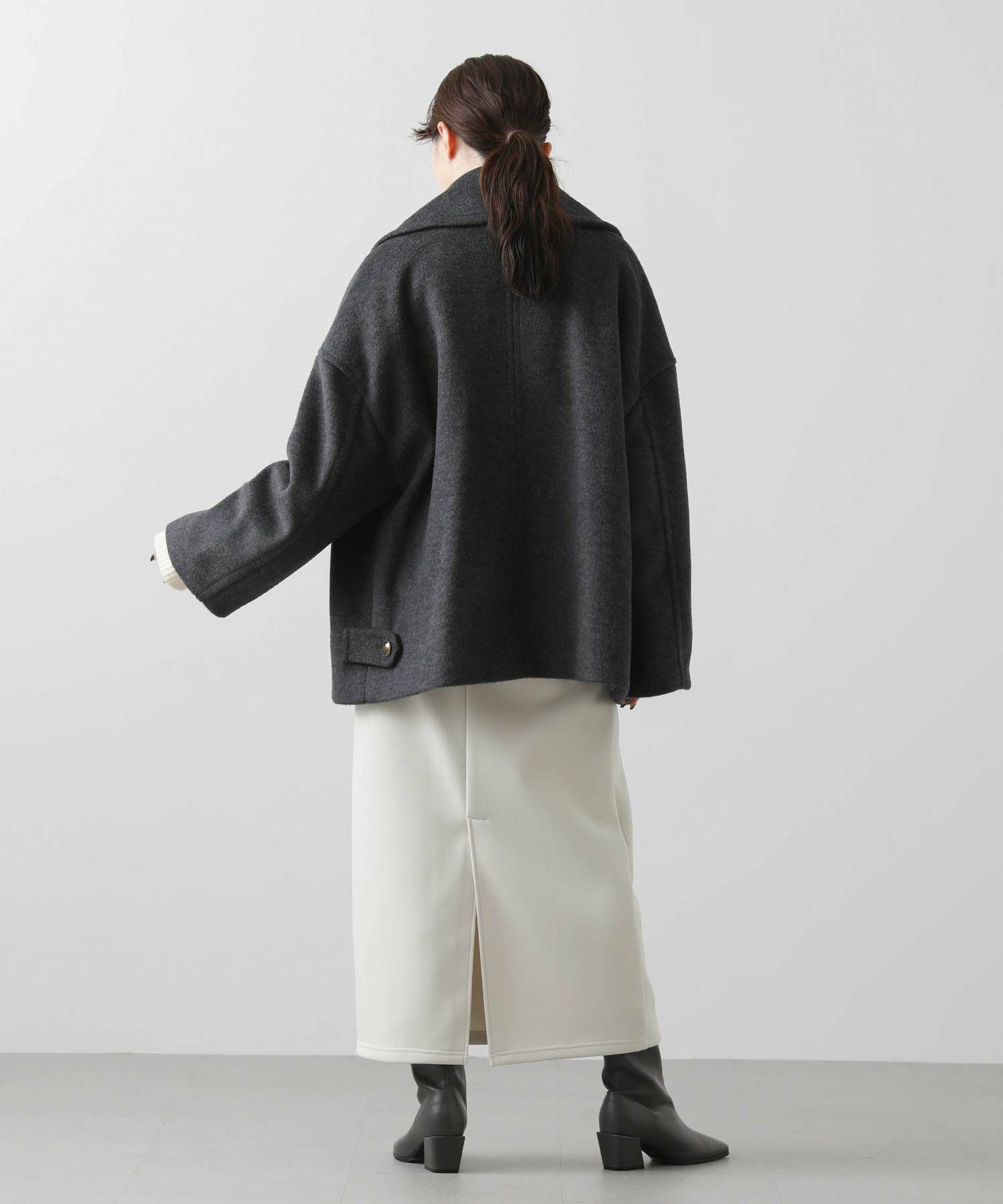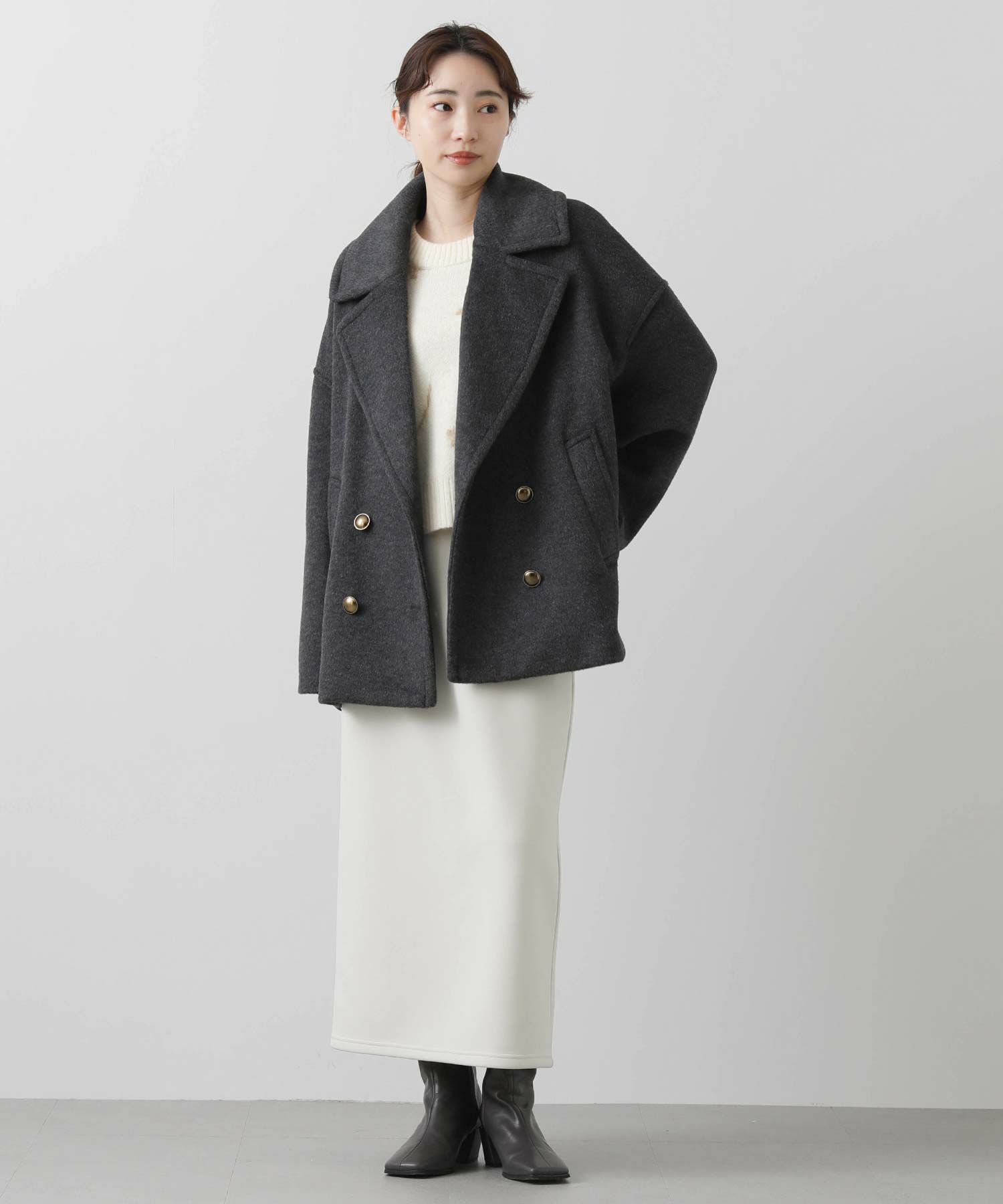 大衿が目を惹く、シンプル×ベーシックなPコート。ゆるっとしたサイズ感で今っぽい雰囲気で着られます。柔らかく滑らかな肌触りのビーバー素材で仕立てたので、どこか上品さも漂います。