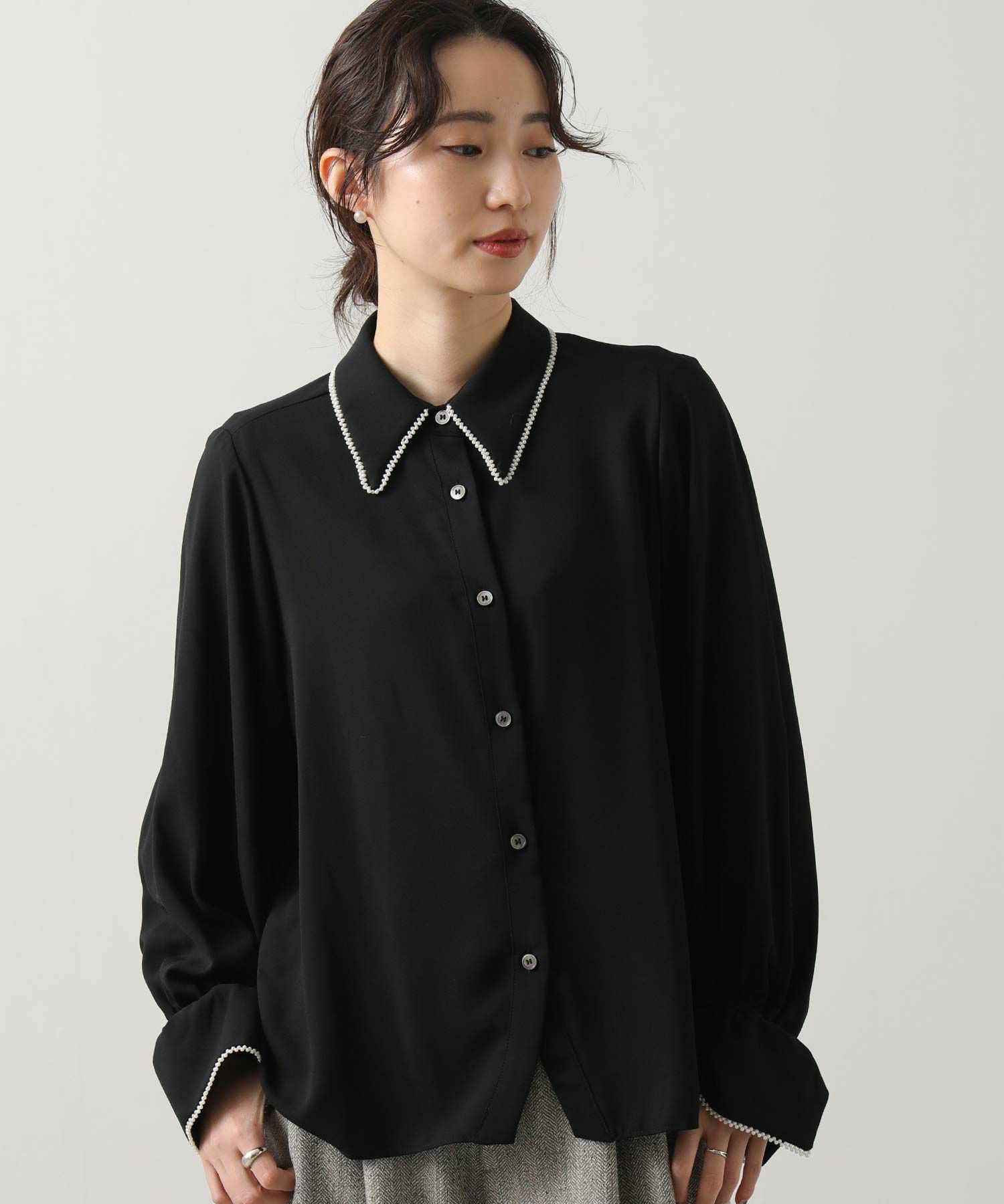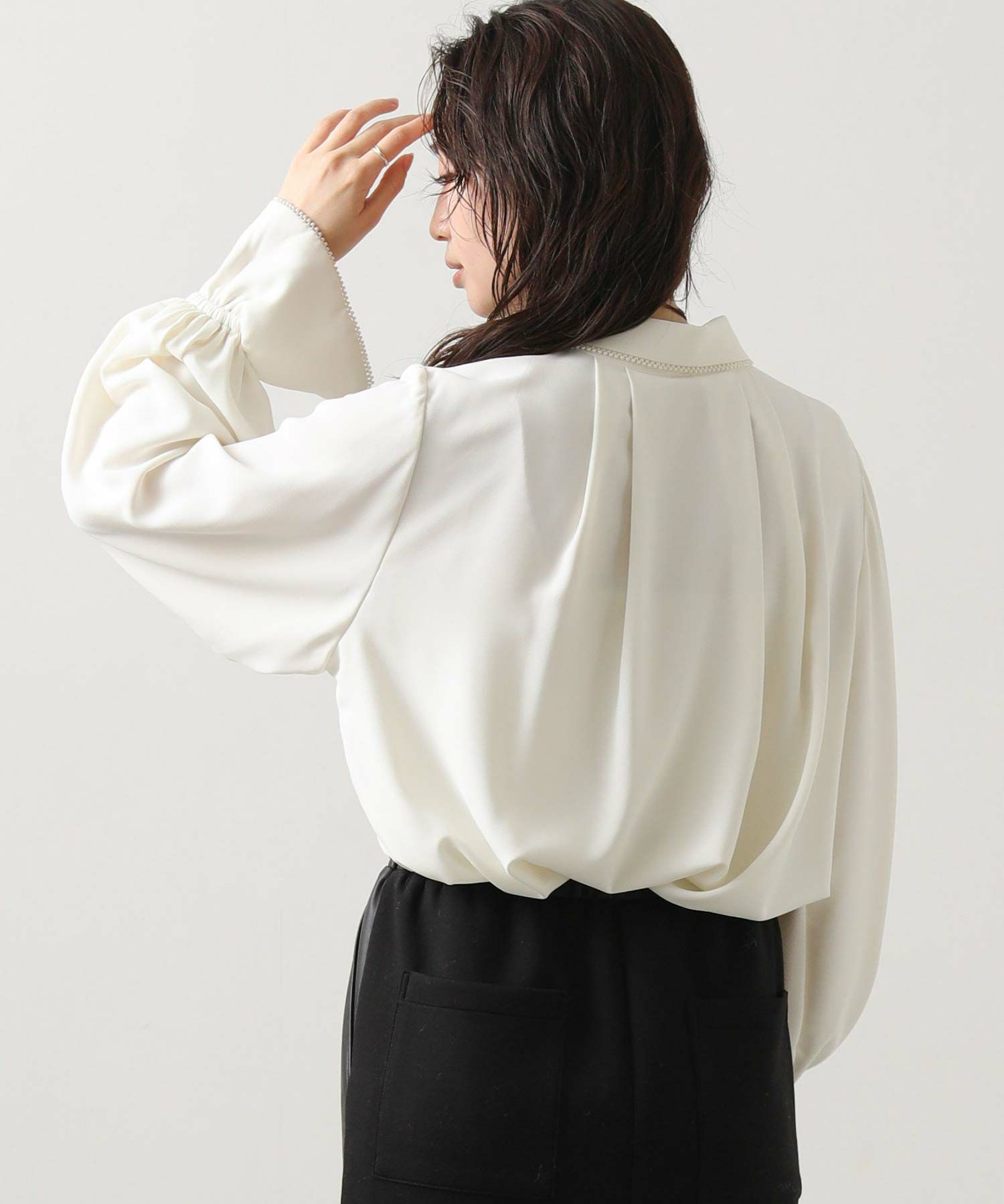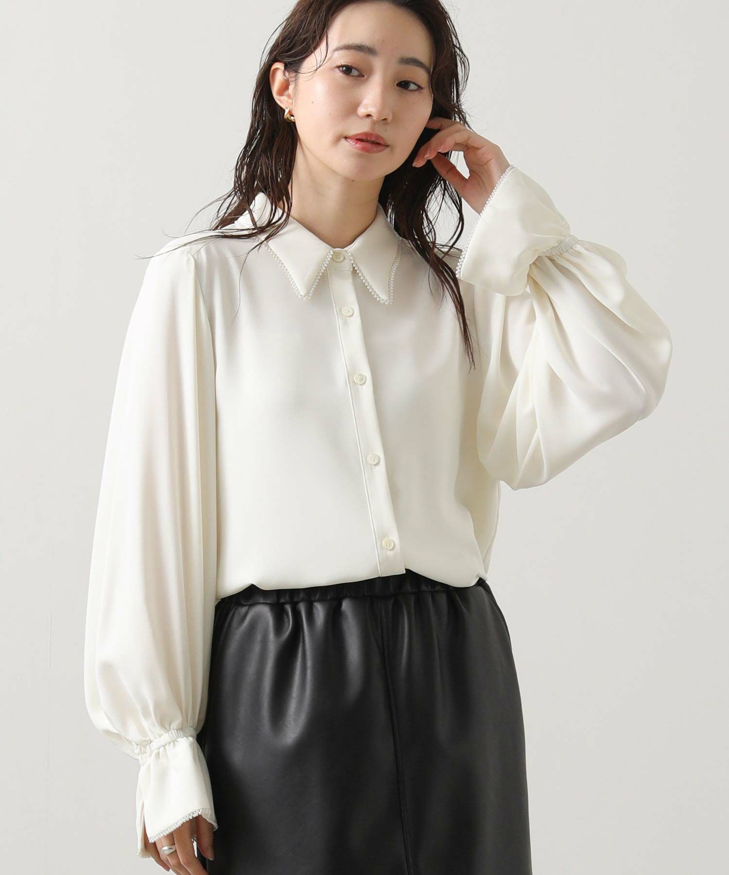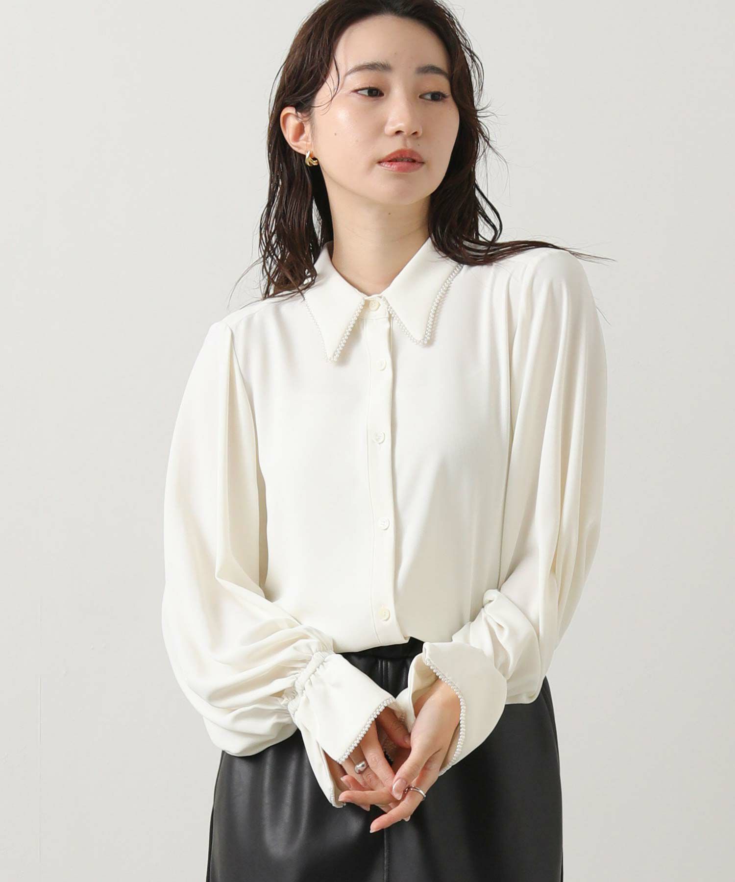 【anana(アナナ)】から、衿まわりとカフスまわりにパールを施した華やかなブラウスをセレクト。