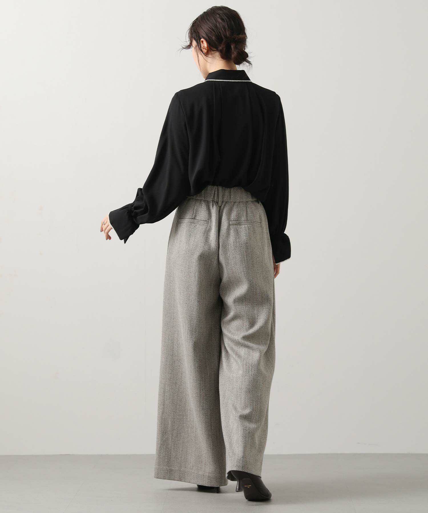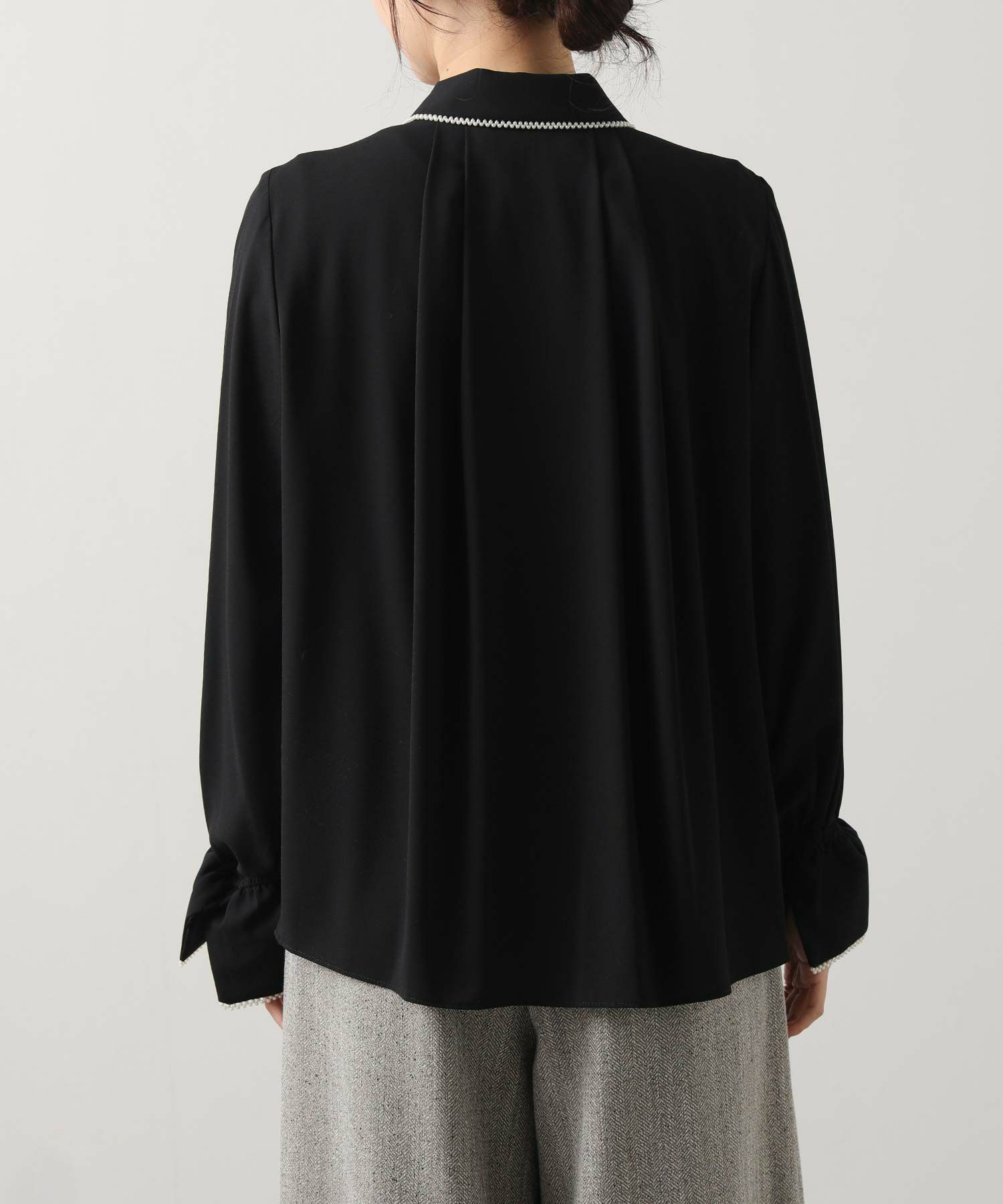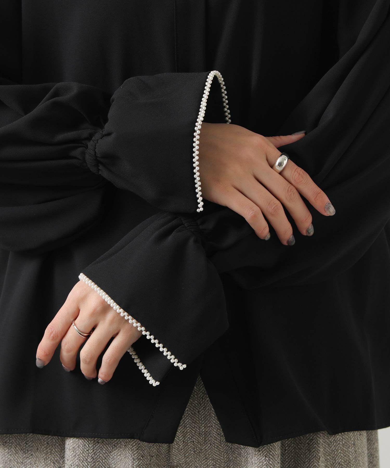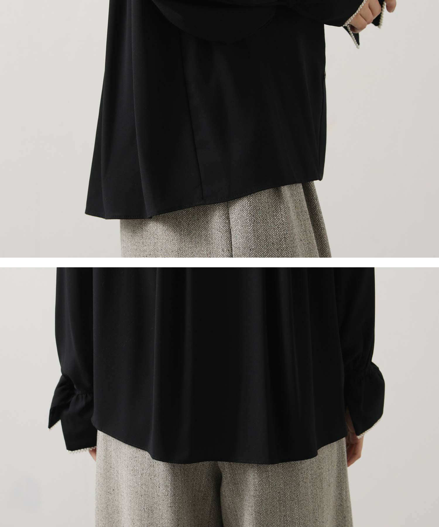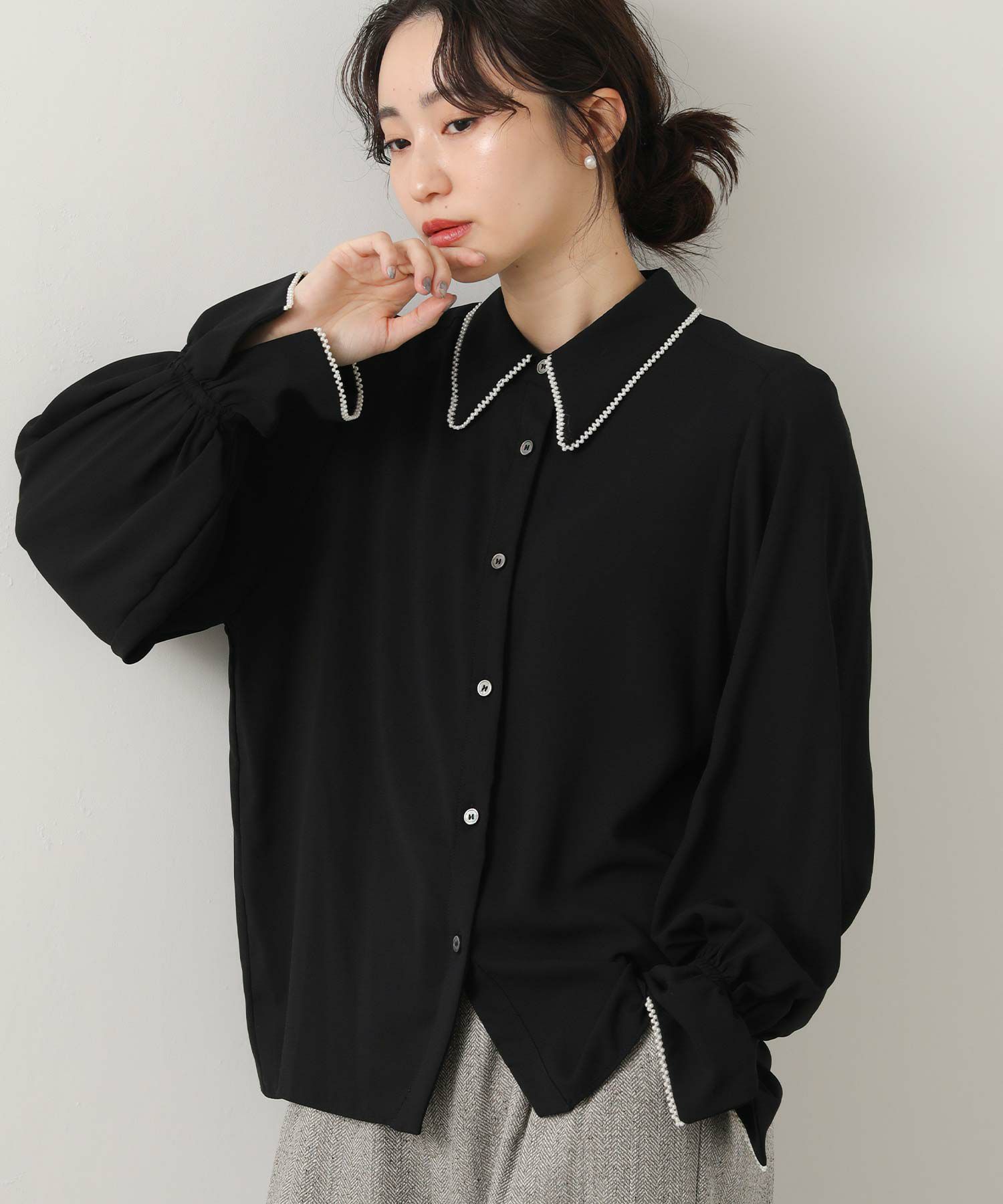 【anana(アナナ)】から、衿まわりとカフスまわりにパールを施した華やかなブラウスをセレクト。