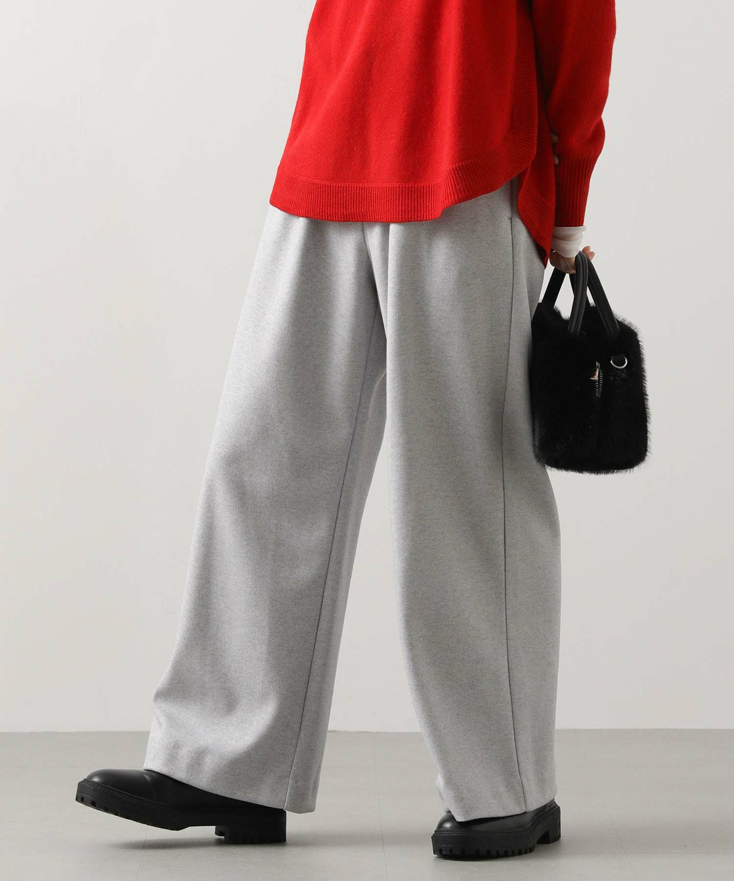 微起毛素材の広がりすぎない程よいワイドシルエットのイージーパンツ。