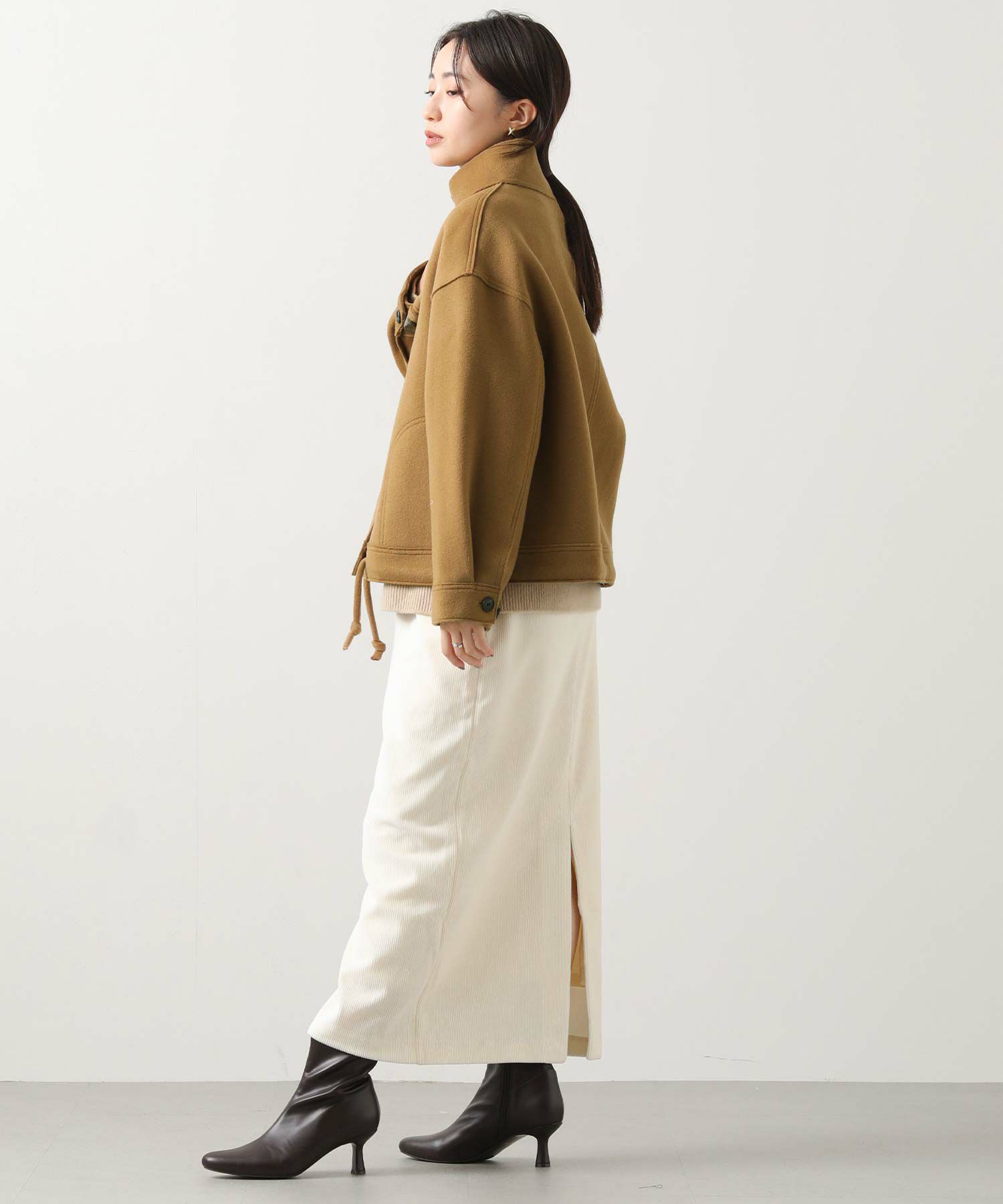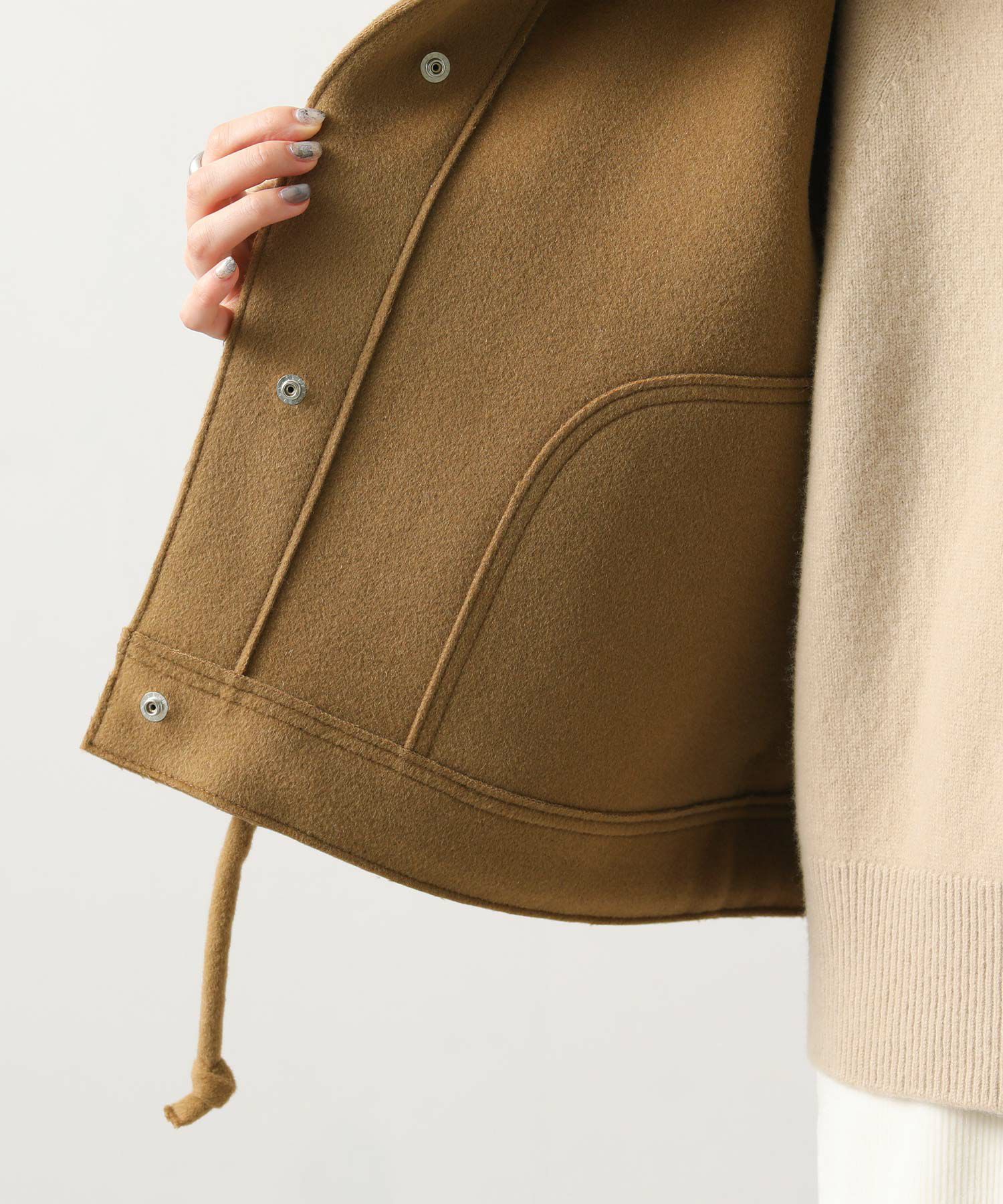 胸元のトグル以外に裾までかくしドットがあるので、ショート丈でもしっかり防寒アイテムとして使えます。