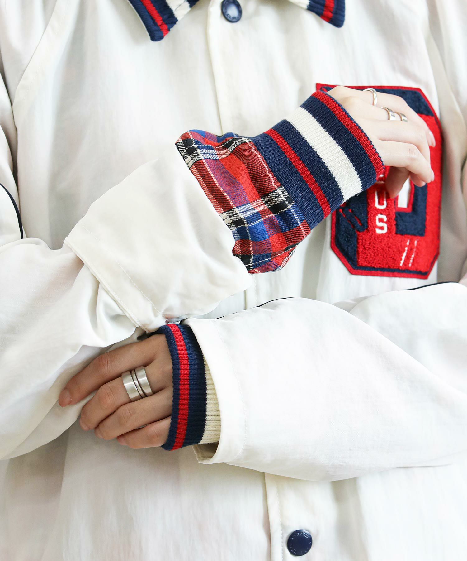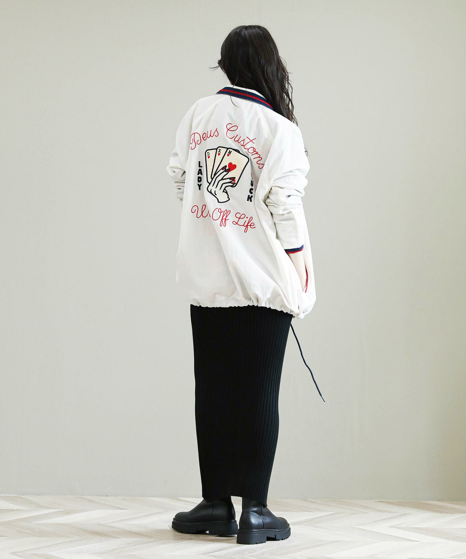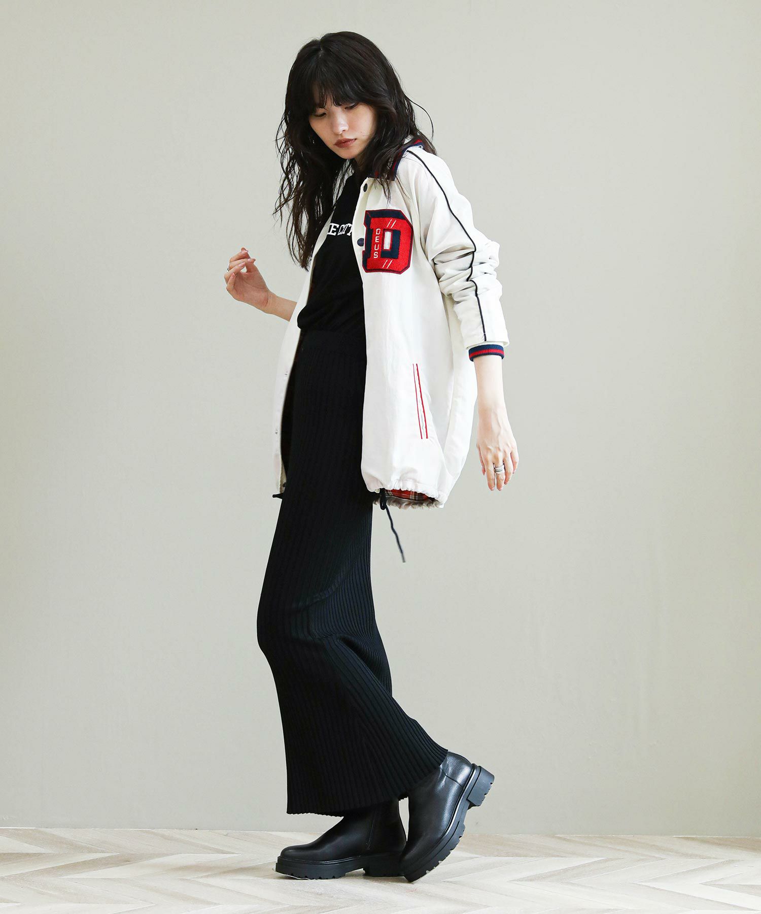 ※着用画像は撮影状況、光の当たり具合で色みが違って見える場合がございます。実際の色みについては、画像一覧の最後に掲載している詳細画像をご参照ください。