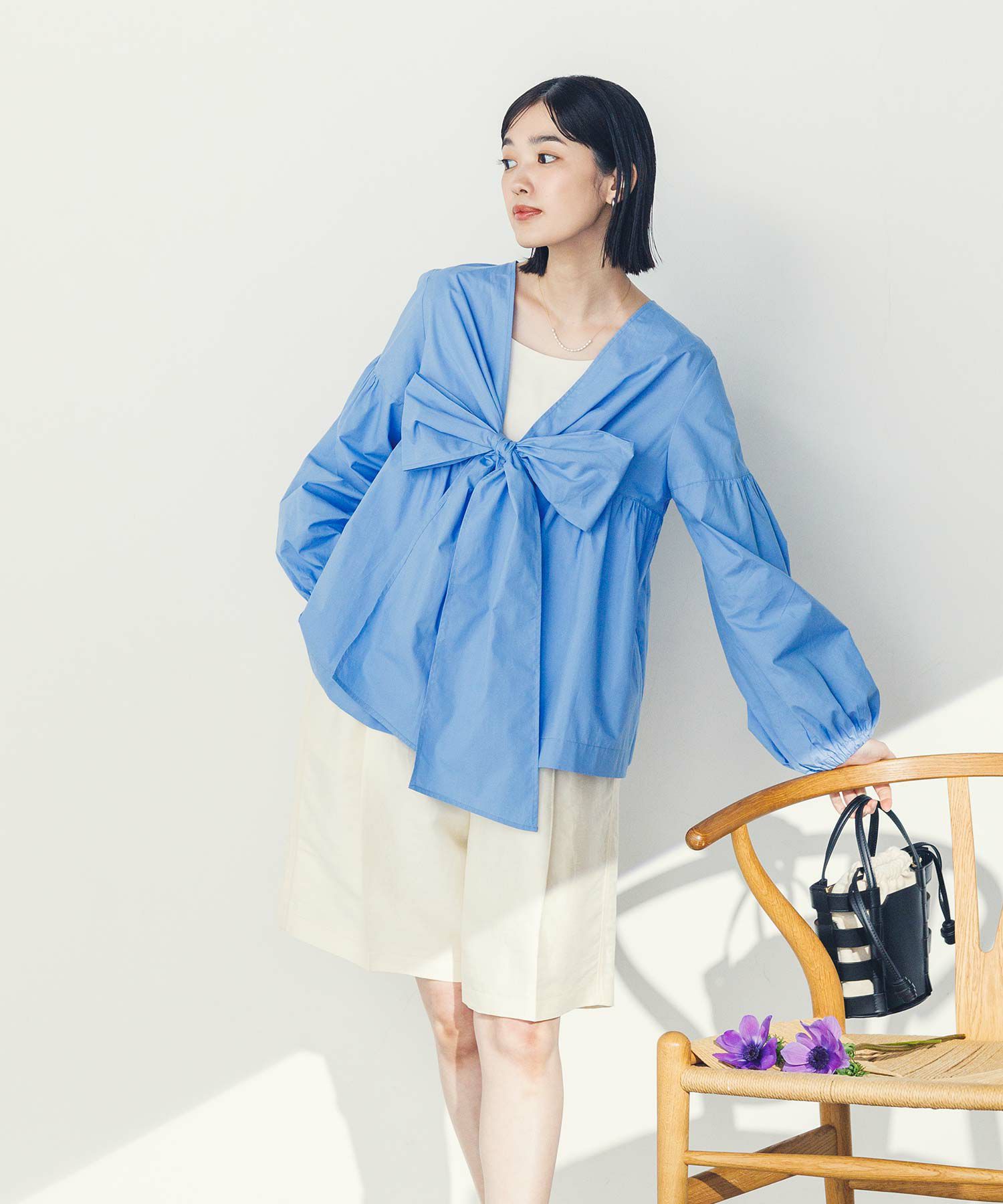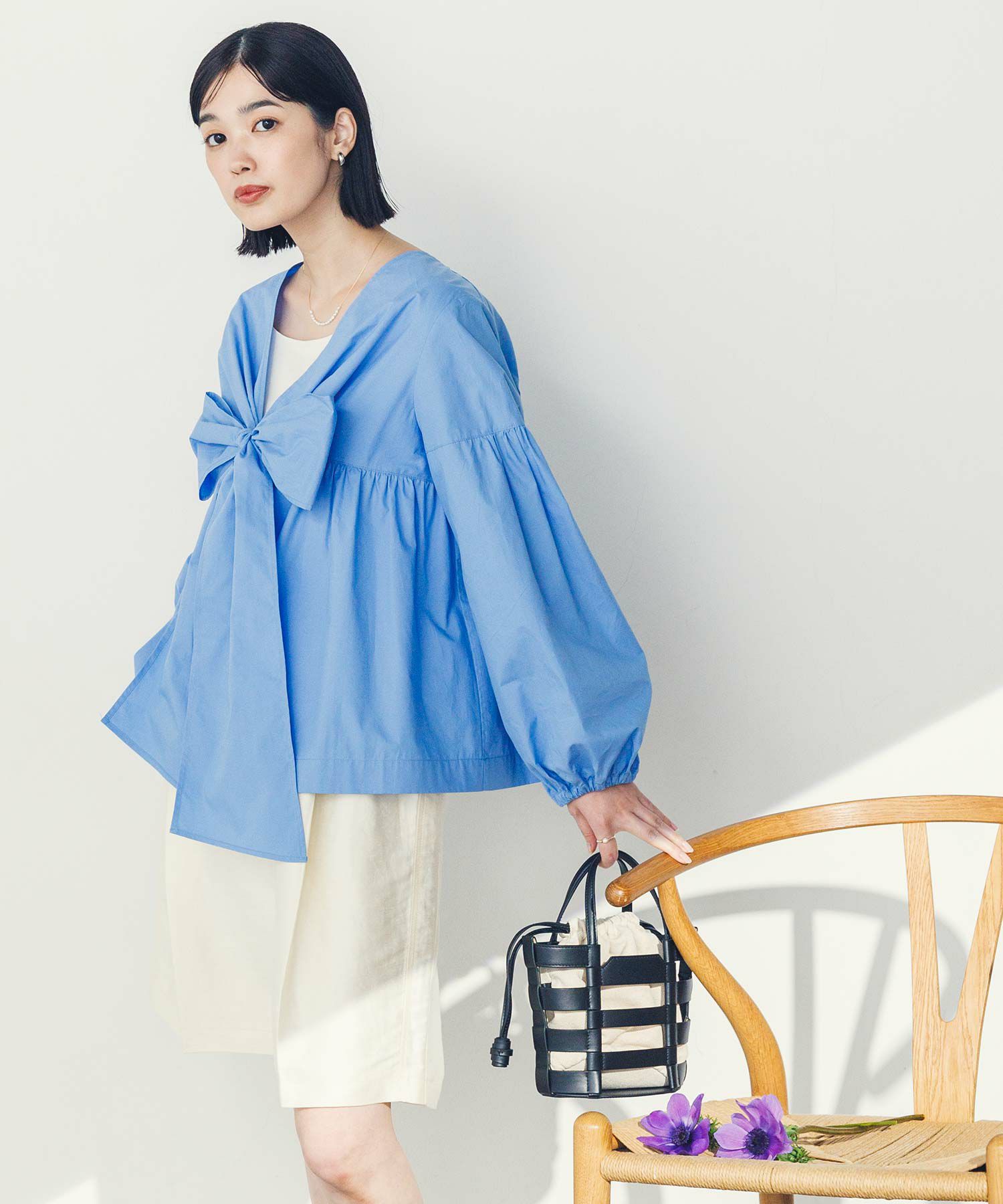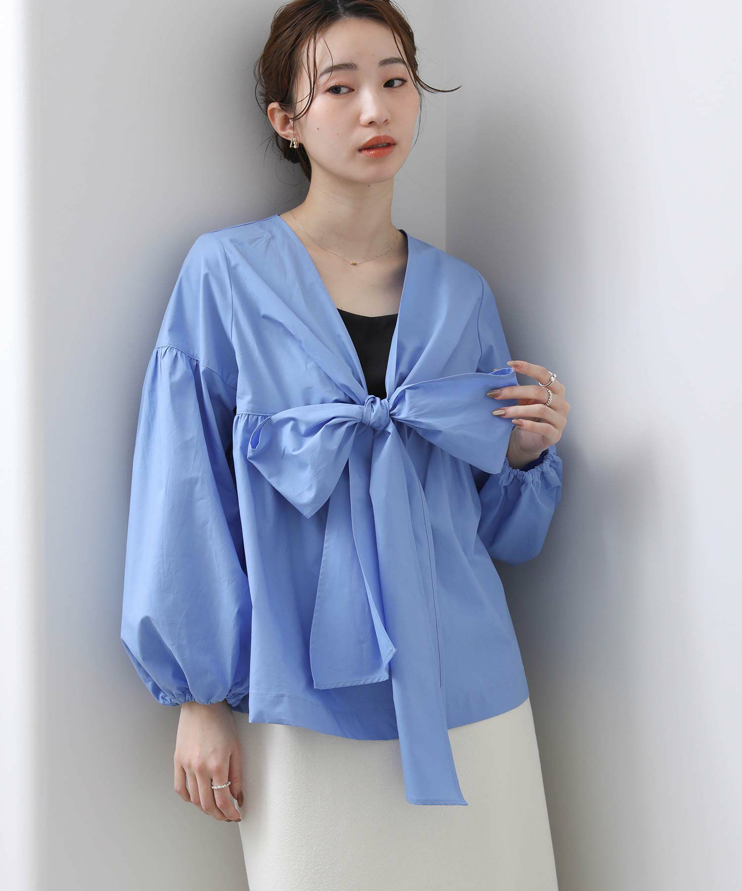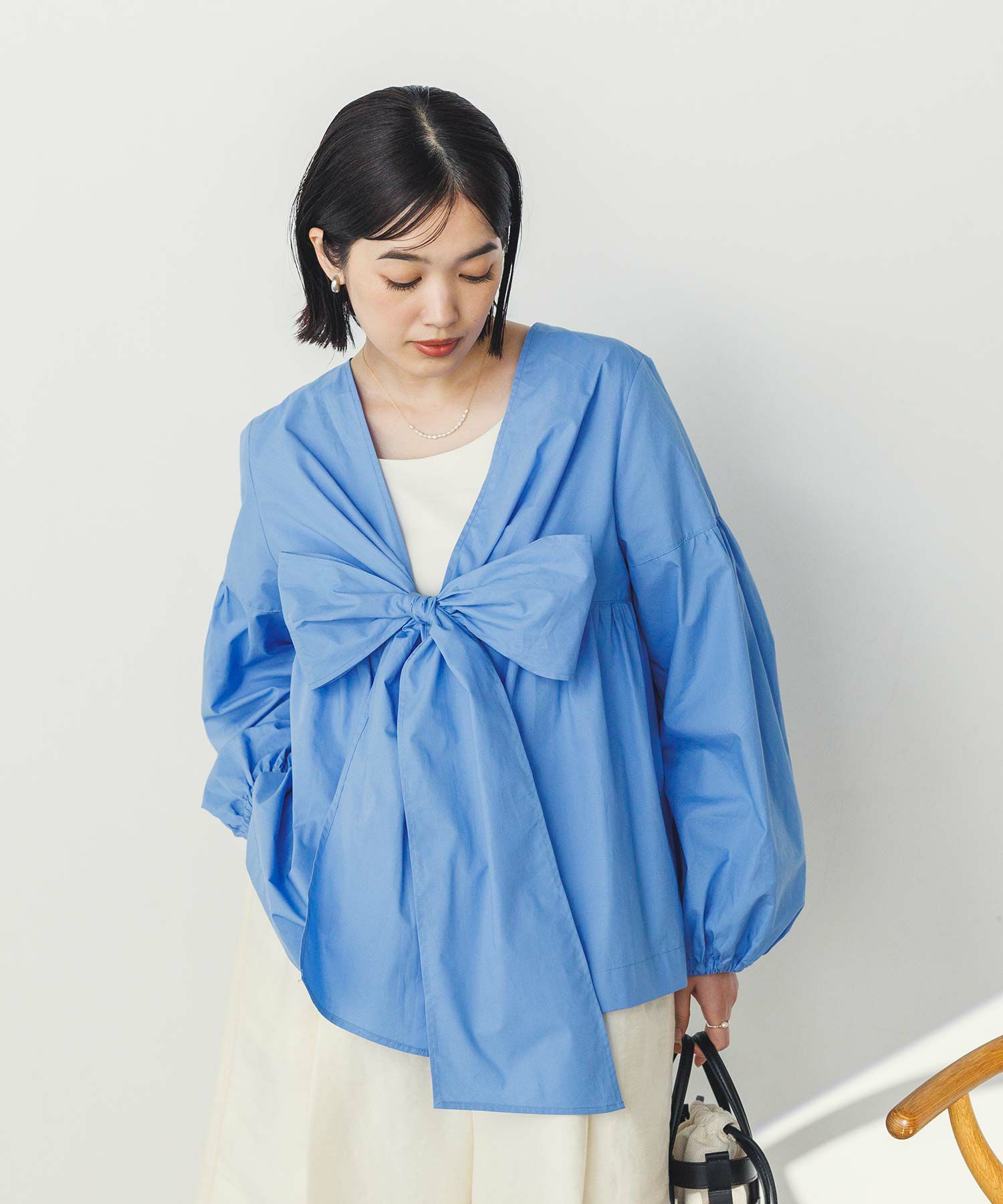 胸元の大きなリボンが旬なブラウス。
