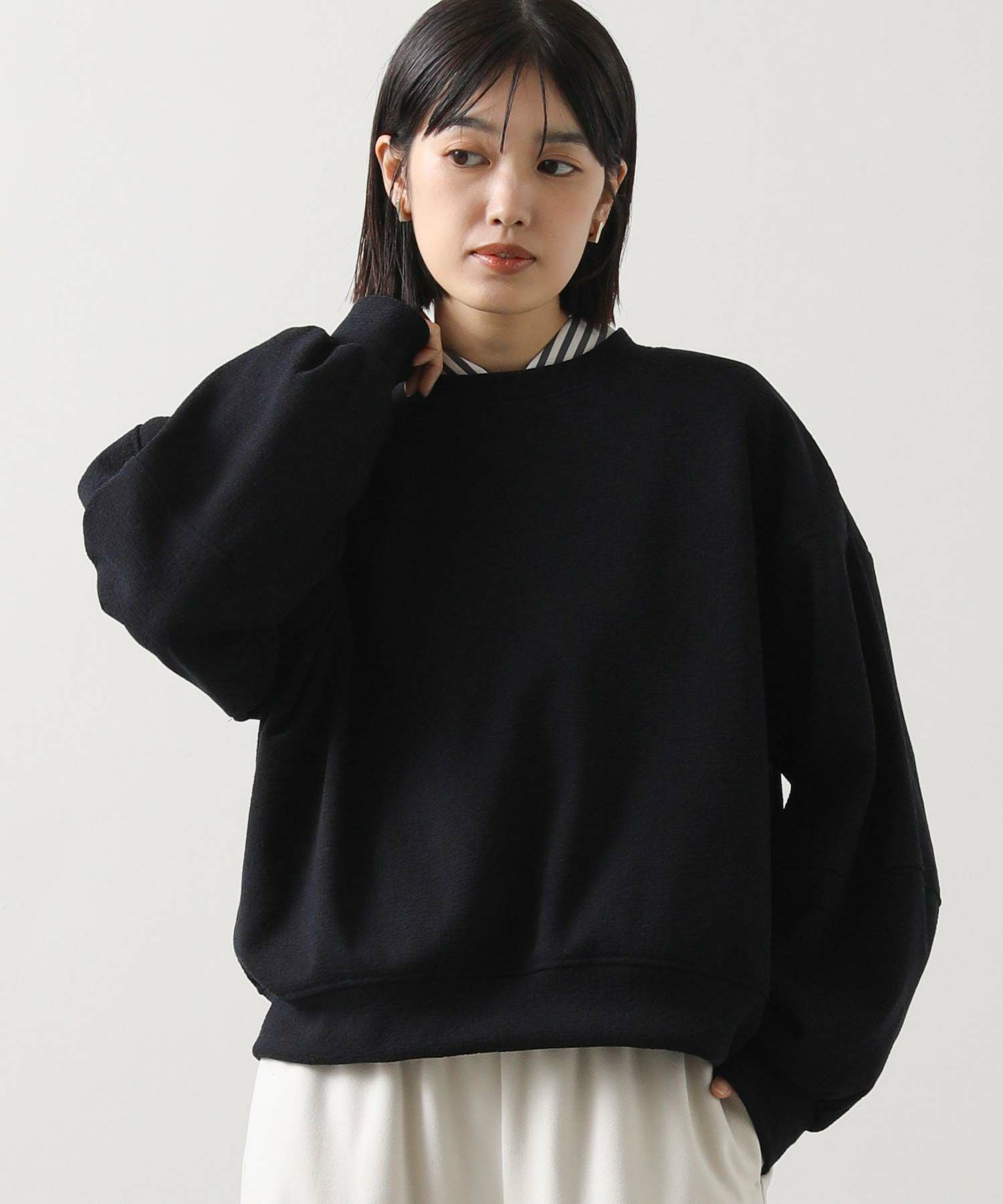 程よくゆったりとしたシルエットに、広めのショルダーラインがリラックスムードを演出するスウェット。