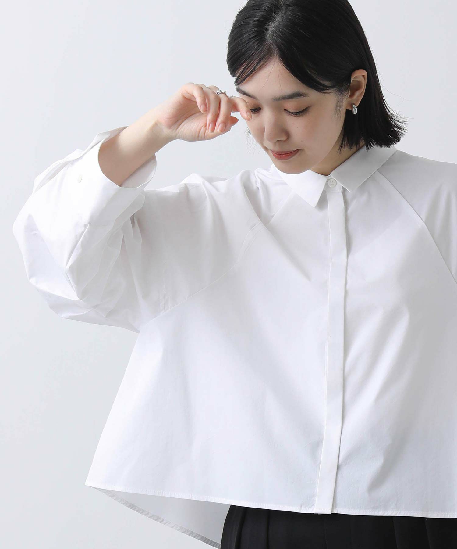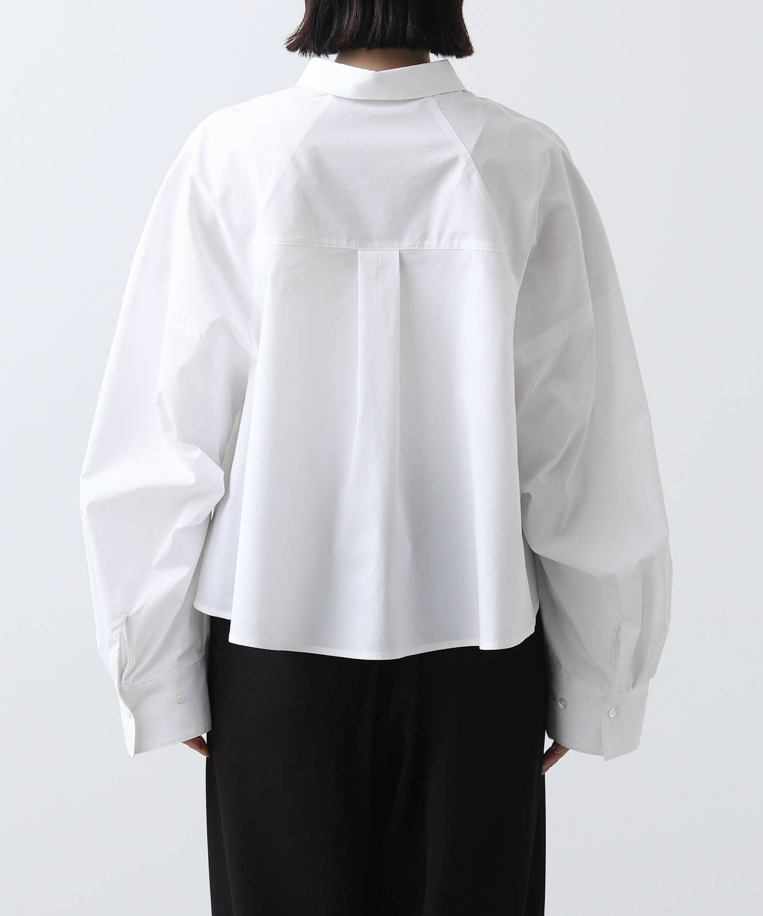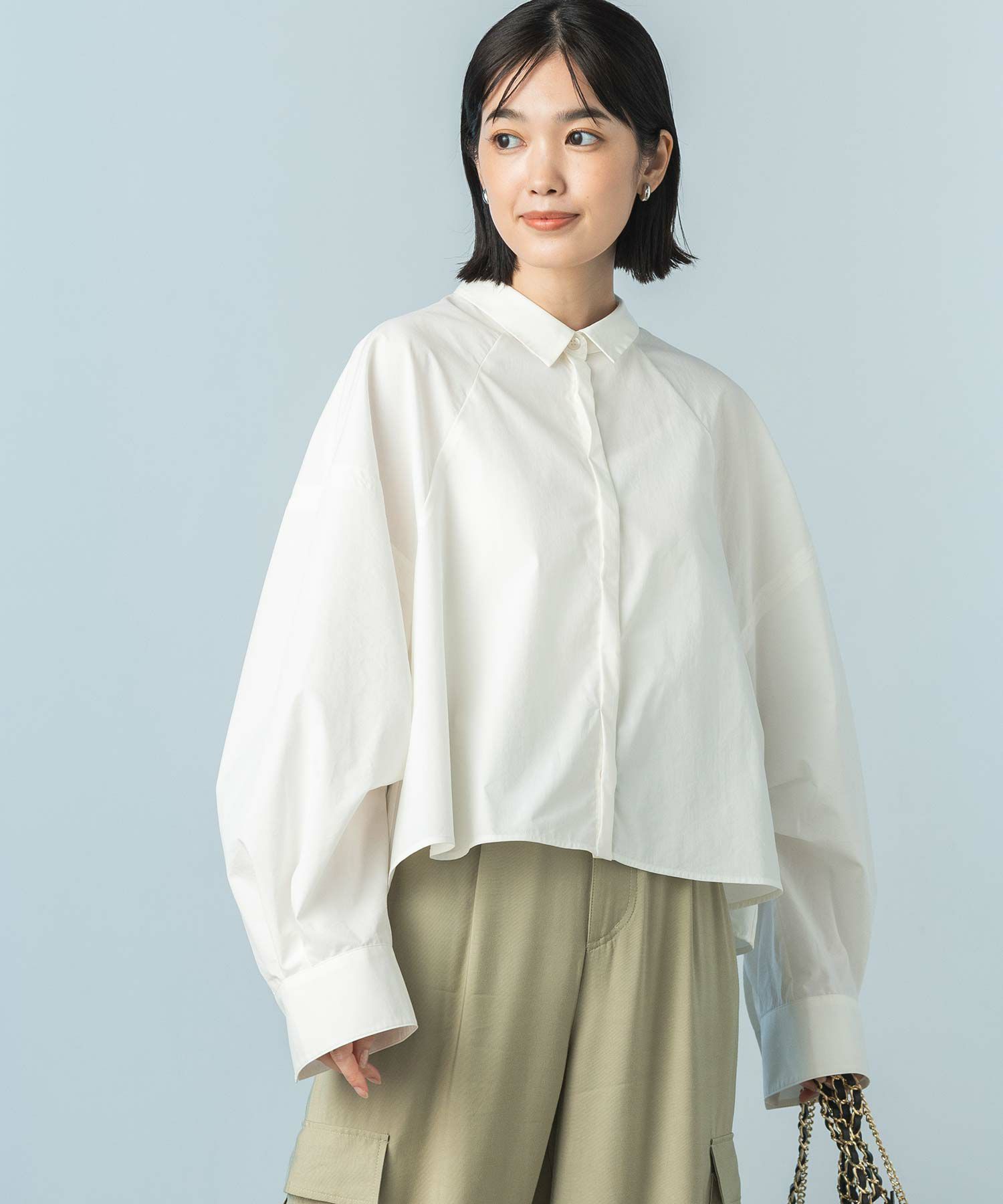 今年らしいクロップド丈のシャツ。