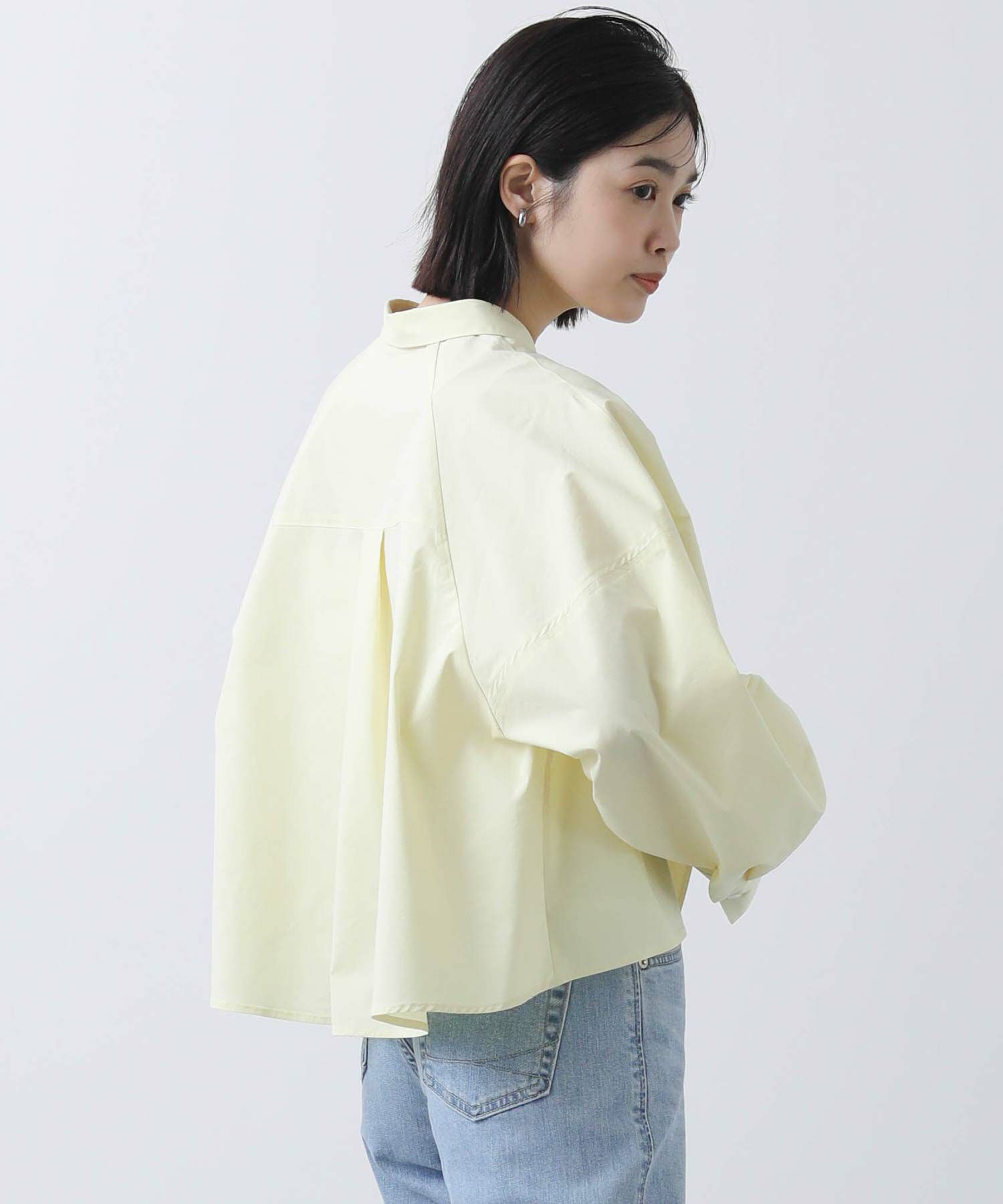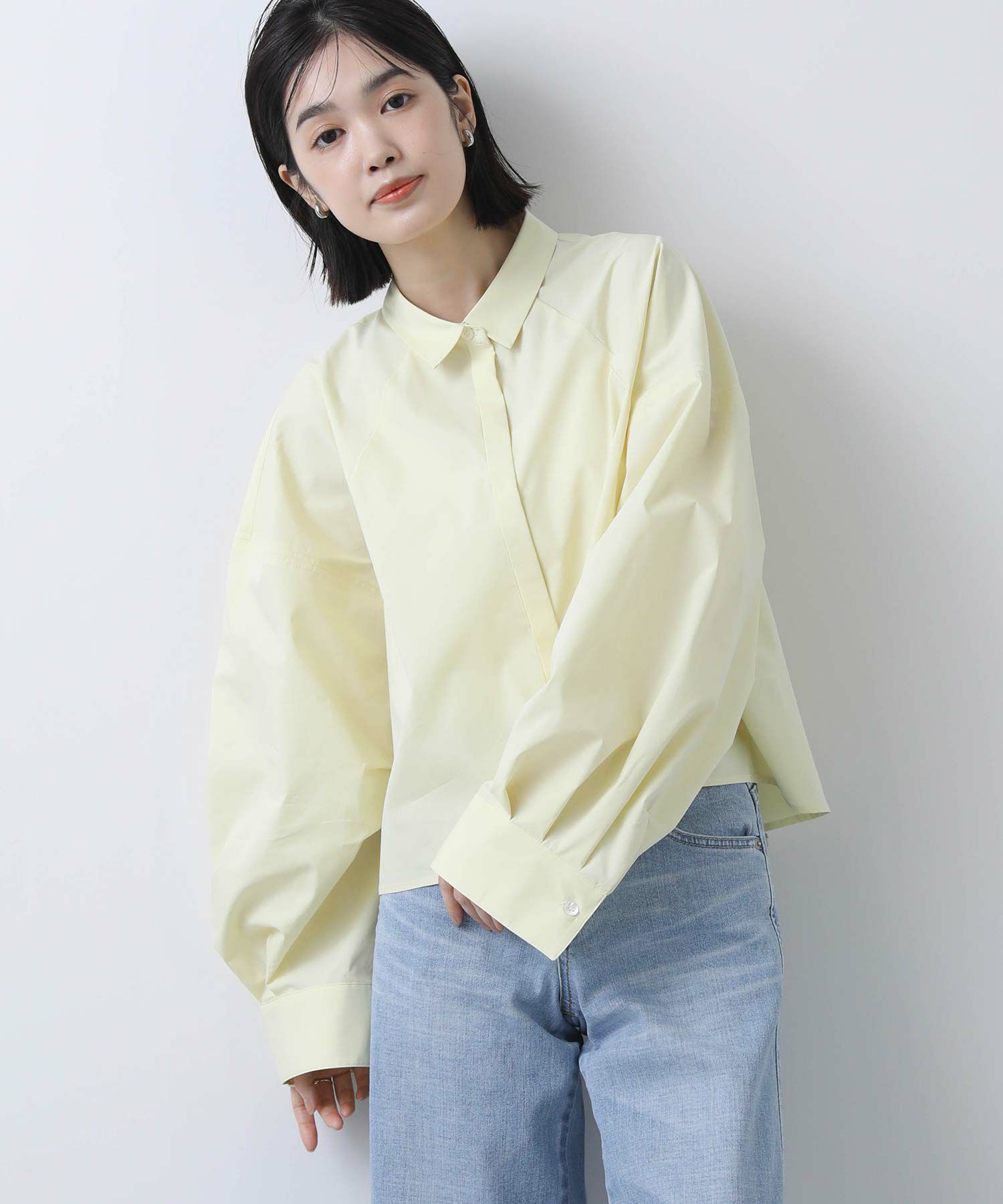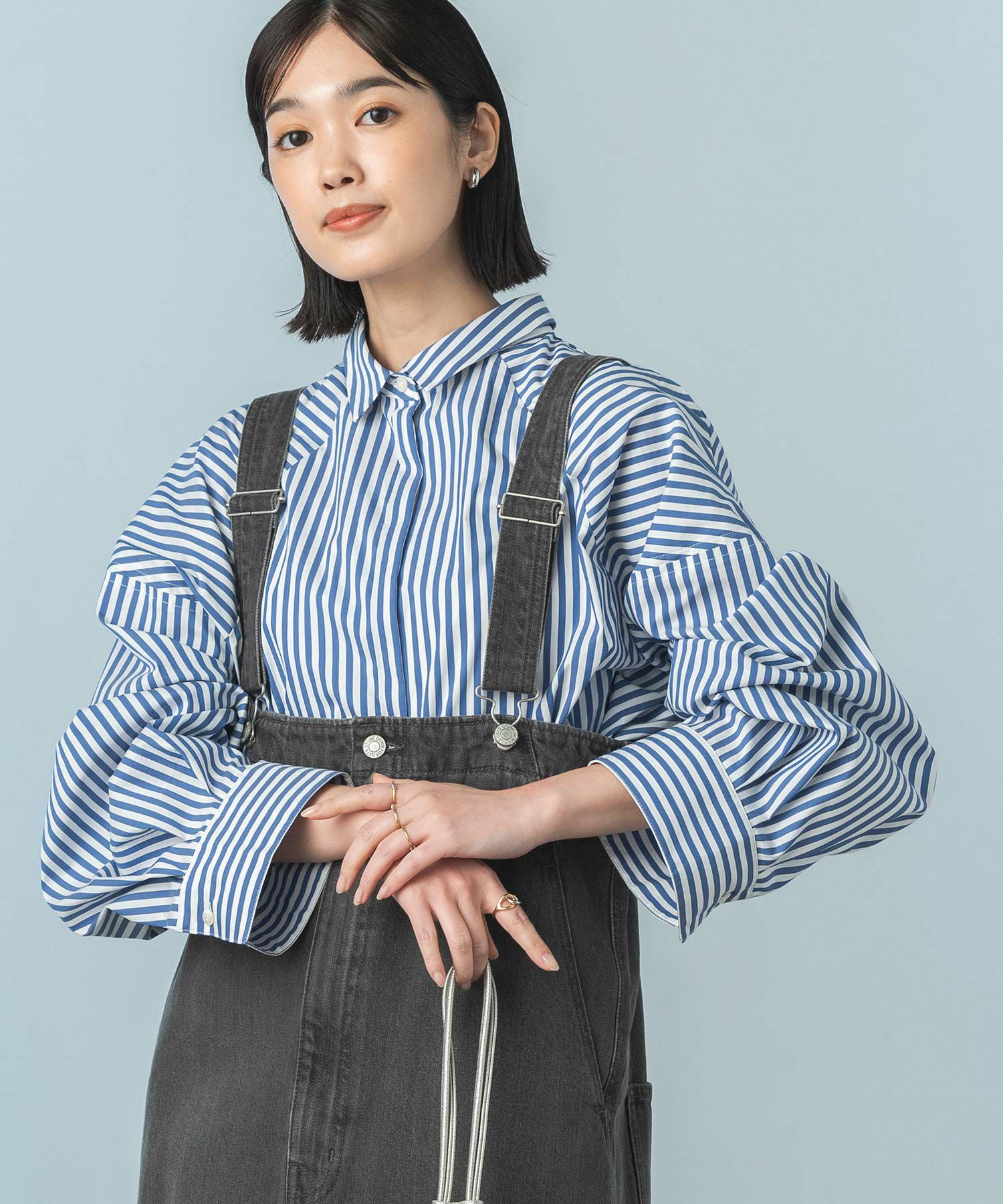 今年らしいクロップド丈のシャツ。