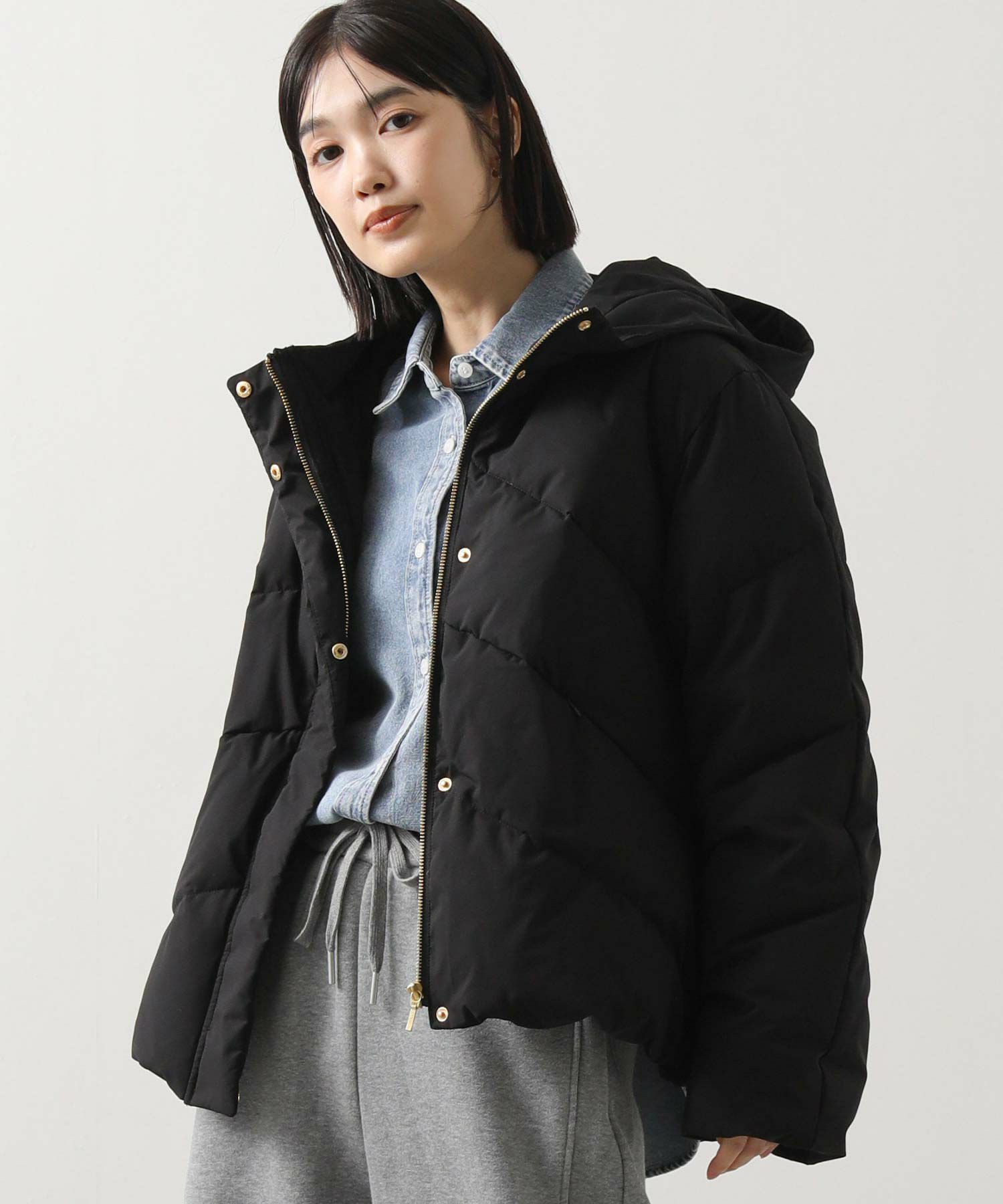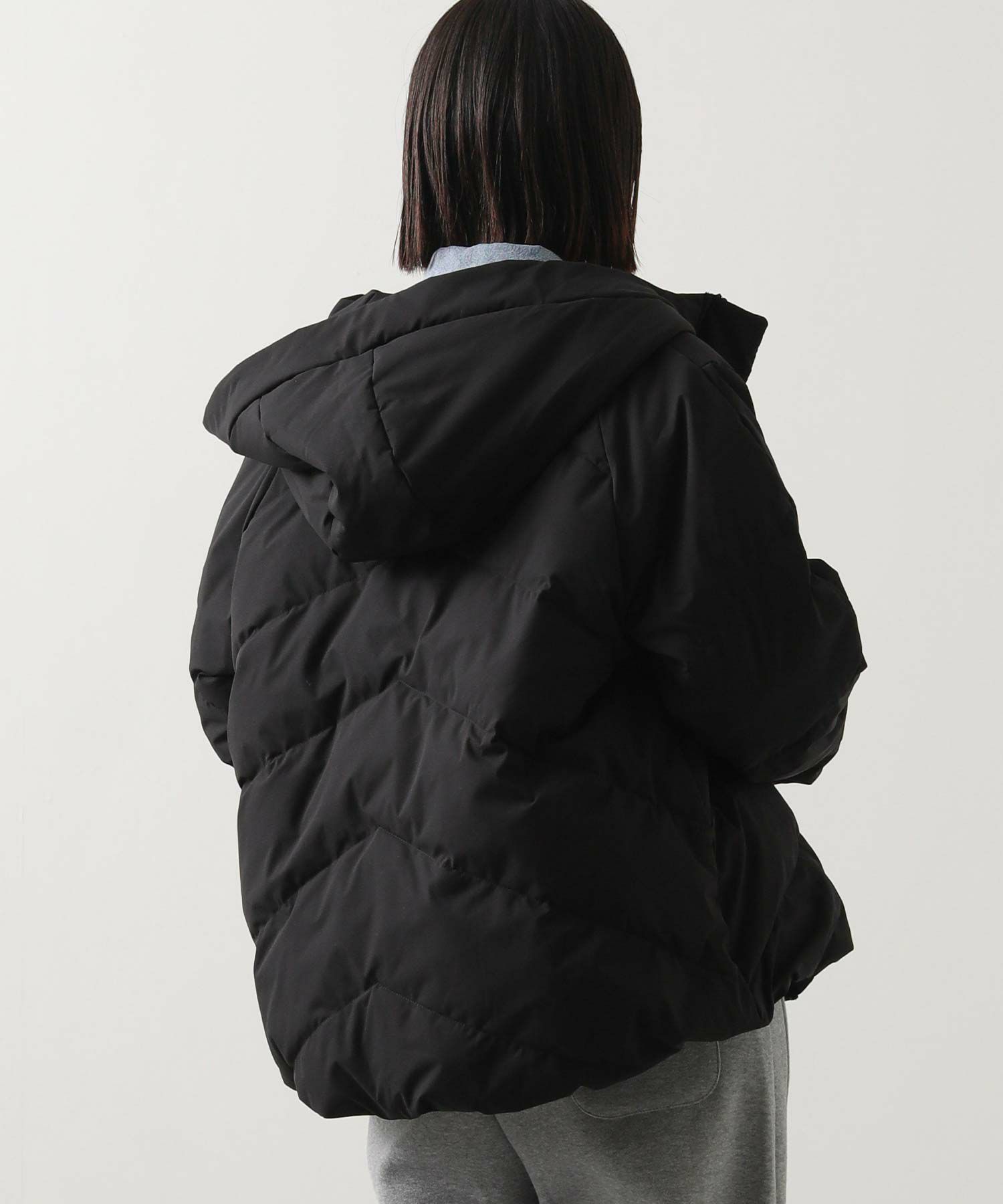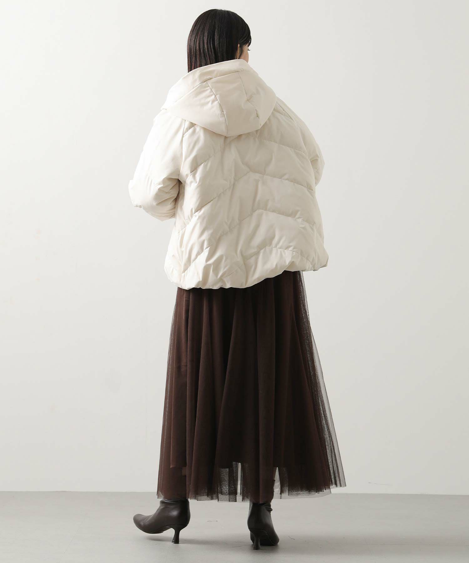 ふっくらと首元を包み込むボリュームのあるスタンドネックダウン。