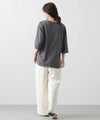 伸縮性のある着心地なので、堅苦しくなく着ていただけます。ボートネックで首回りがキレイに見えるように、裾はラウンドヘムにしてインしなくてもサマになるようにしています。