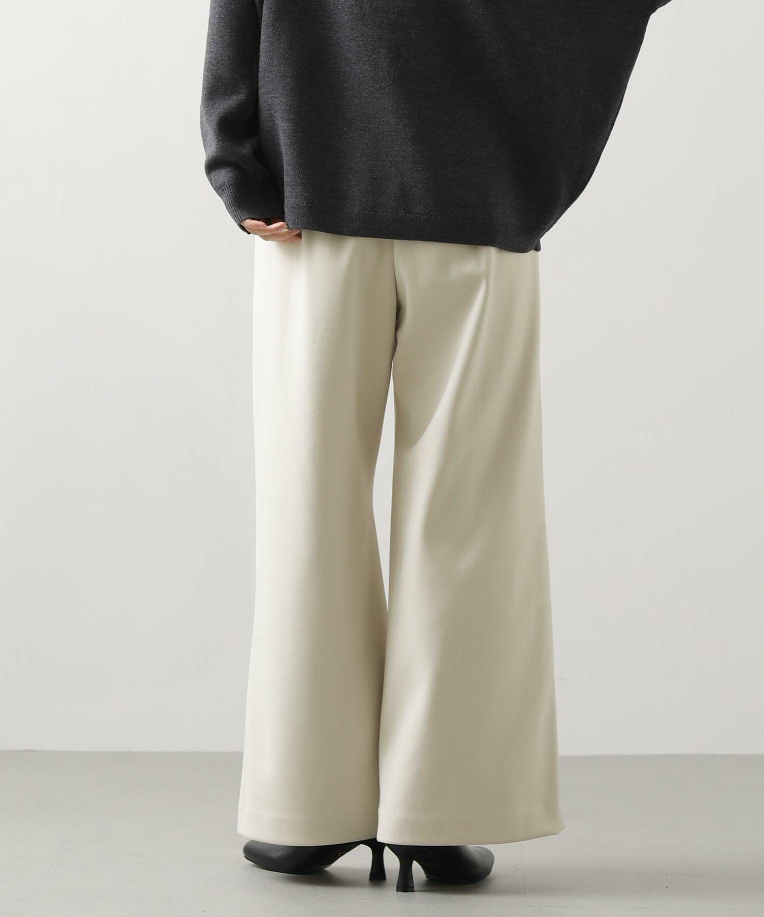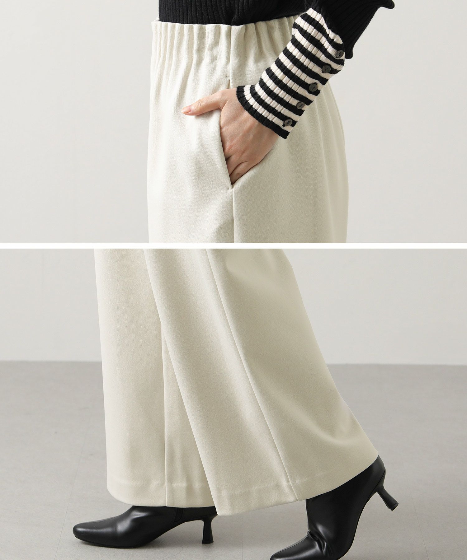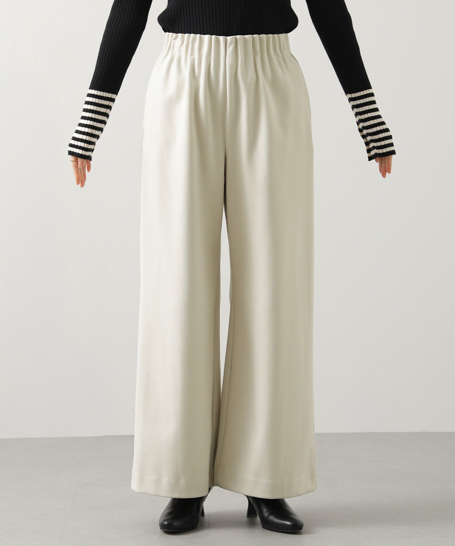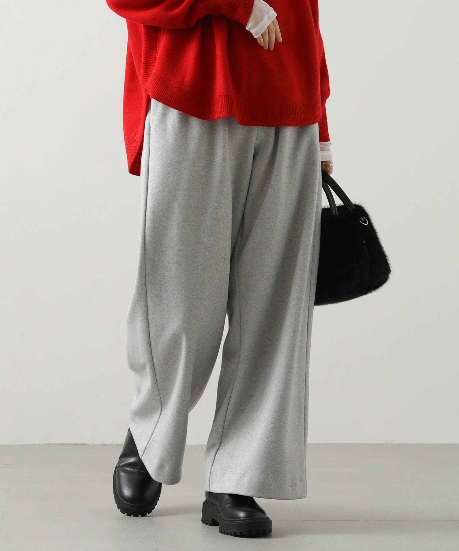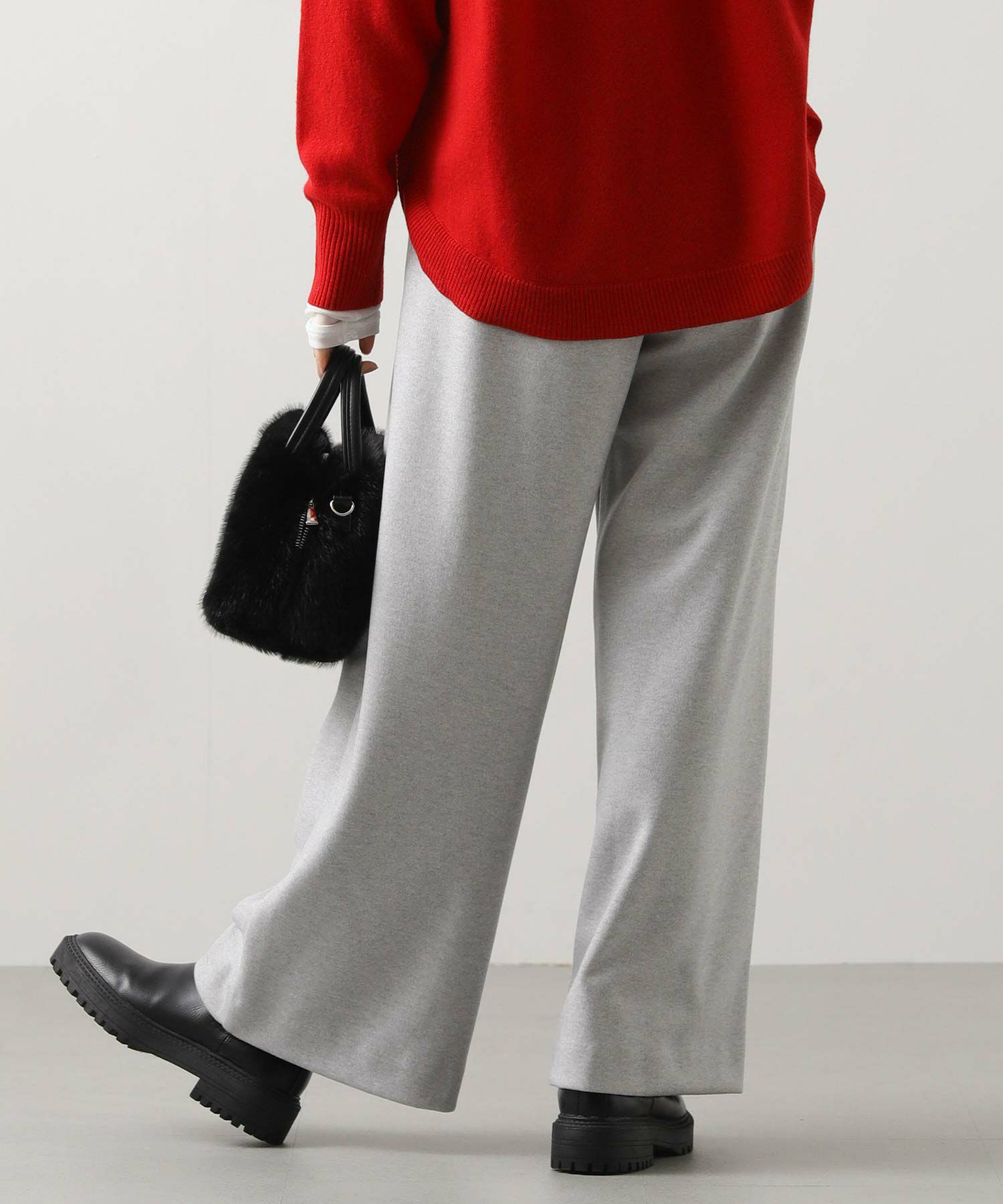 微起毛素材の広がりすぎない程よいワイドシルエットのイージーパンツ。
