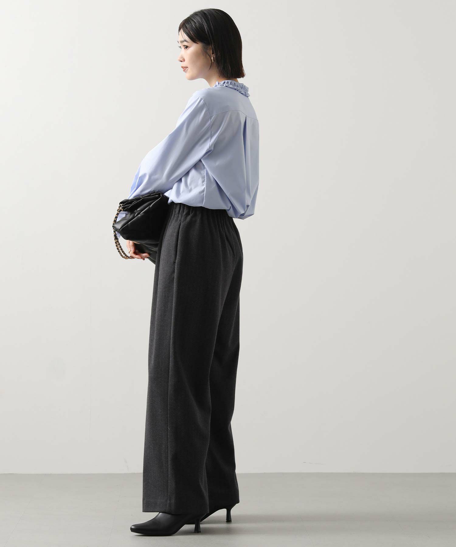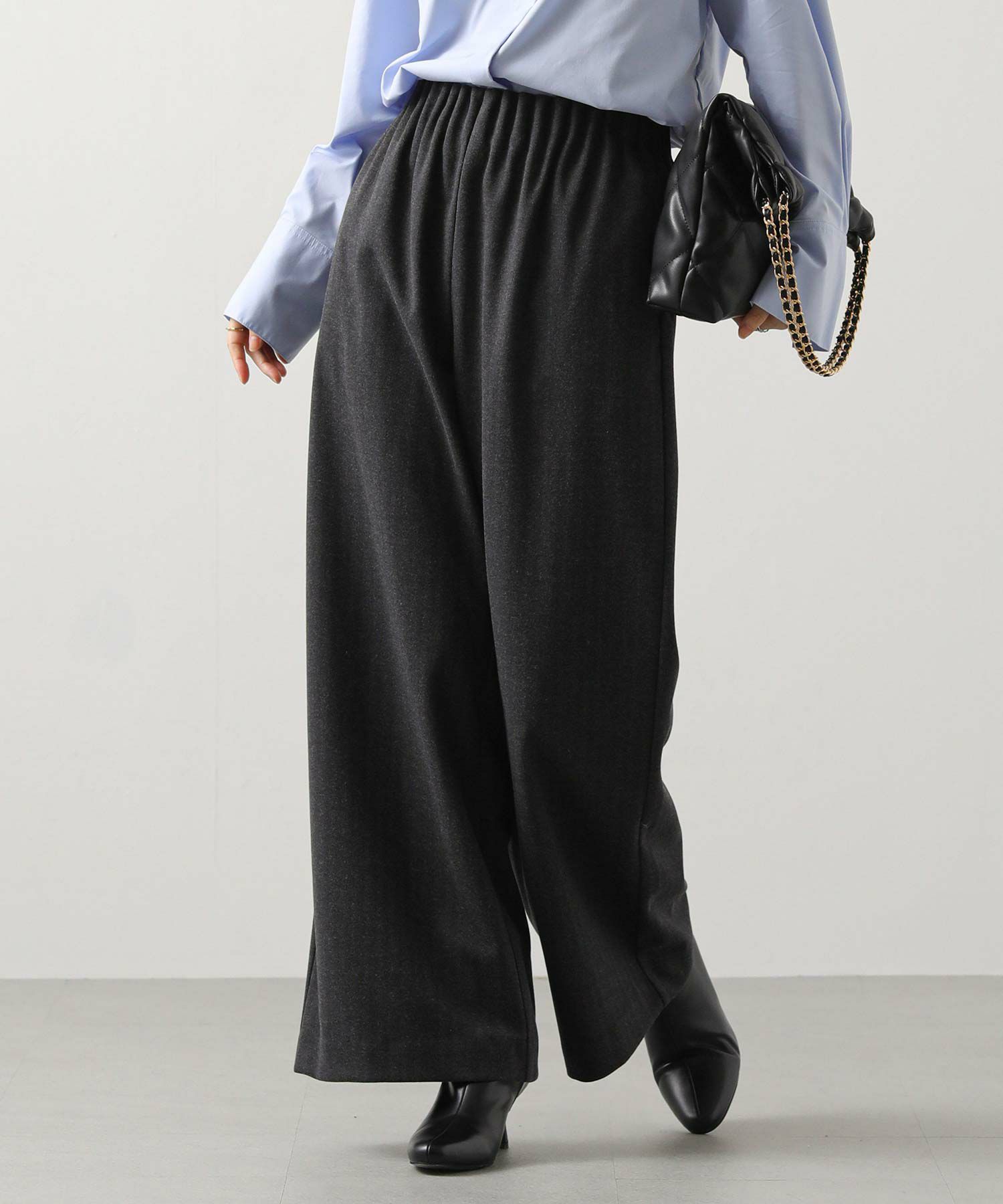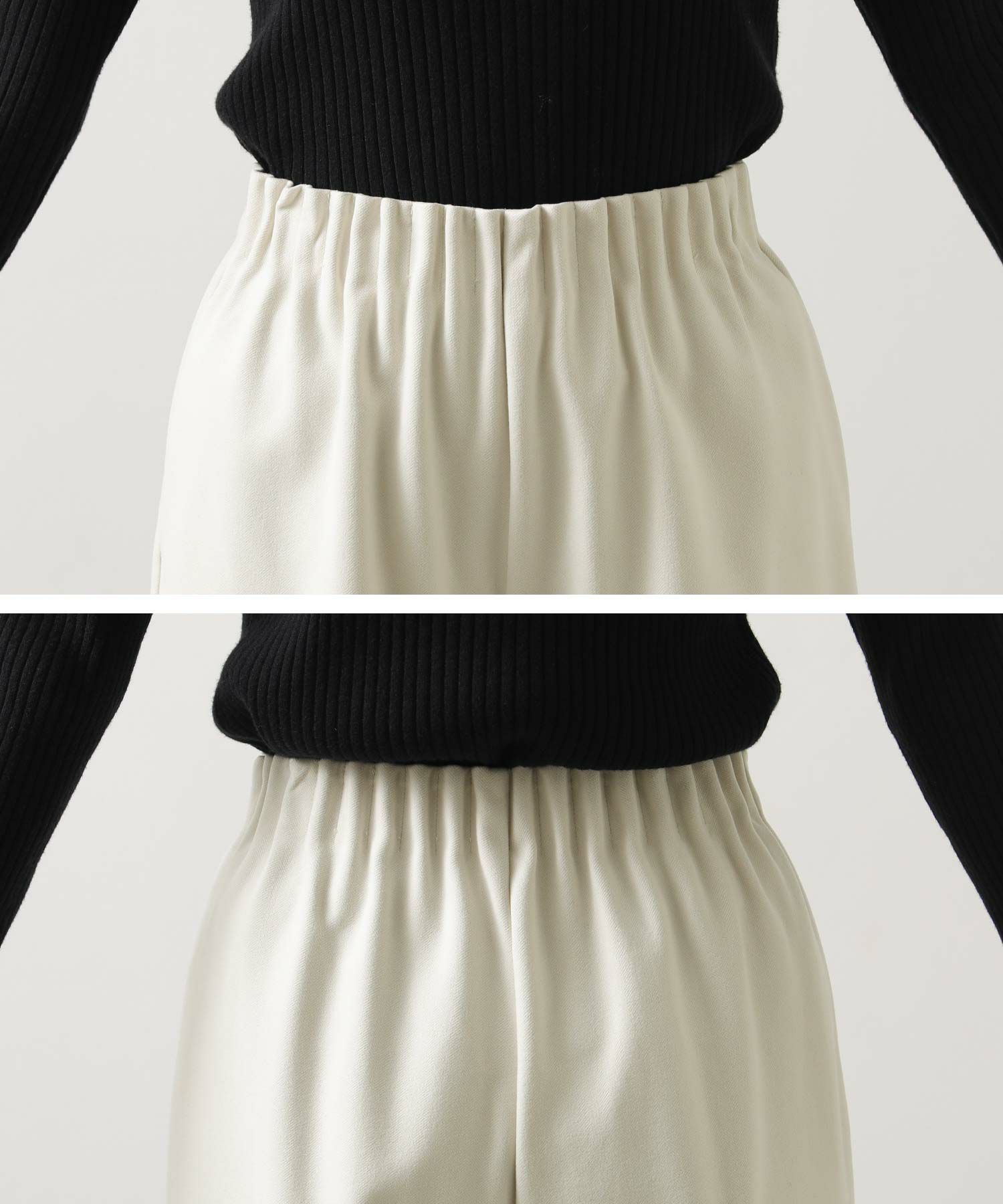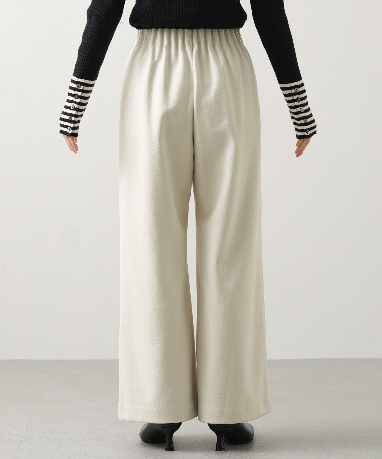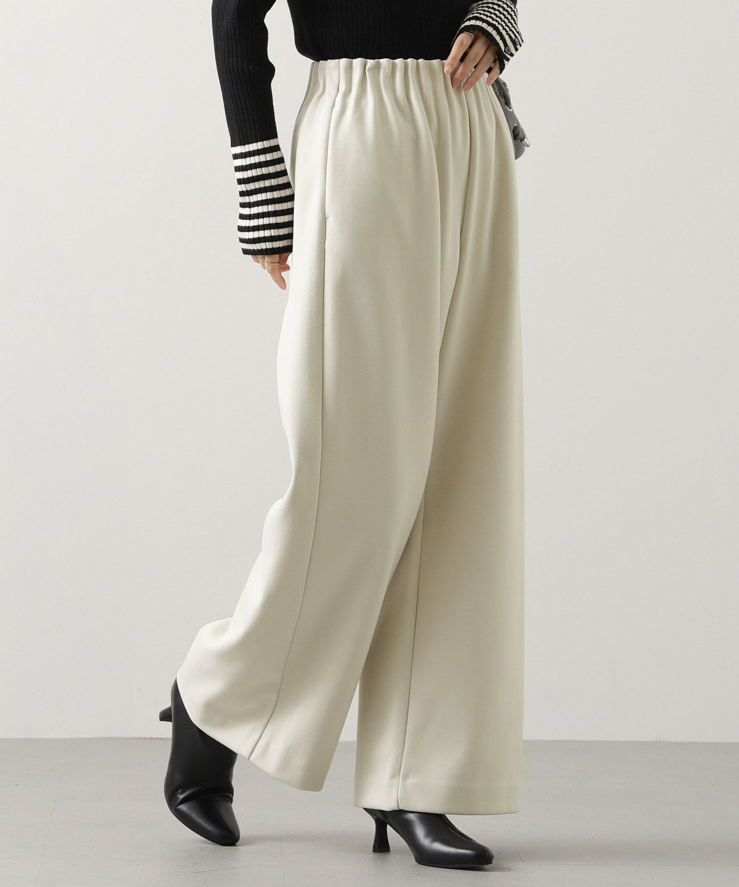 微起毛素材の広がりすぎない程よいワイドシルエットのイージーパンツ。