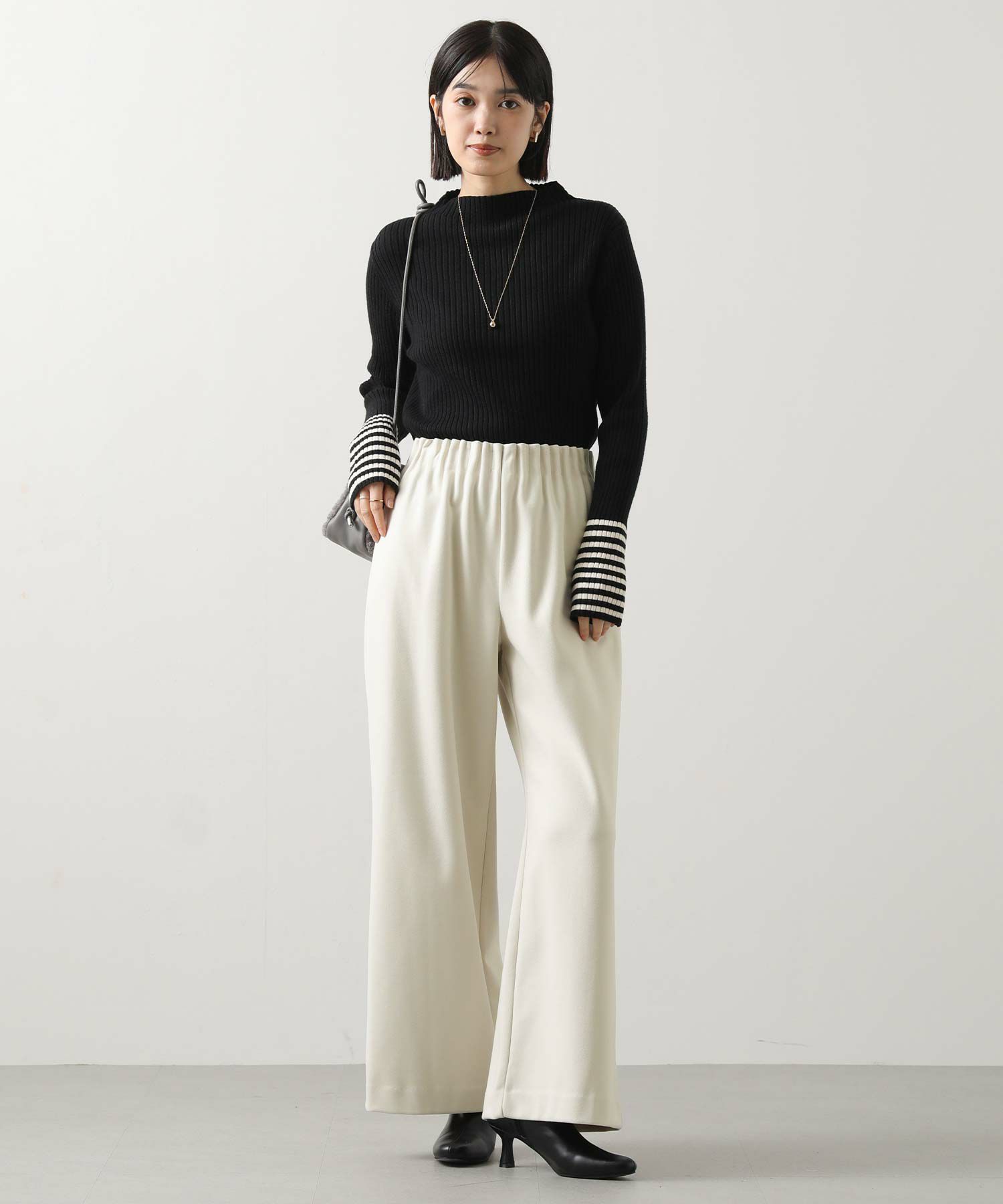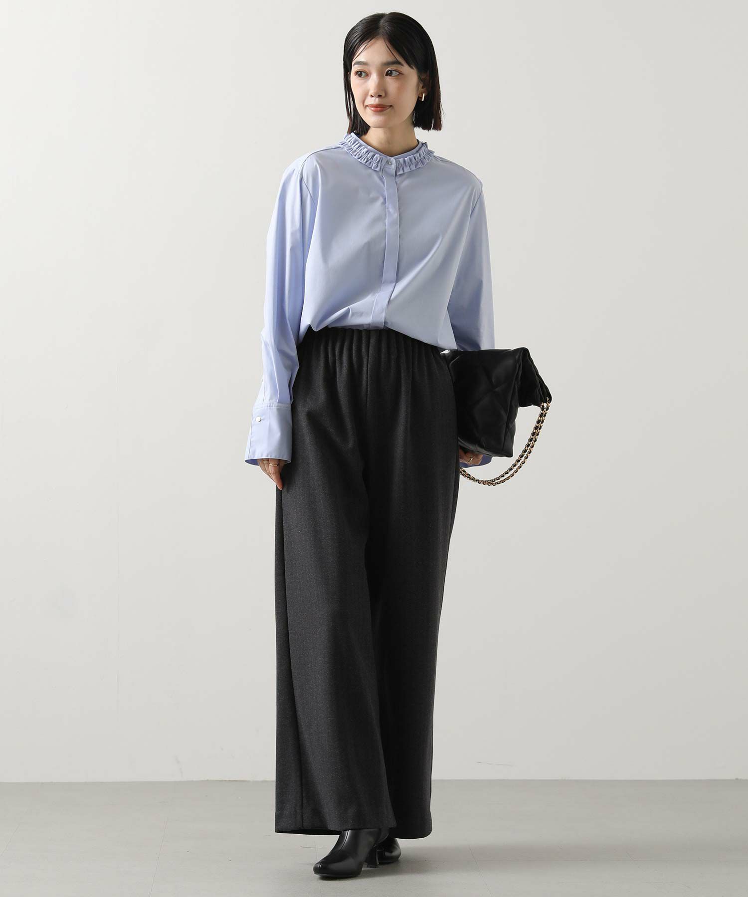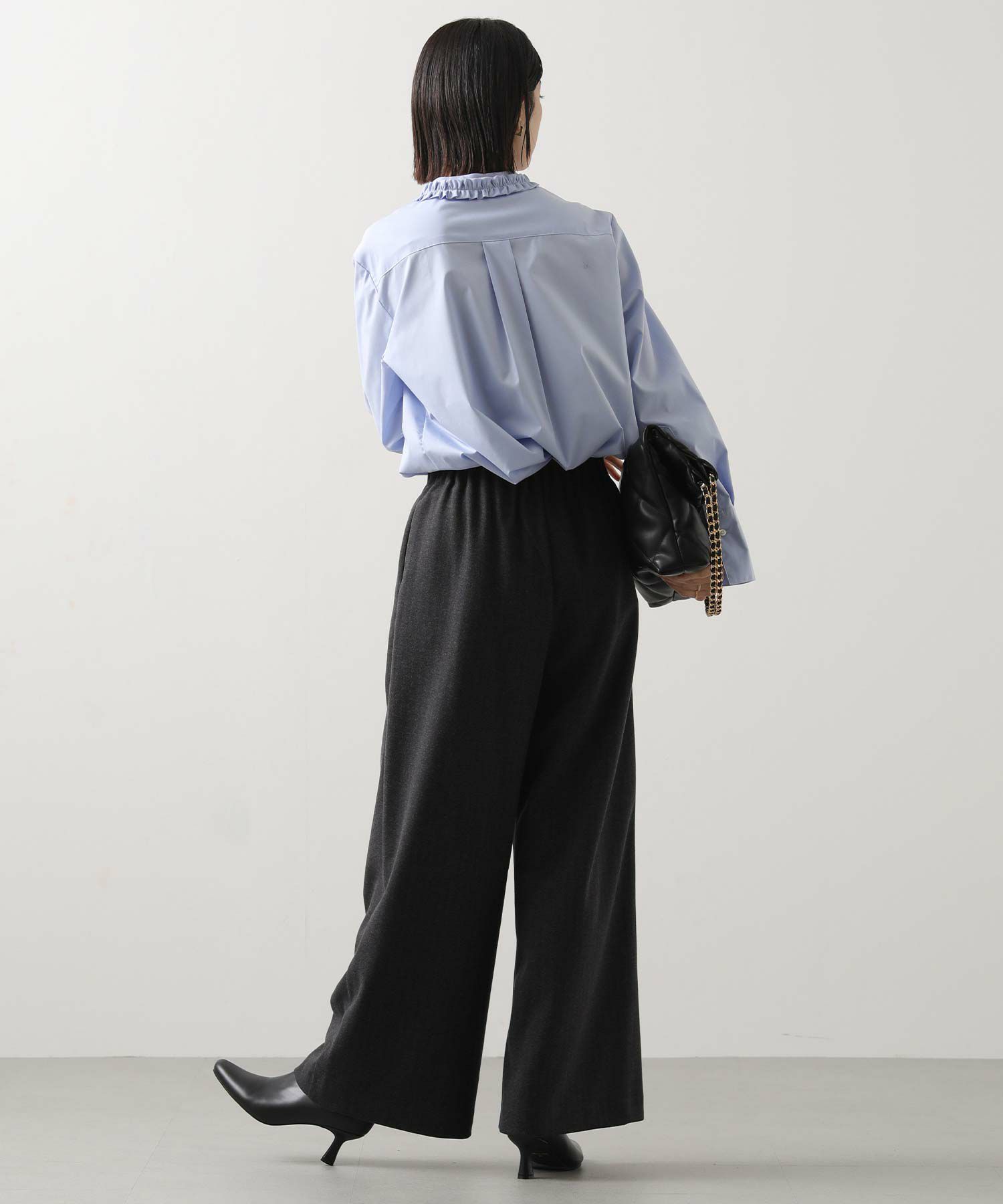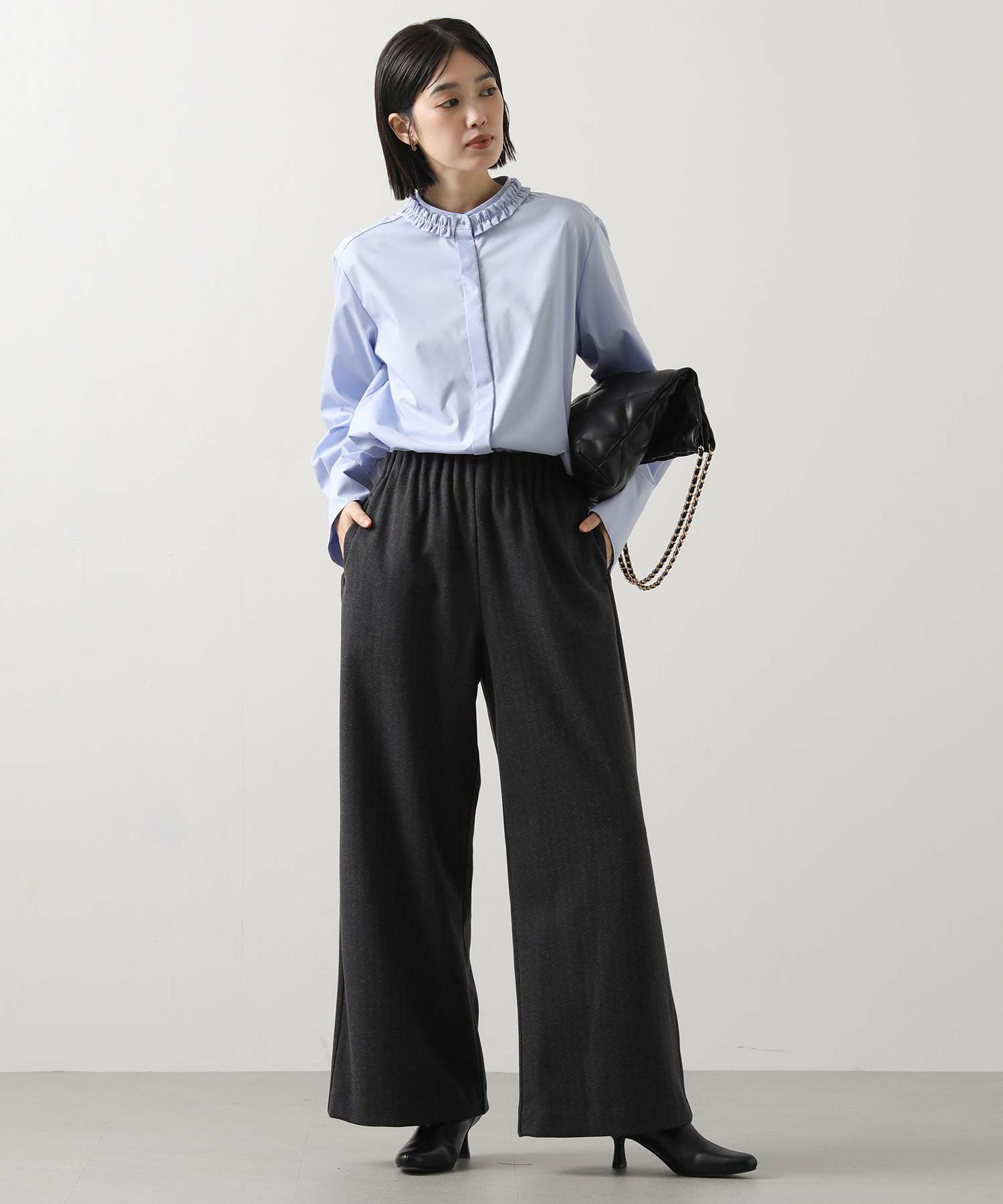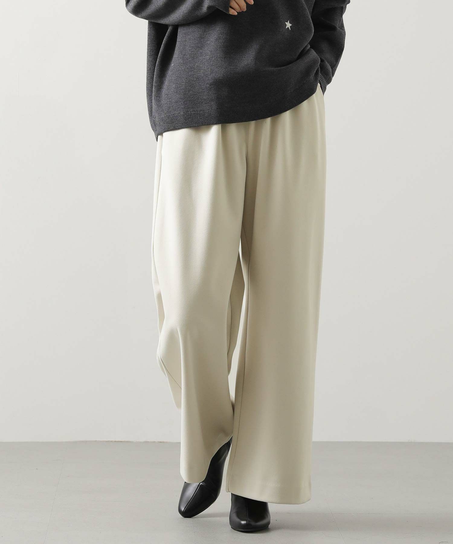 微起毛素材の広がりすぎない程よいワイドシルエットのイージーパンツ。