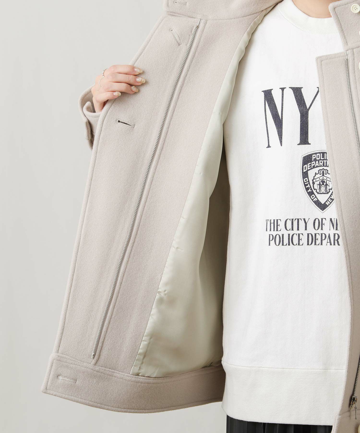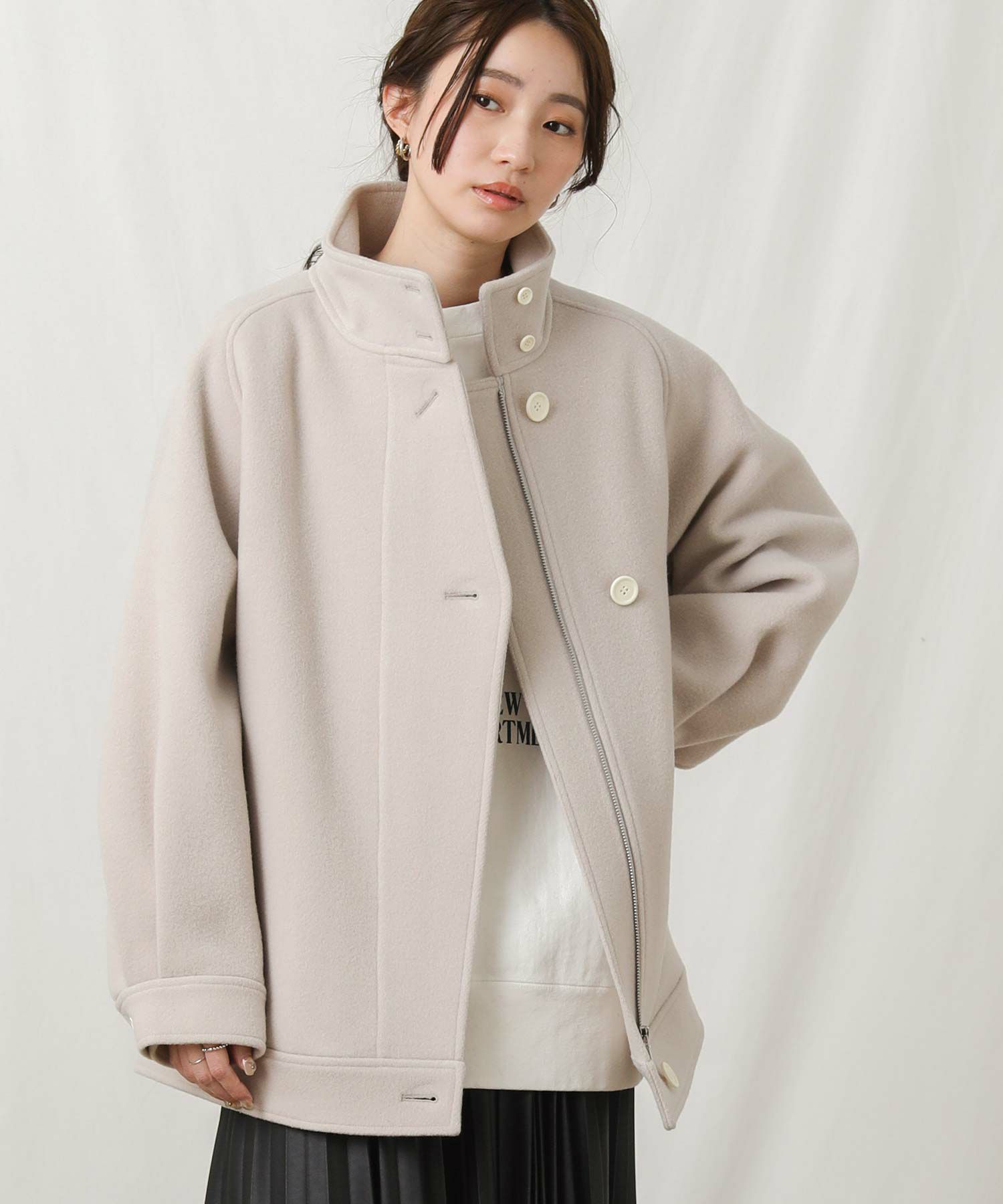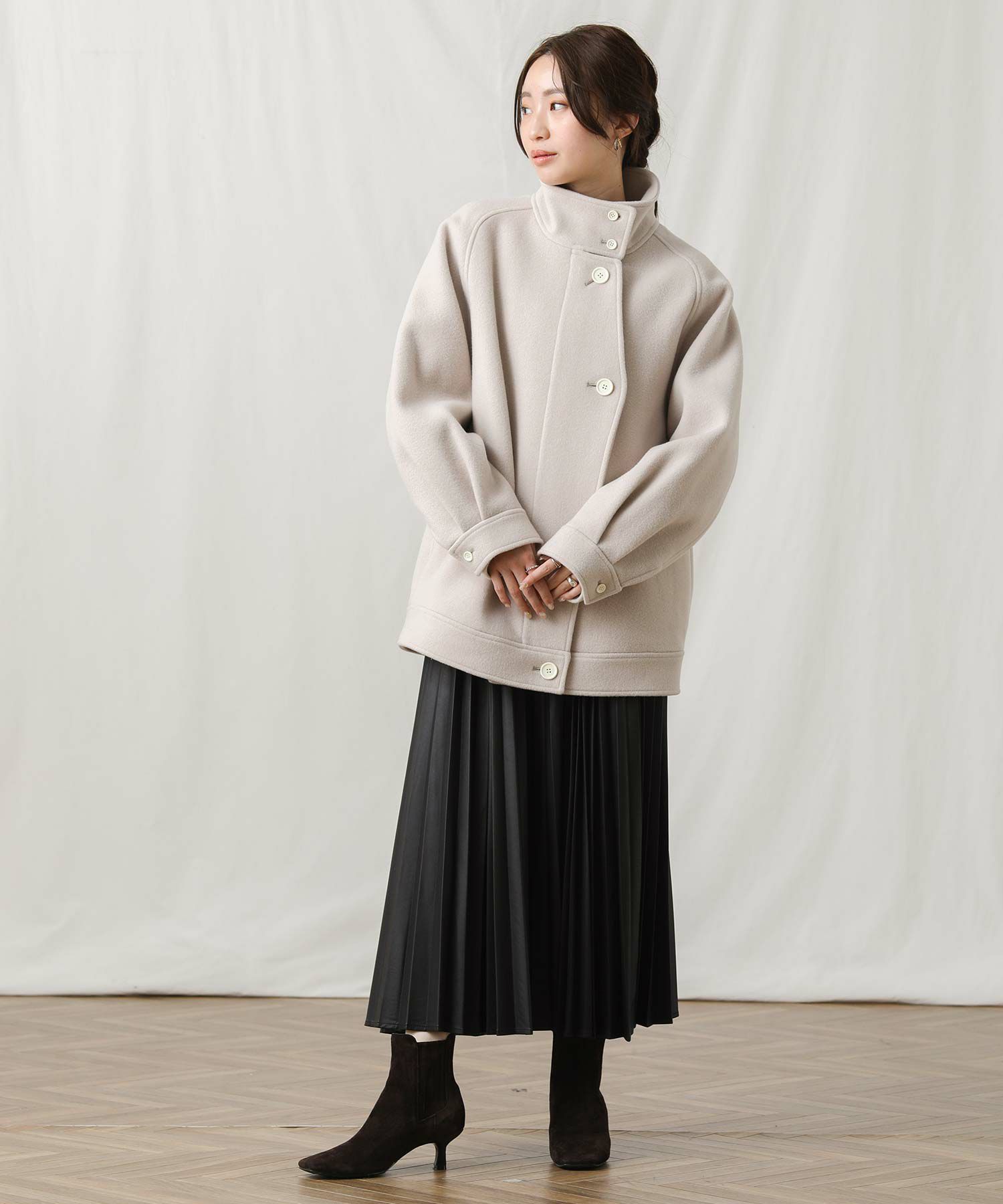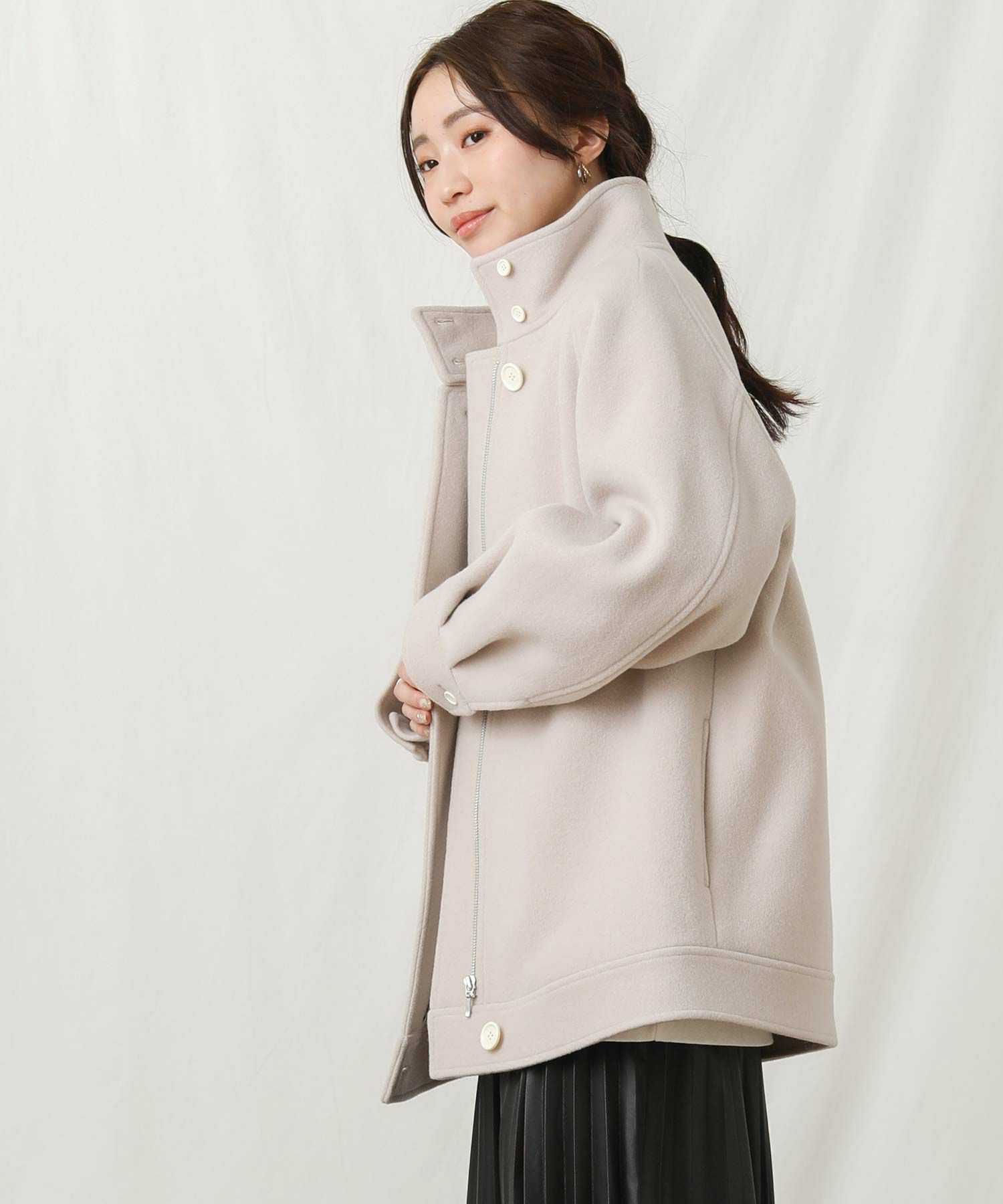 【si:m/スィーム】から、スタンドネックと比翼デザインが可愛いコートをセレクト。