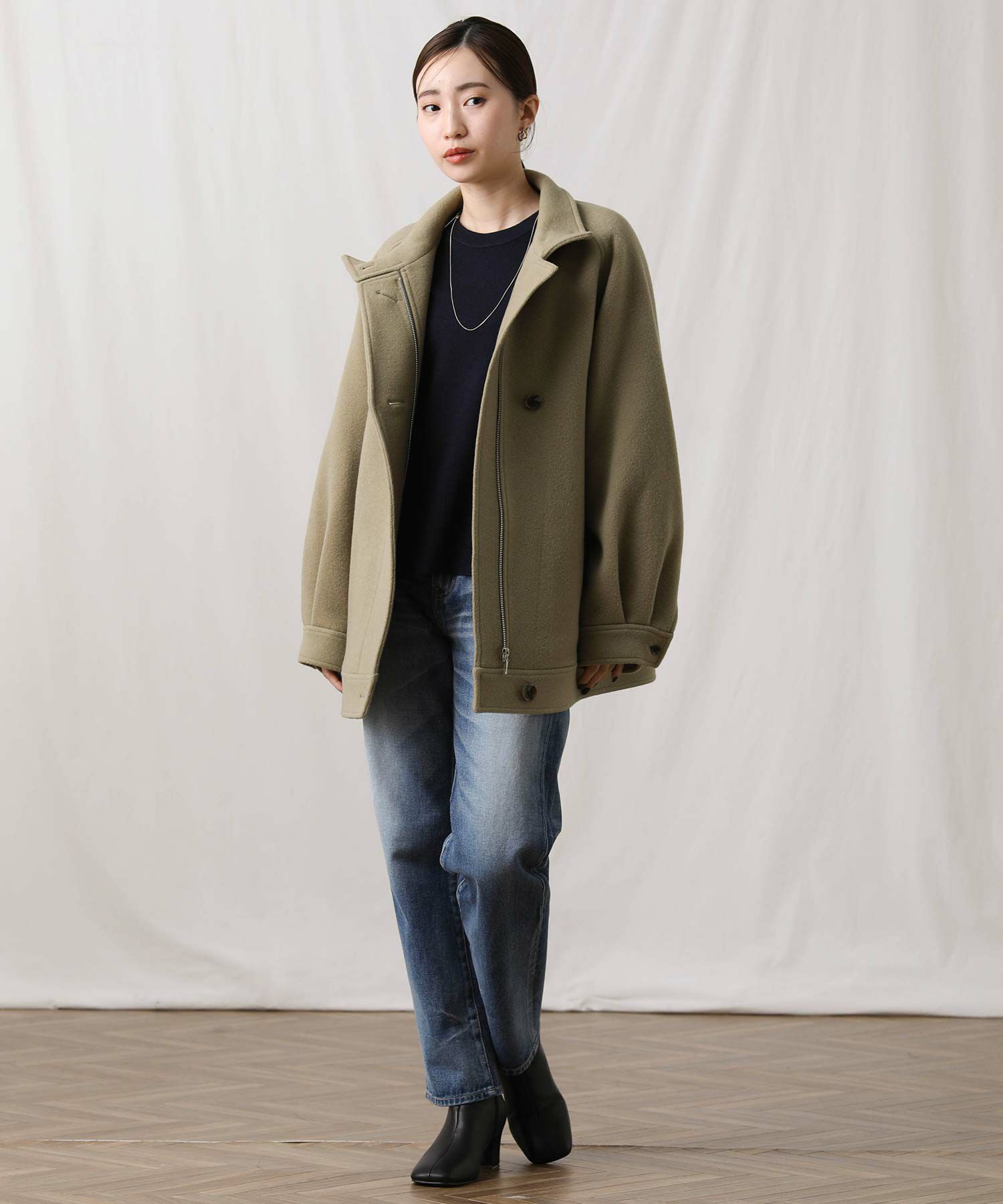 ※着用画像は撮影状況、光の当たり具合で色みが違って見える場合がございます。実際の色みについては、画像一覧の最後に掲載している詳細画像をご参照ください。