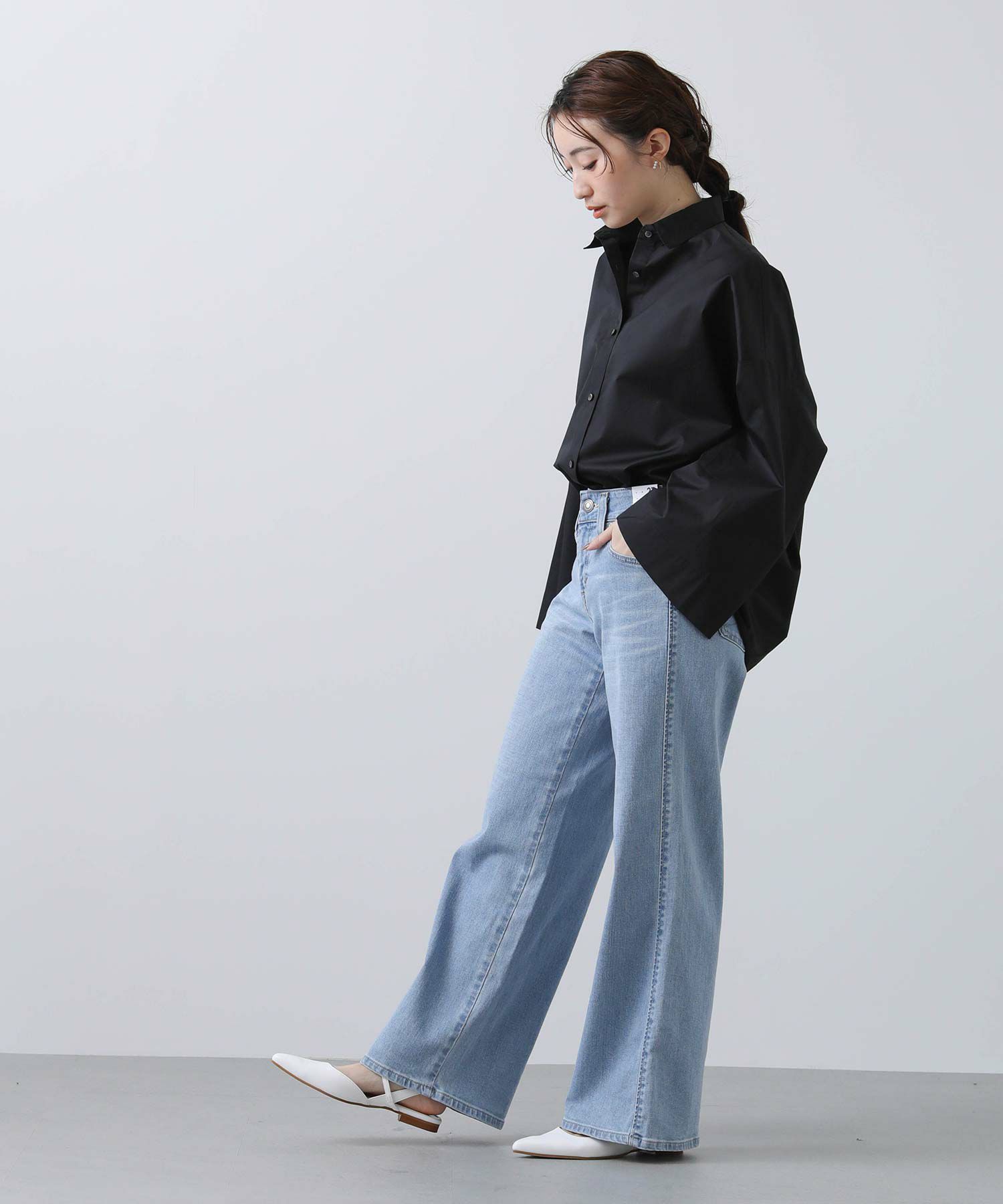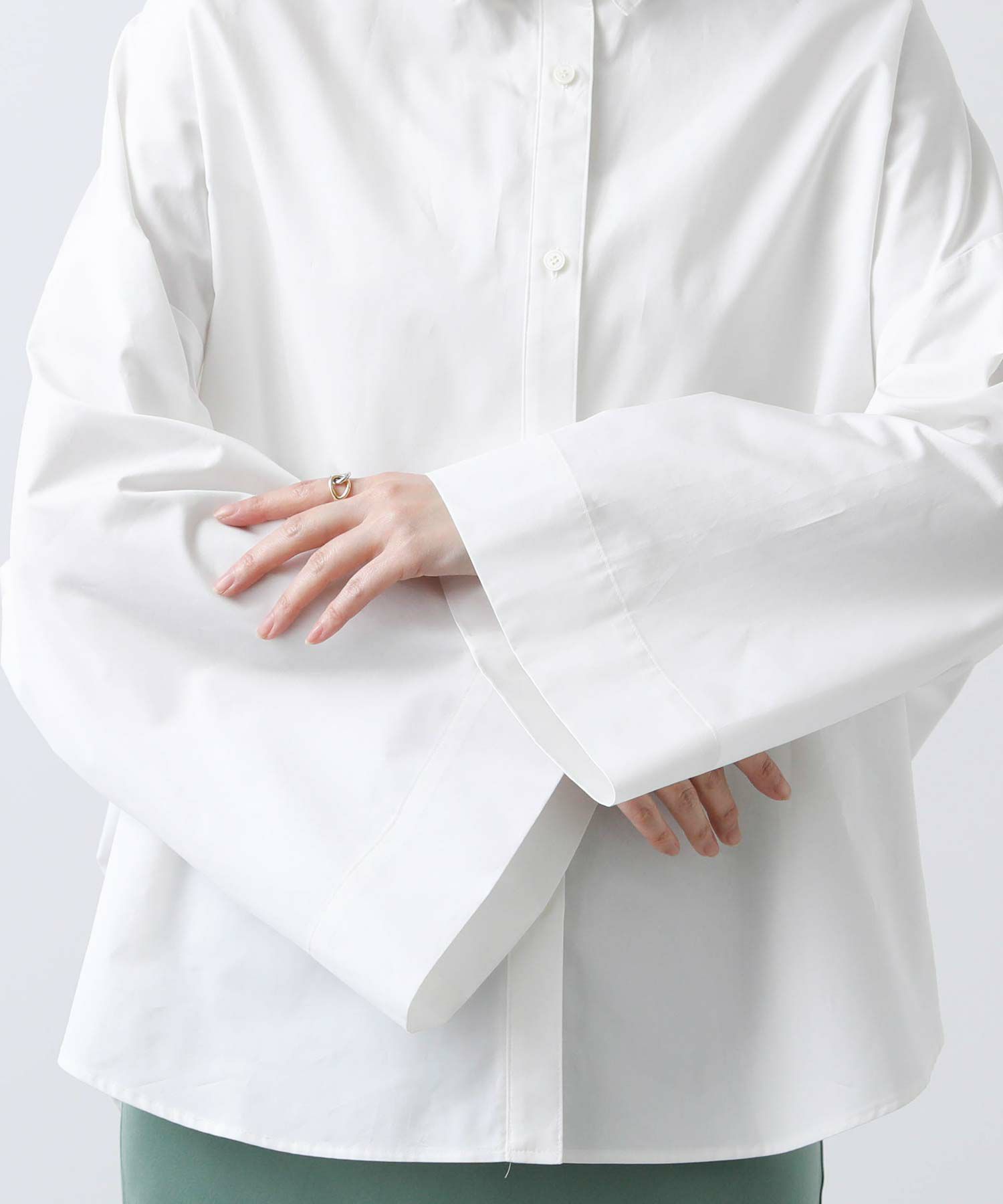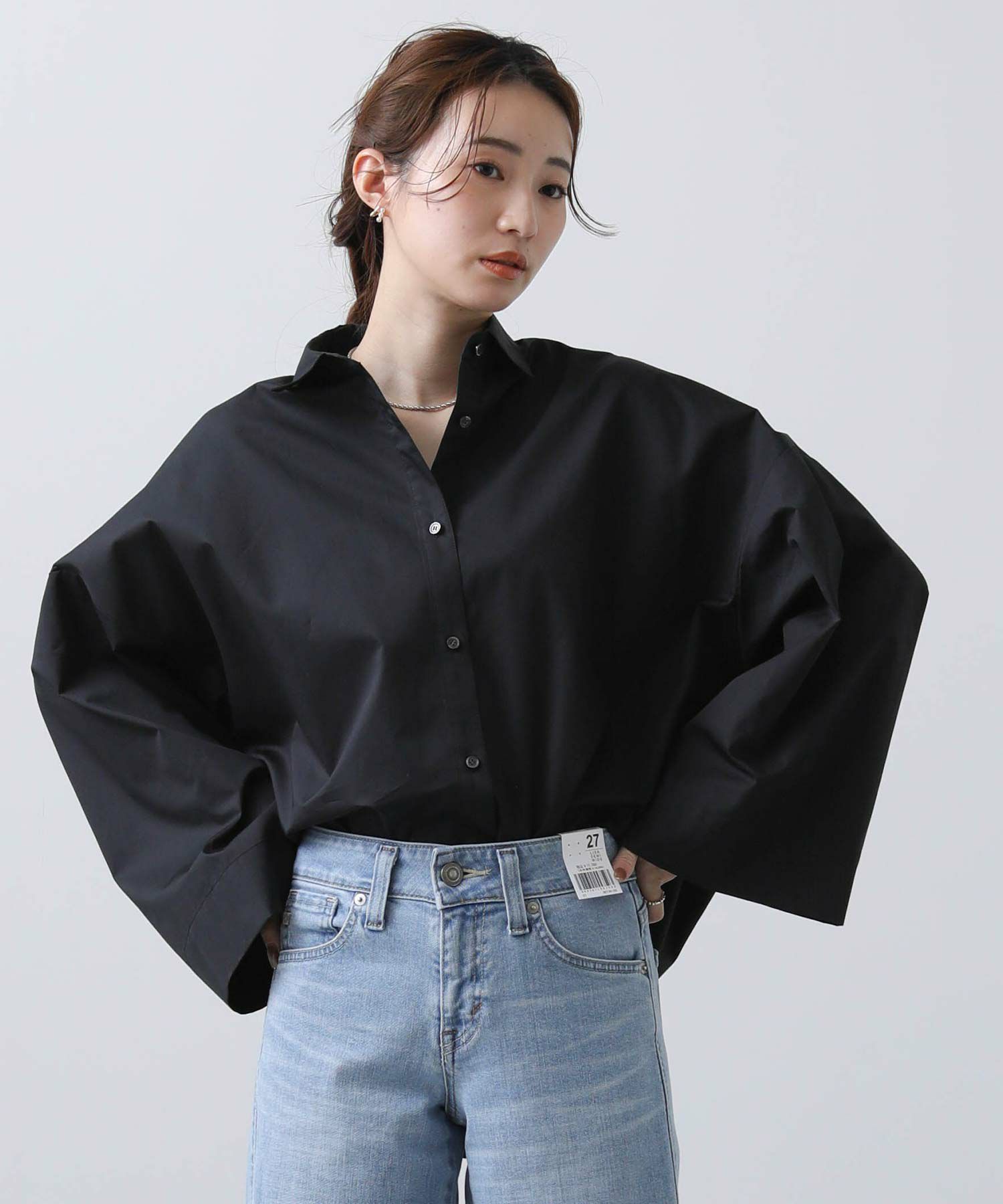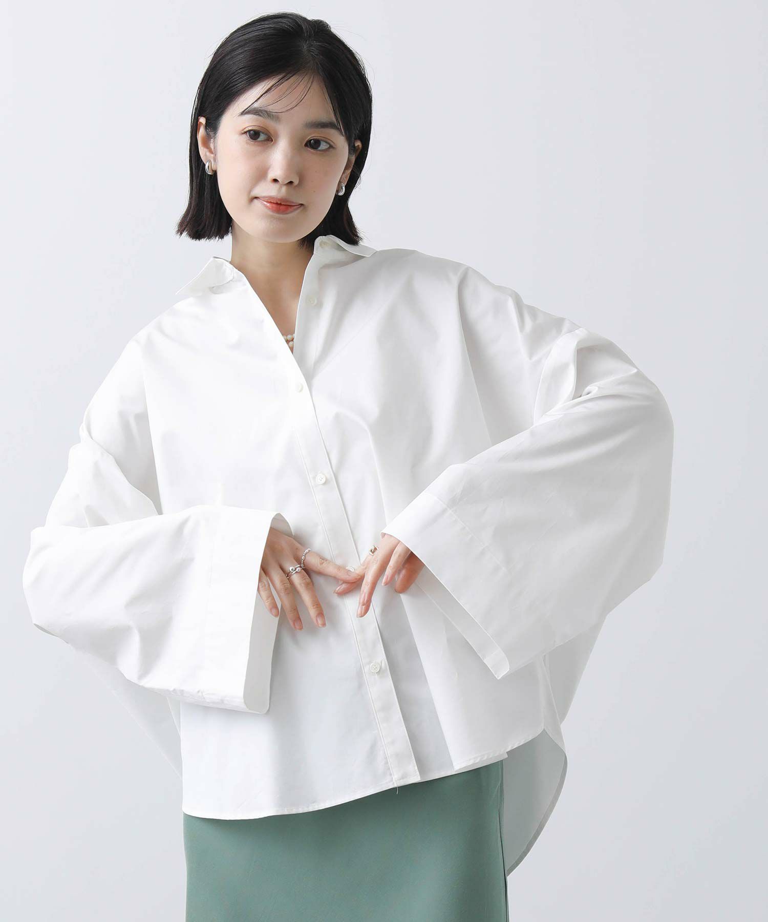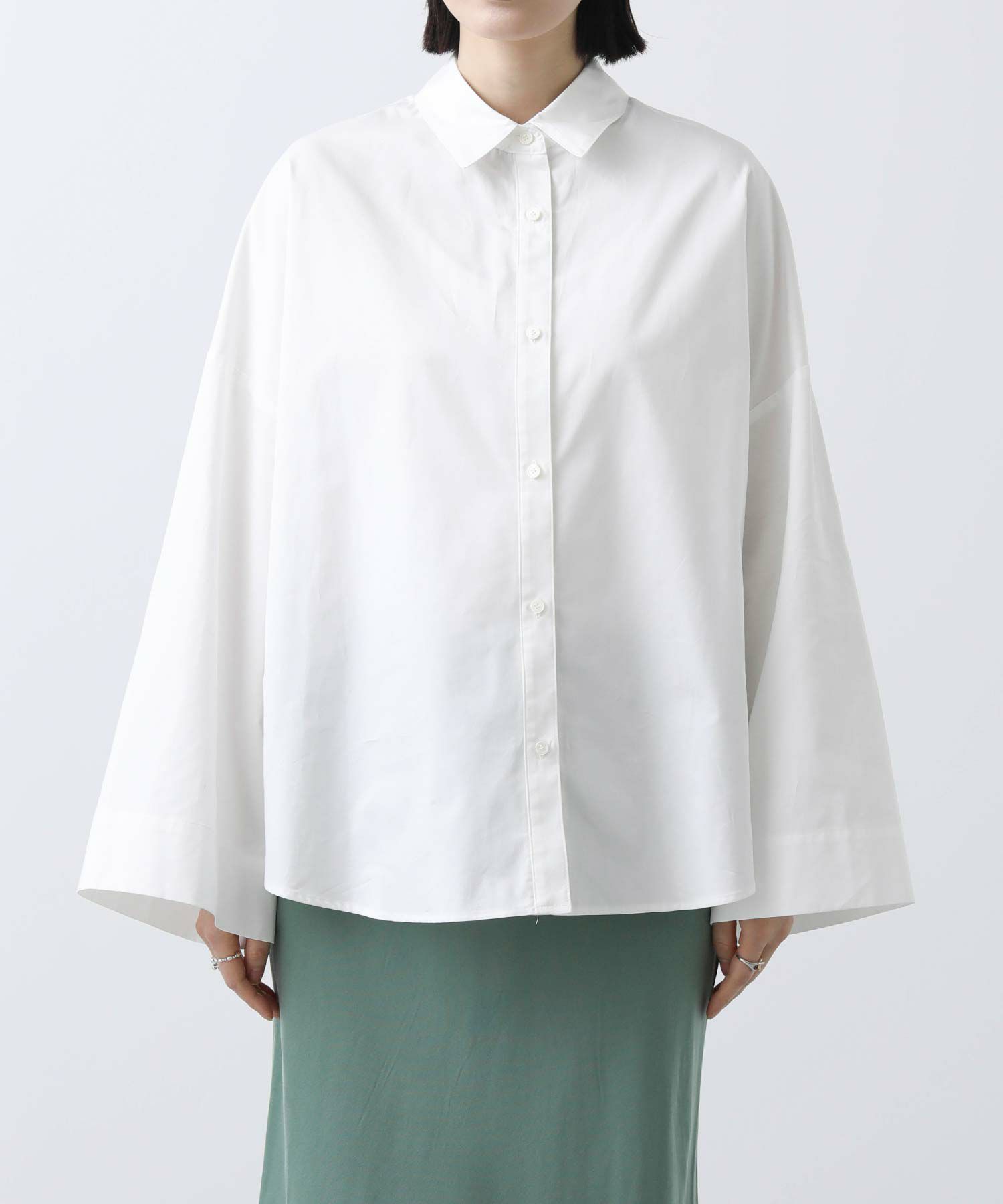ワイドなスリーブでボリューム感のあるシルエットを楽しめるシャツ。