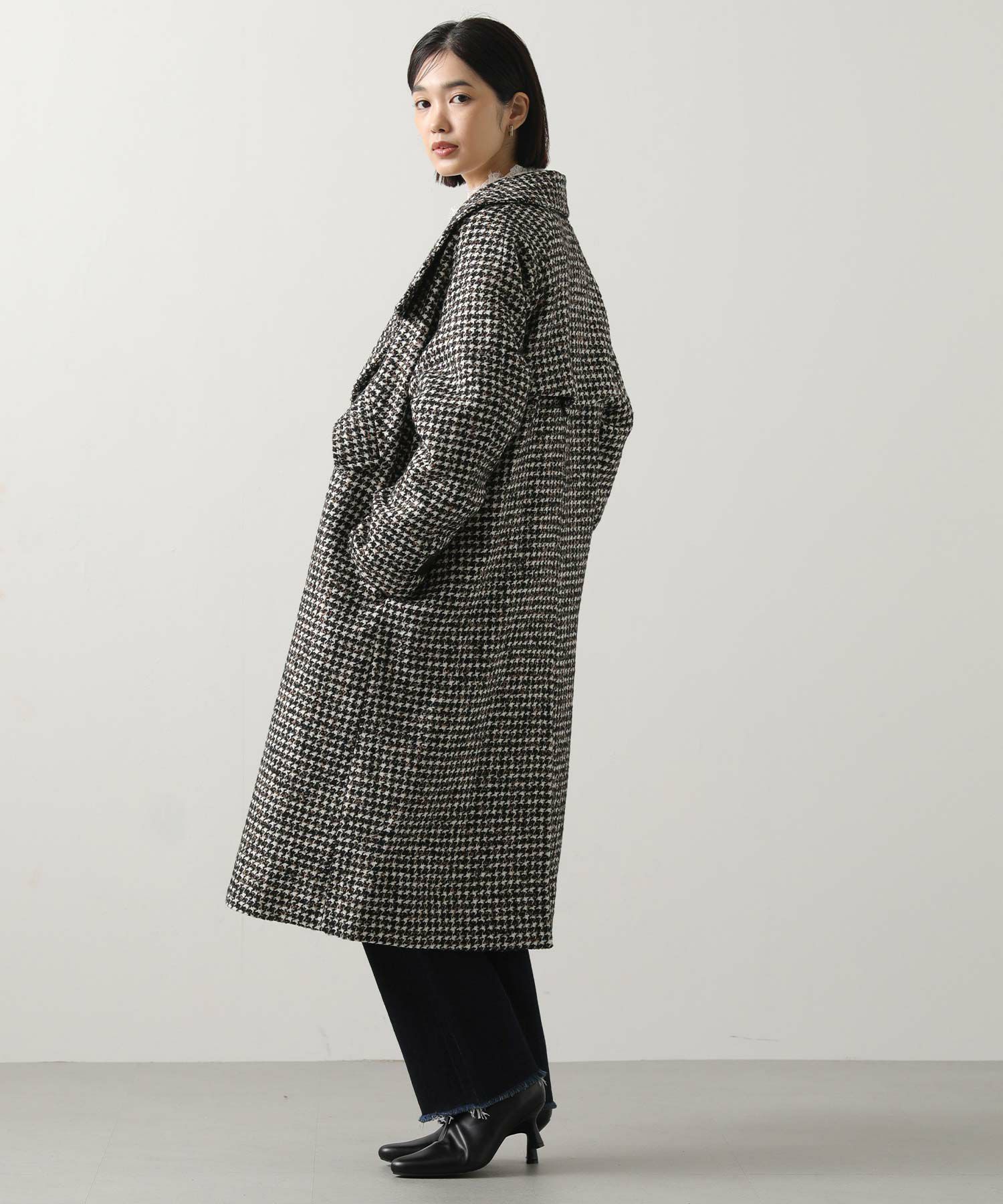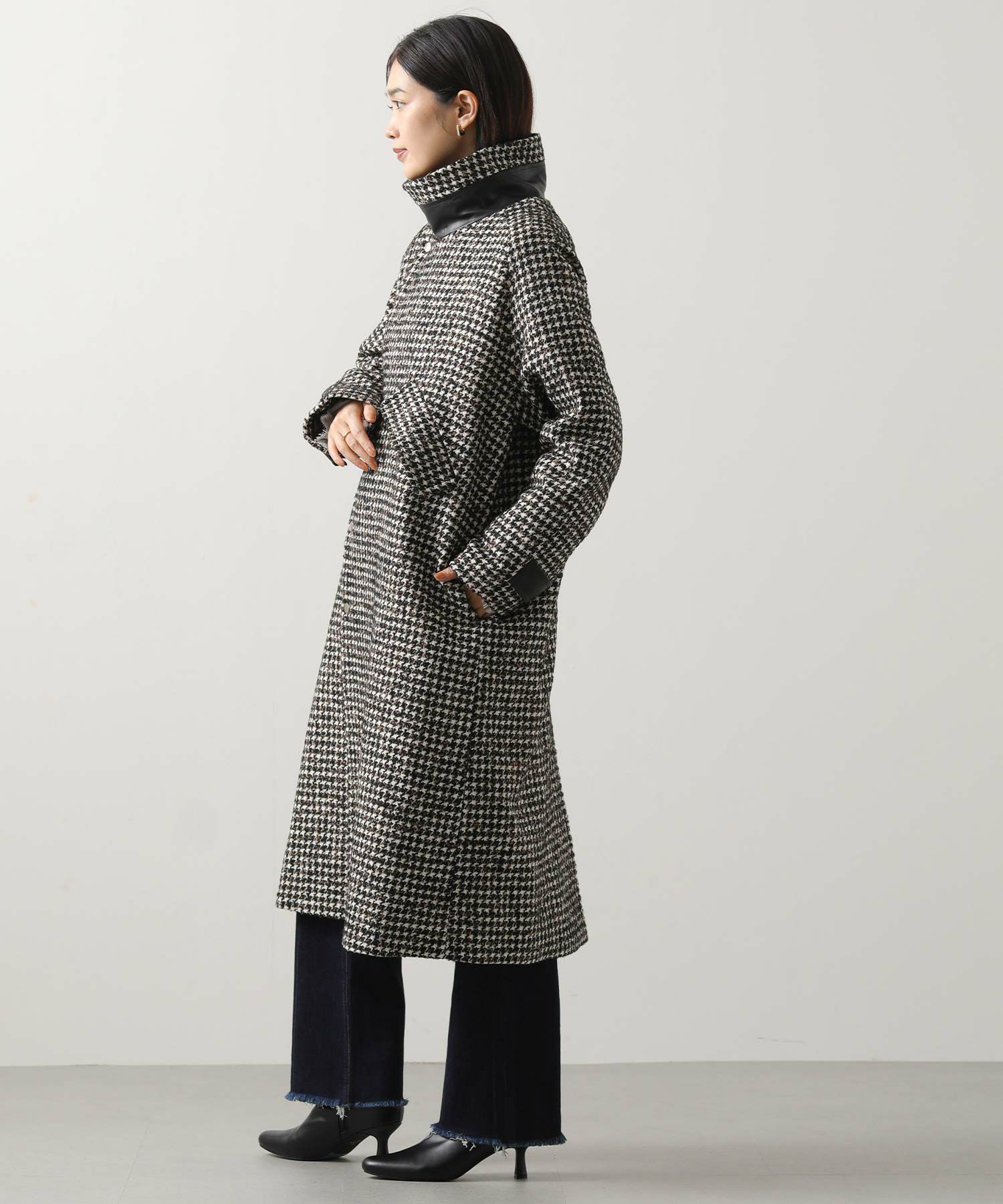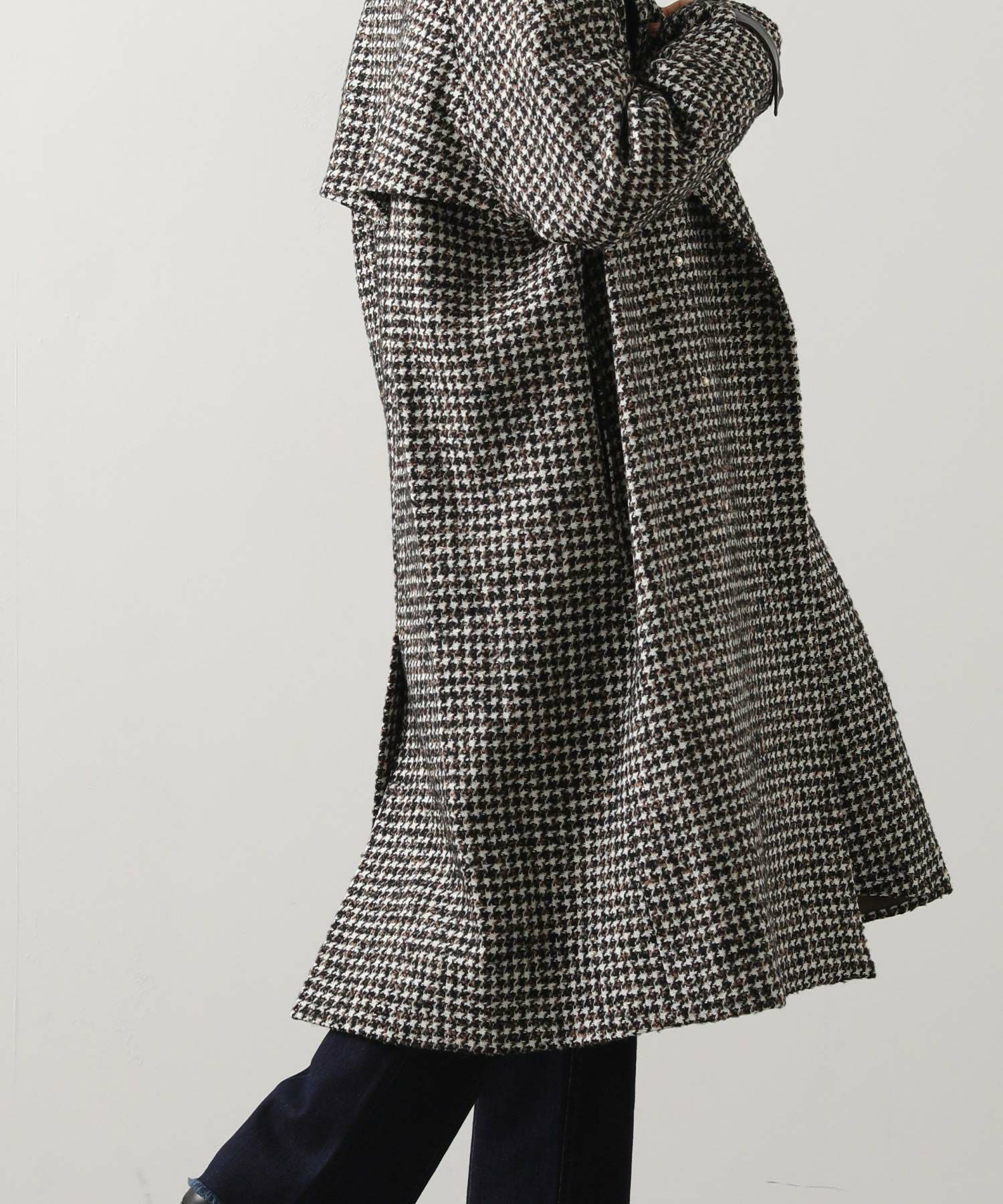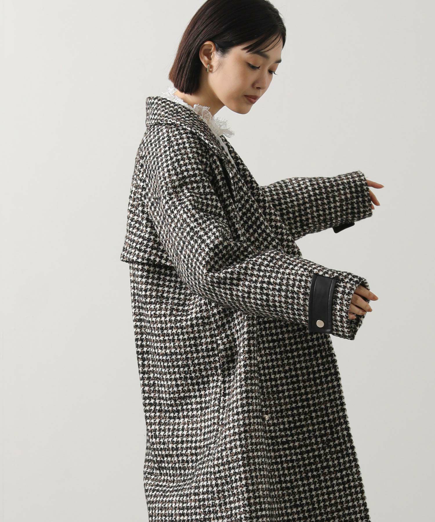 【LalliaMù(ラリア・ムー)】から、冬のスタイルに華やかさをプラスする、千鳥格子柄のロングコートをセレクト。