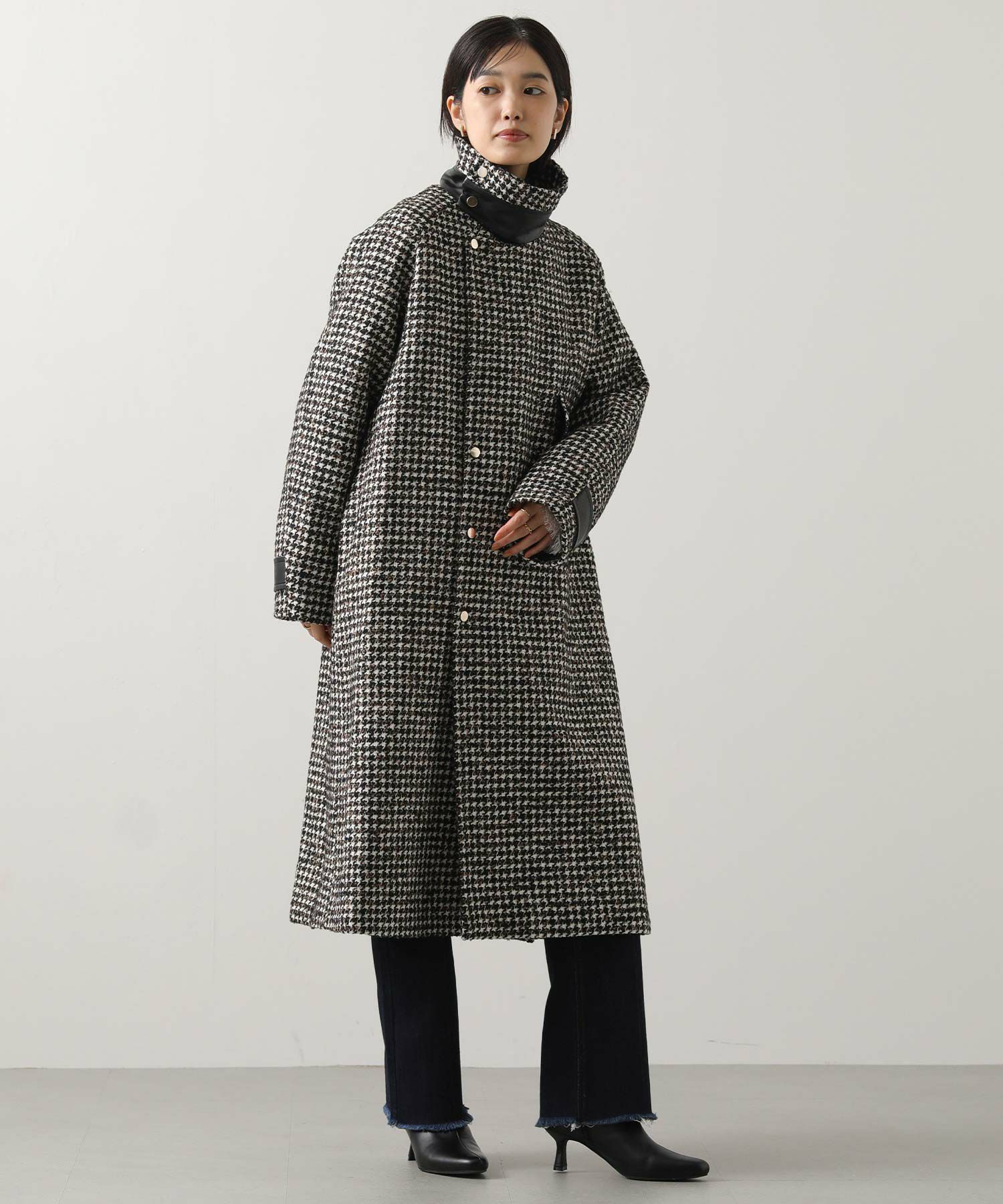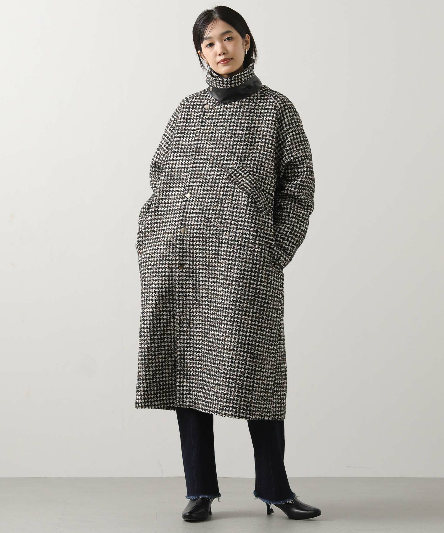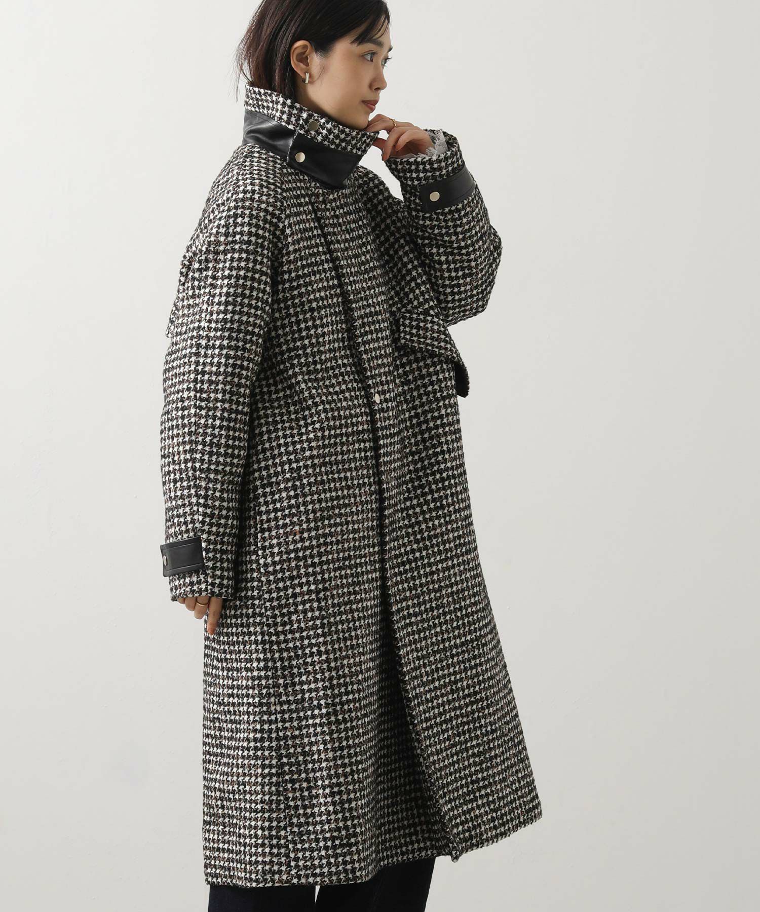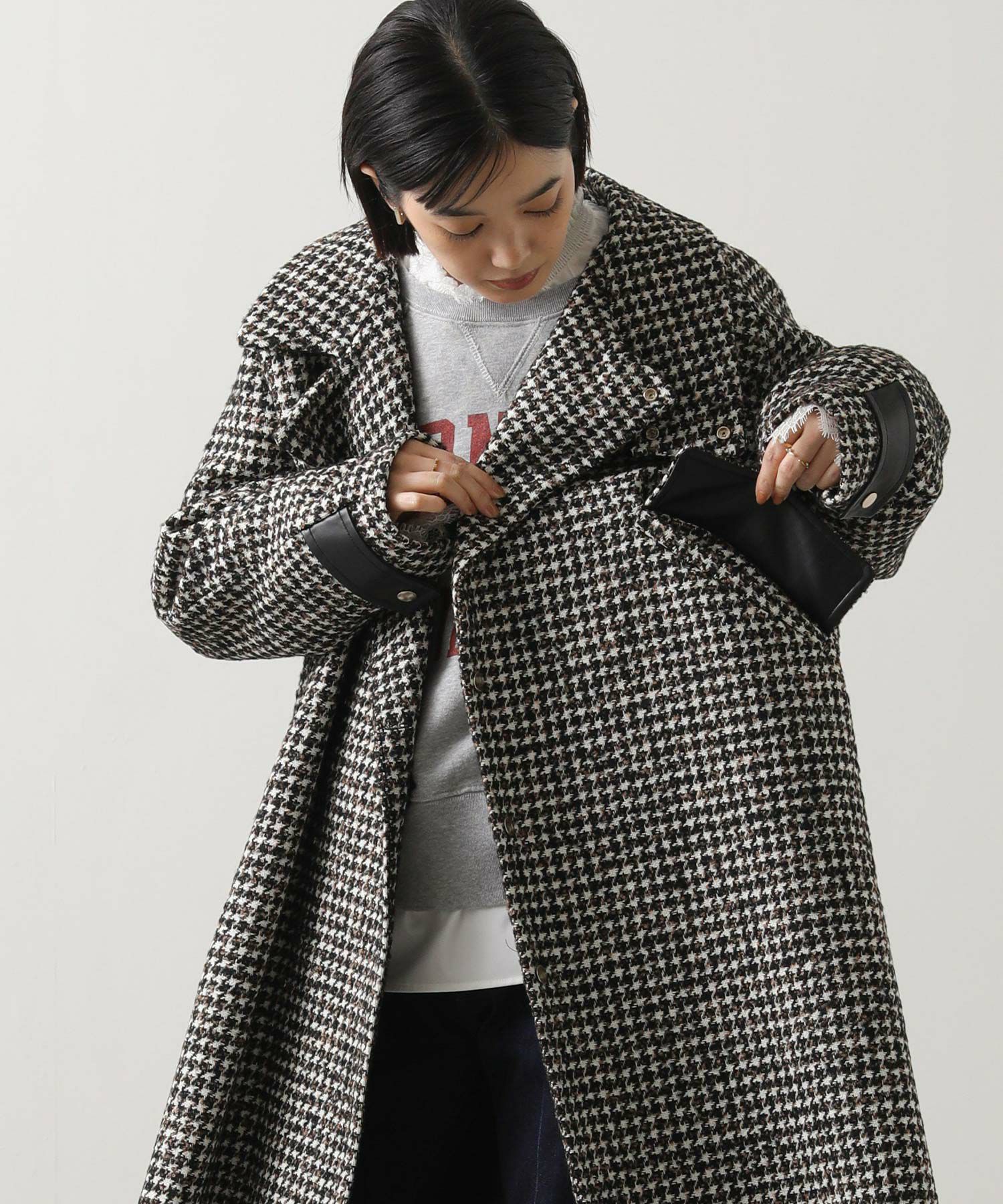 【LalliaMù(ラリア・ムー)】から、冬のスタイルに華やかさをプラスする、千鳥格子柄のロングコートをセレクト。