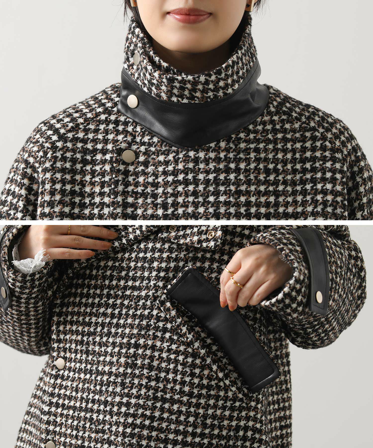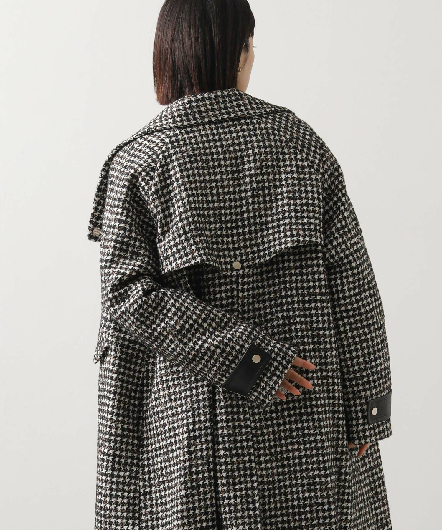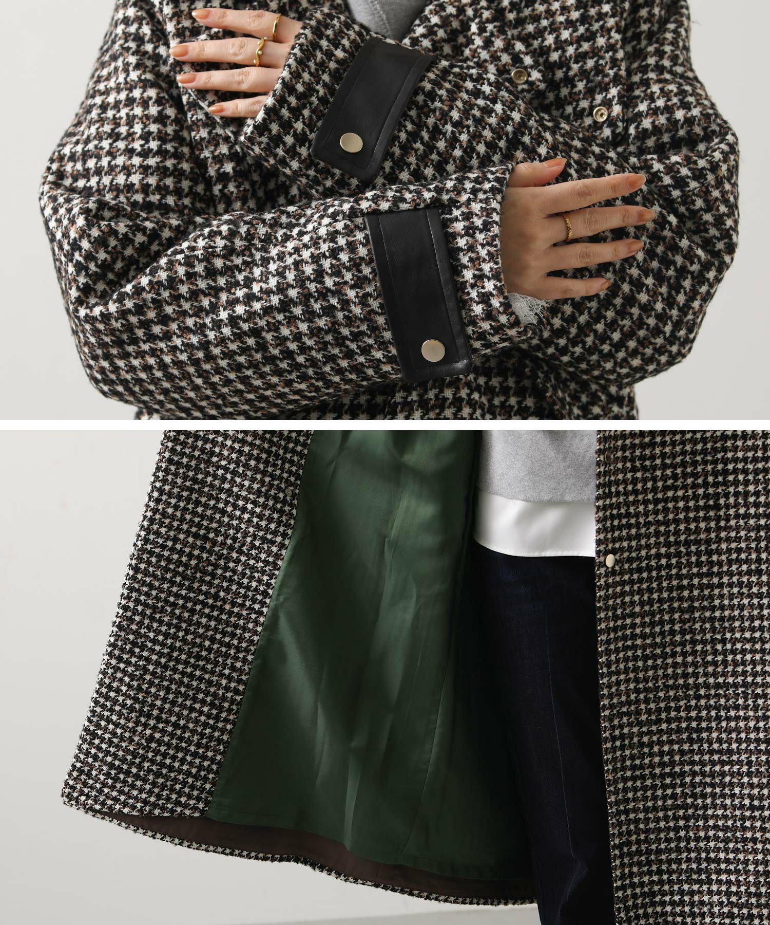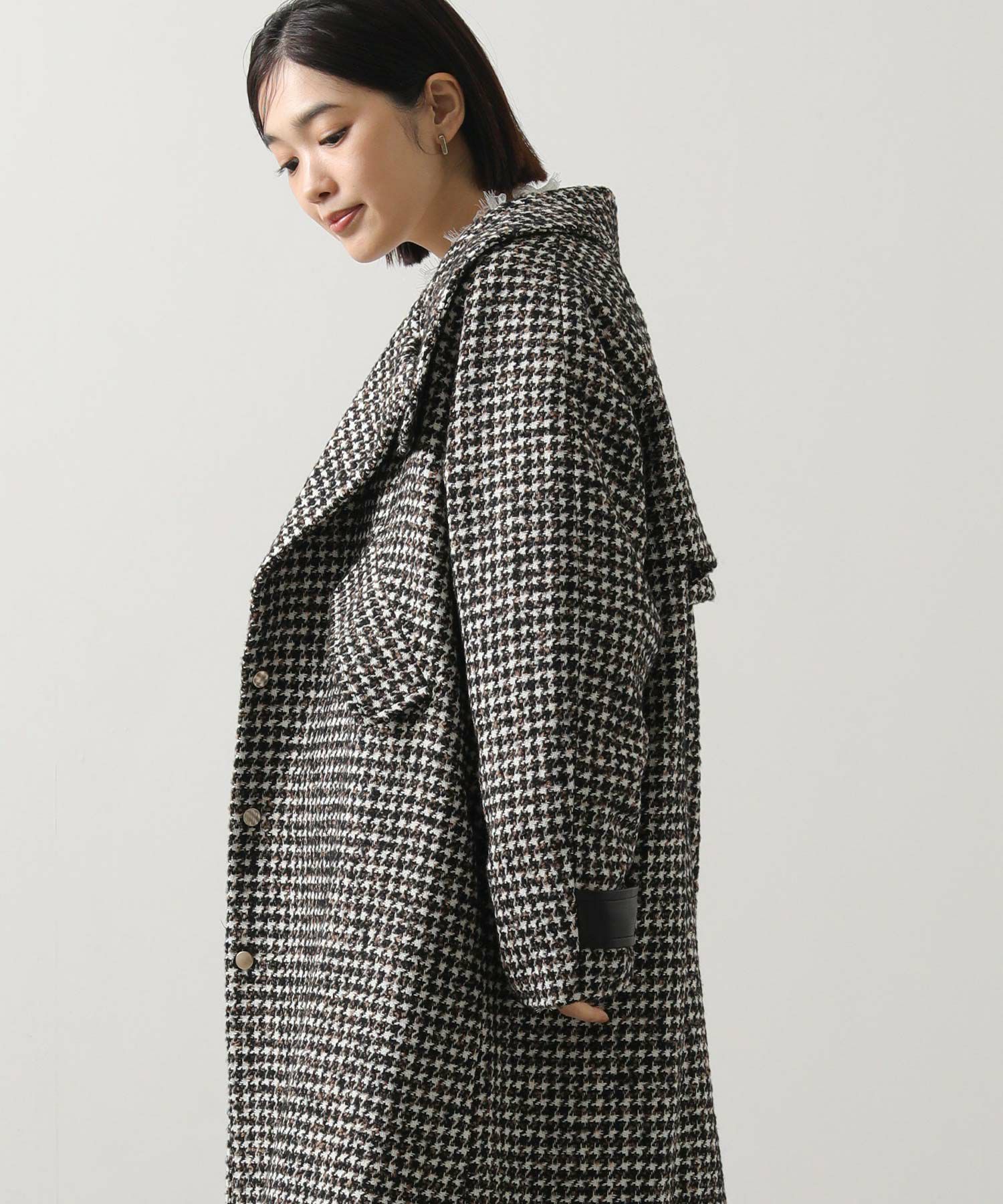 【LalliaMù(ラリア・ムー)】から、冬のスタイルに華やかさをプラスする、千鳥格子柄のロングコートをセレクト。