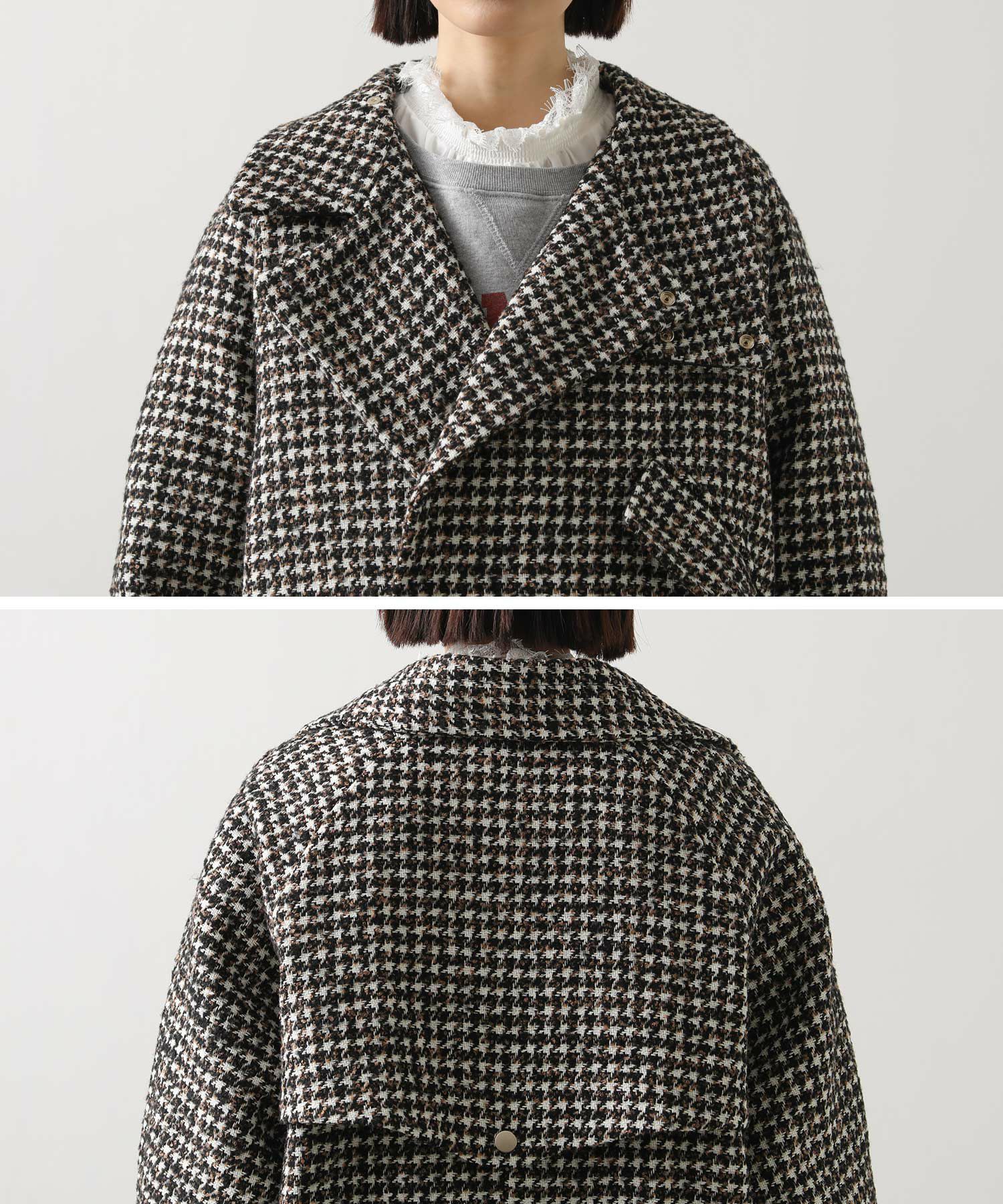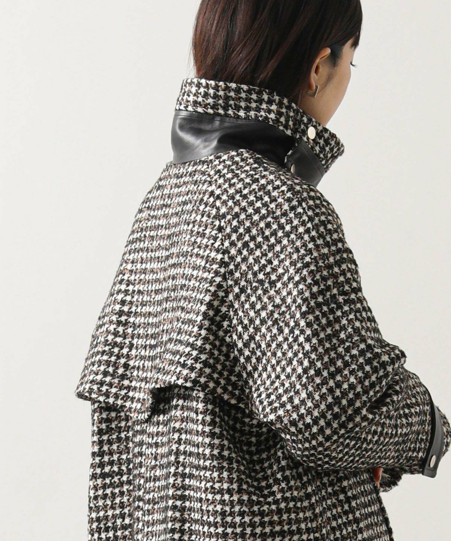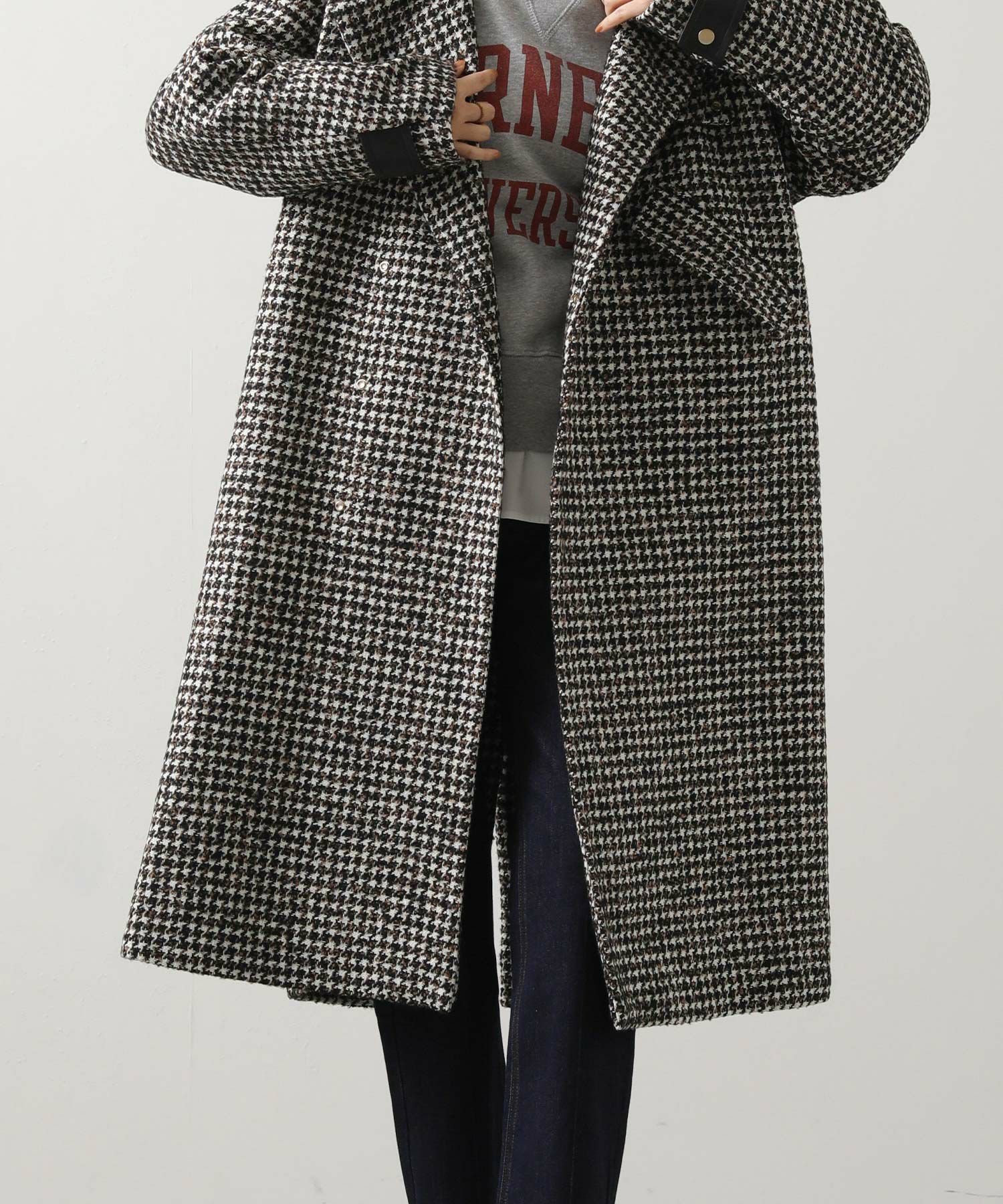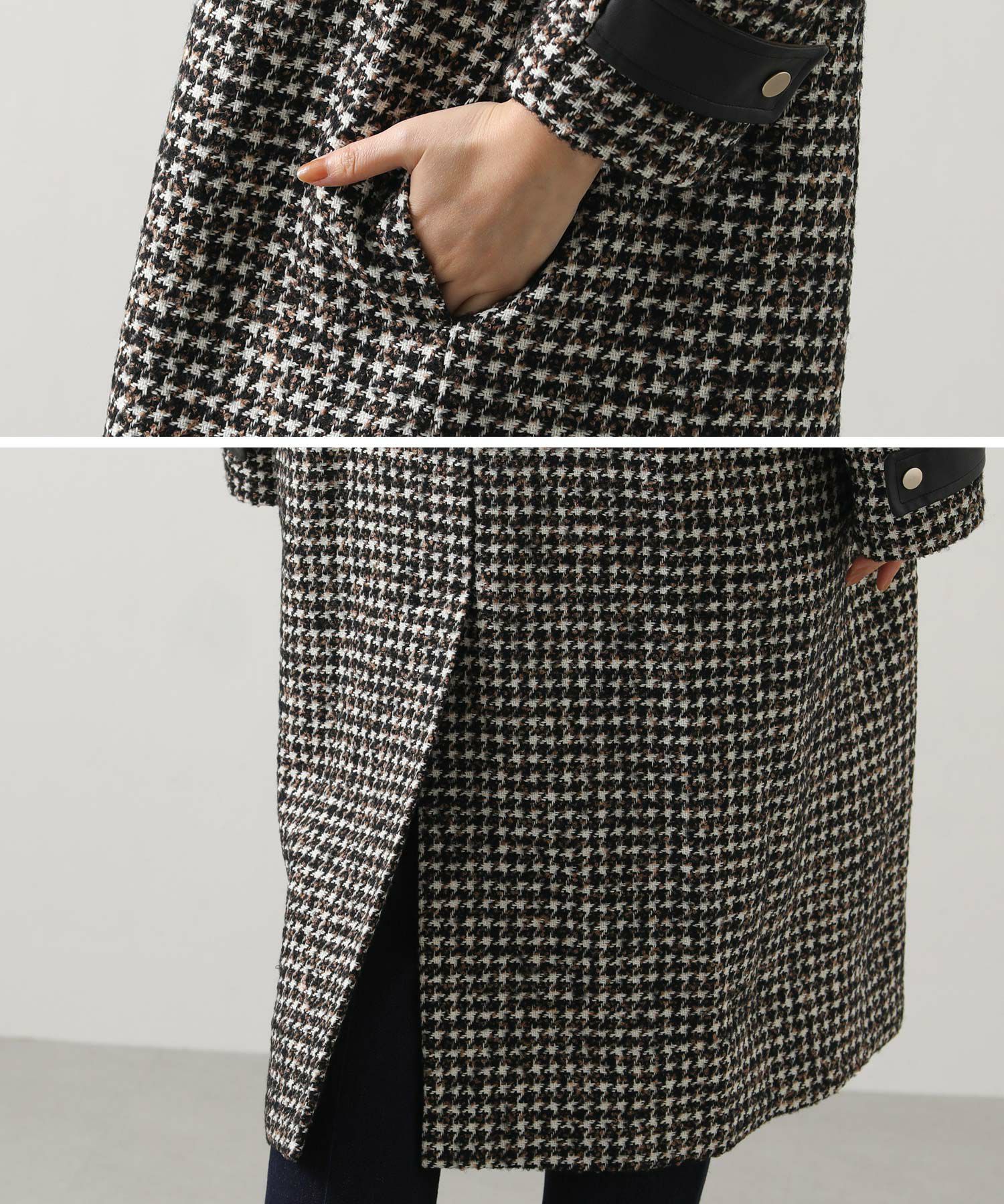 【LalliaMù(ラリア・ムー)】から、冬のスタイルに華やかさをプラスする、千鳥格子柄のロングコートをセレクト。