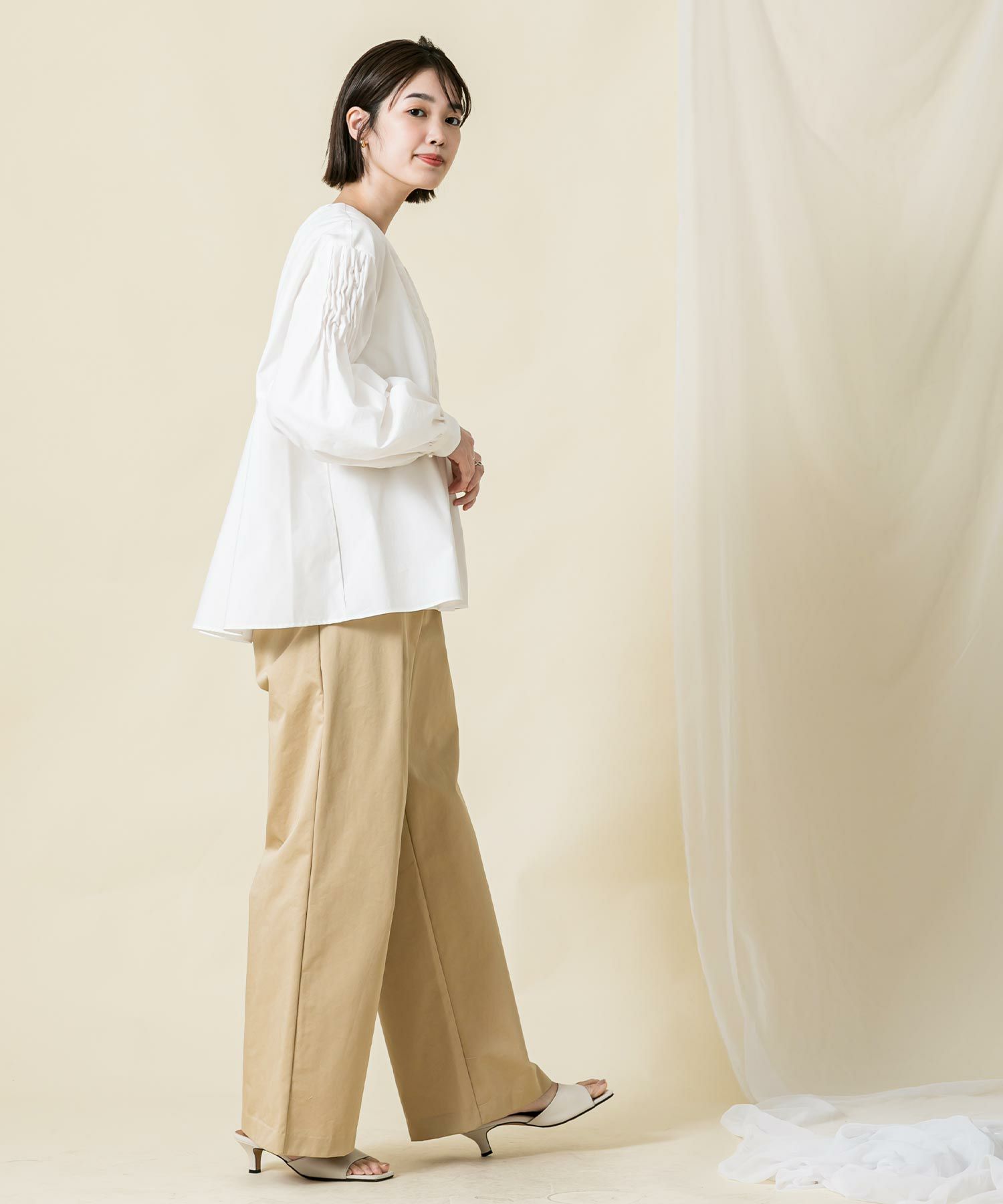 ※着用画像は撮影状況、光の当たり具合で色みが違って見える場合がございます。実際の色みについては、画像一覧の最後に掲載している詳細画像をご参照ください。