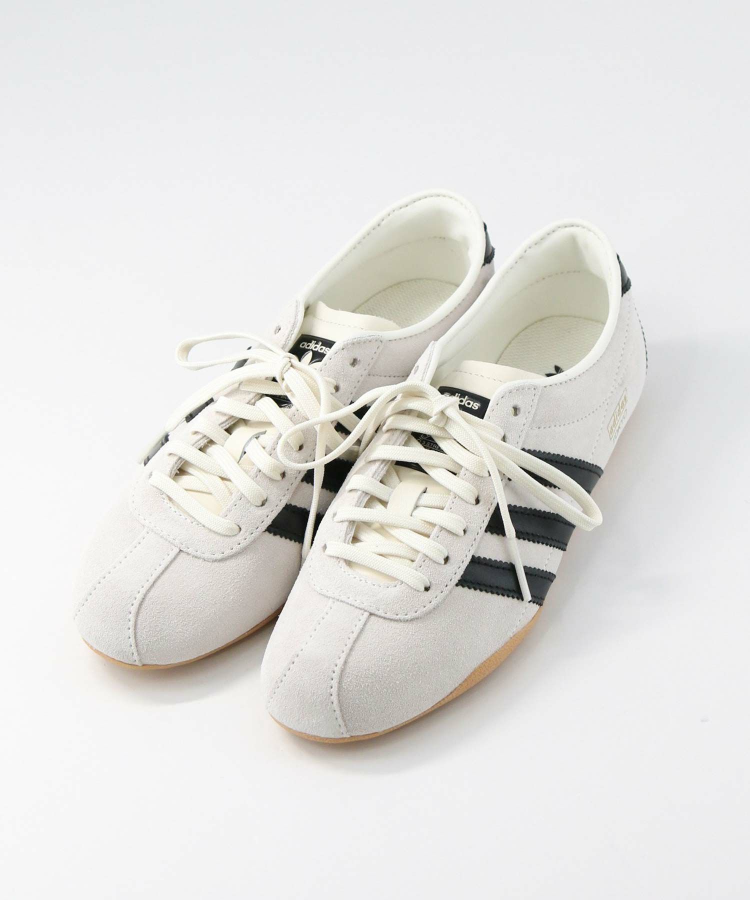 【adidas(アディダス)】らしいアイコニックなスリーストライプスと踵のデザインが特徴です。ソールはアスファルトやコンクリートの通りを堂々と歩くのに必要な滑りにくいラバーアウトソールを合わせています。