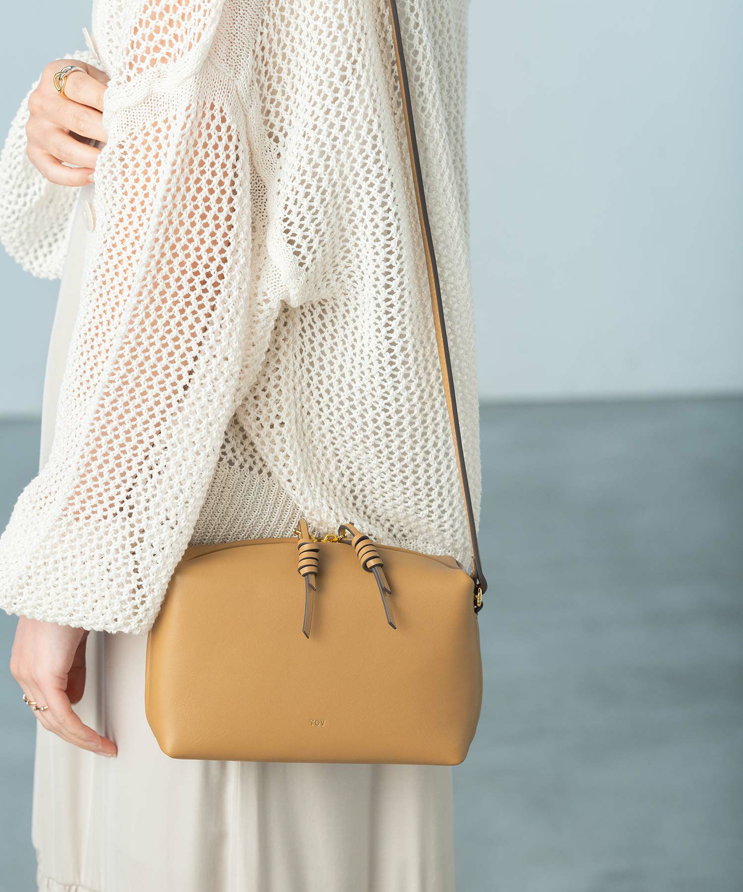 【TOV/トーヴ】折り紙で角を作るように四つ角が突き出たパターンが特徴的な新バッグライン「CONNIE」。