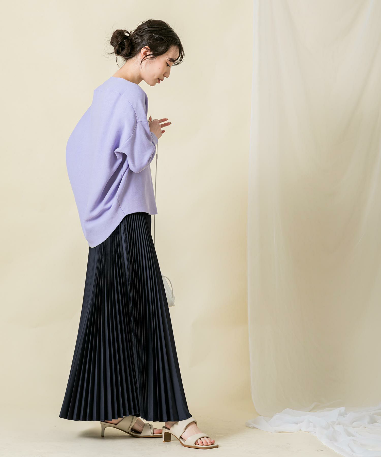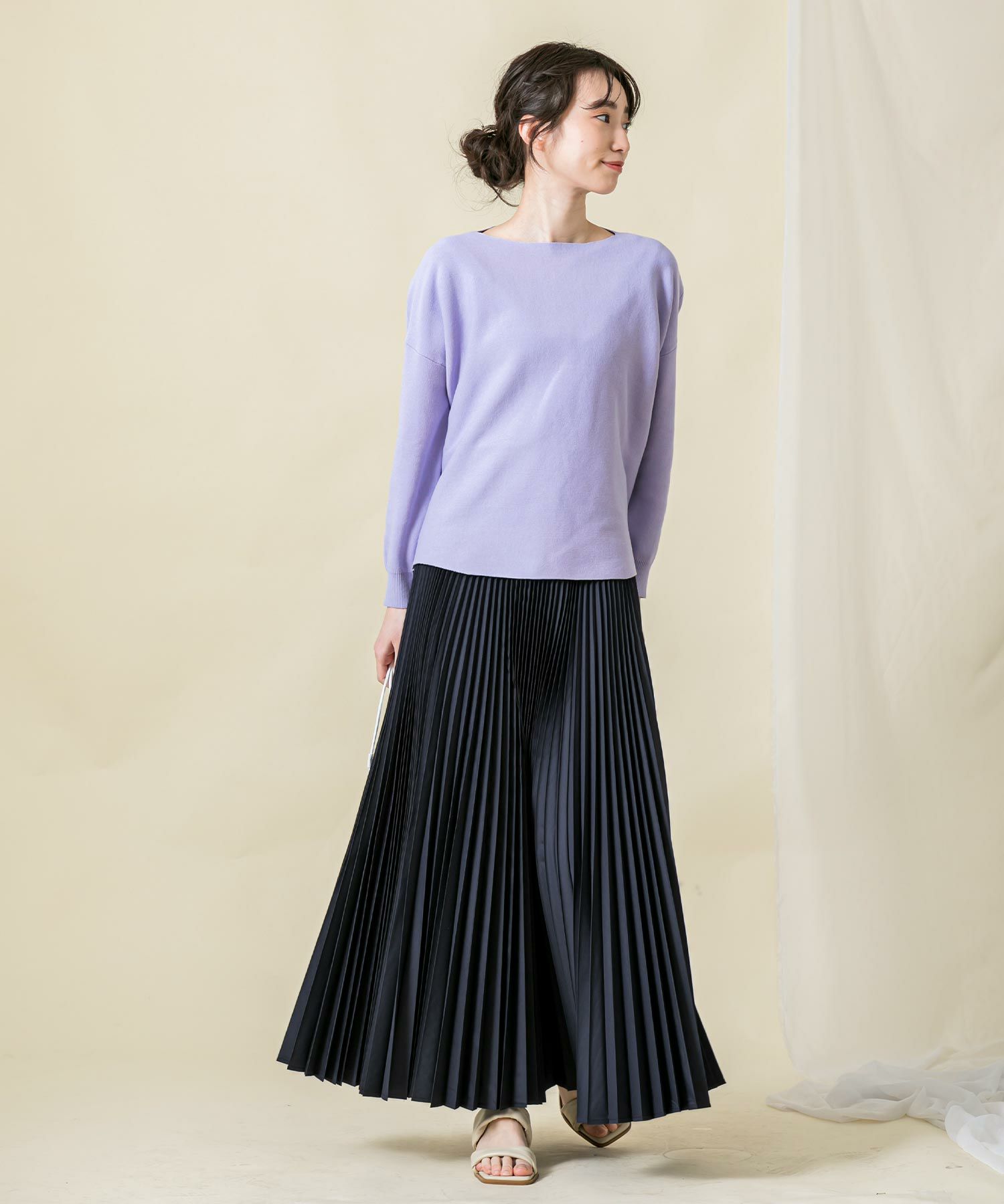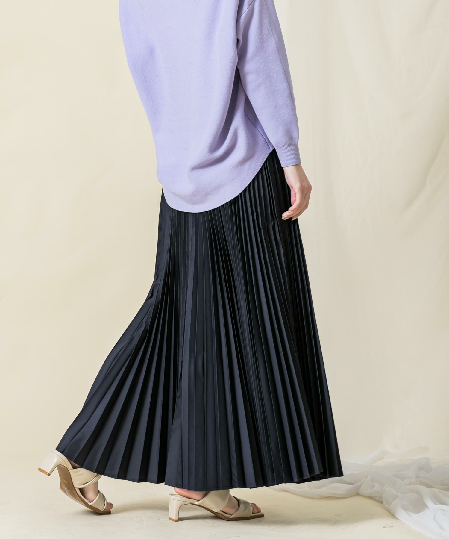 マキシ丈が今年らしい印象で、カジュアルからキレイ目まで幅広いスタイルに合わせやすく、動くたび綺麗にプリーツが広がるのでコーディネートを組むのが楽しくなる一着です。一着で存在感を放ってくれる主役級のアイテムで、ストレスフリーなウエストゴム仕様も嬉しいポイント。