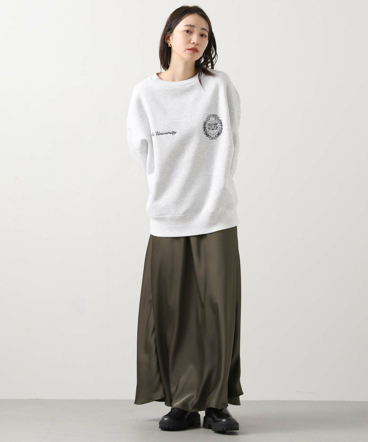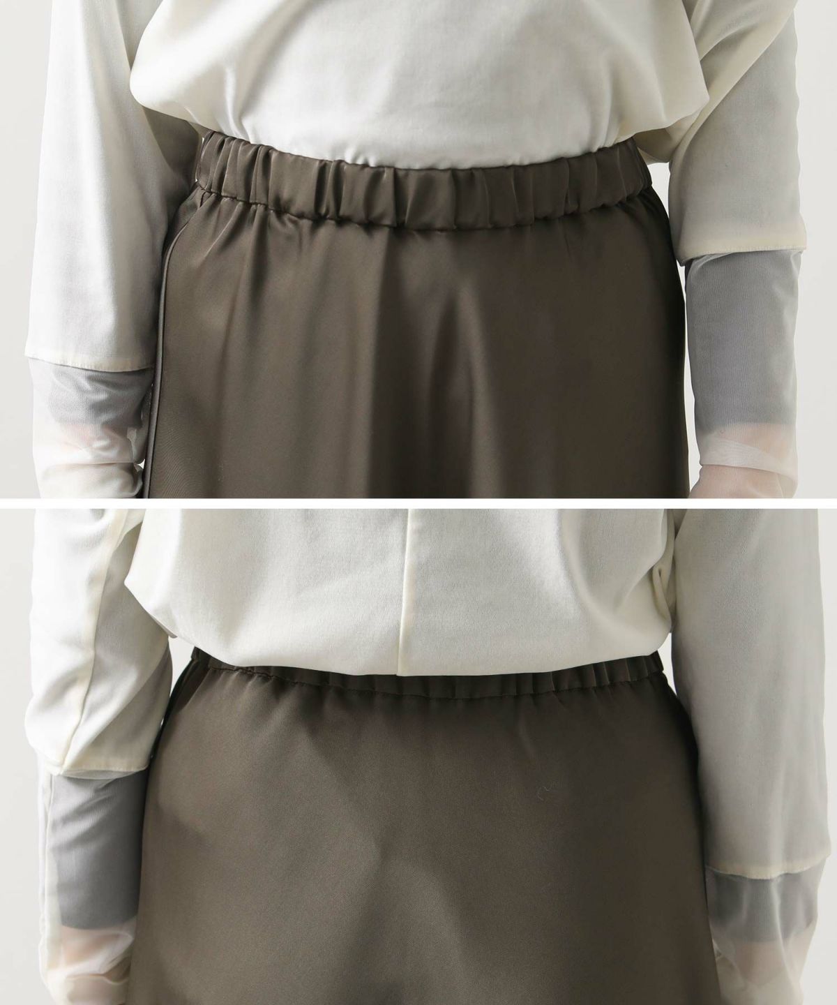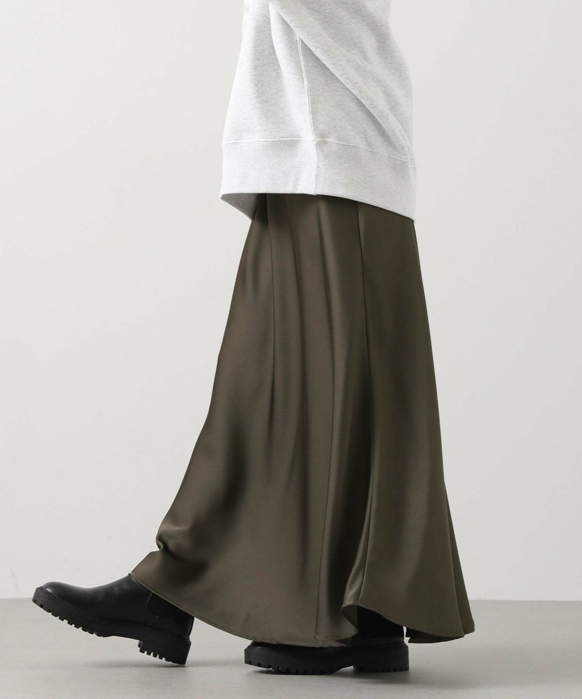 サテンバイアスセミフレアスカート