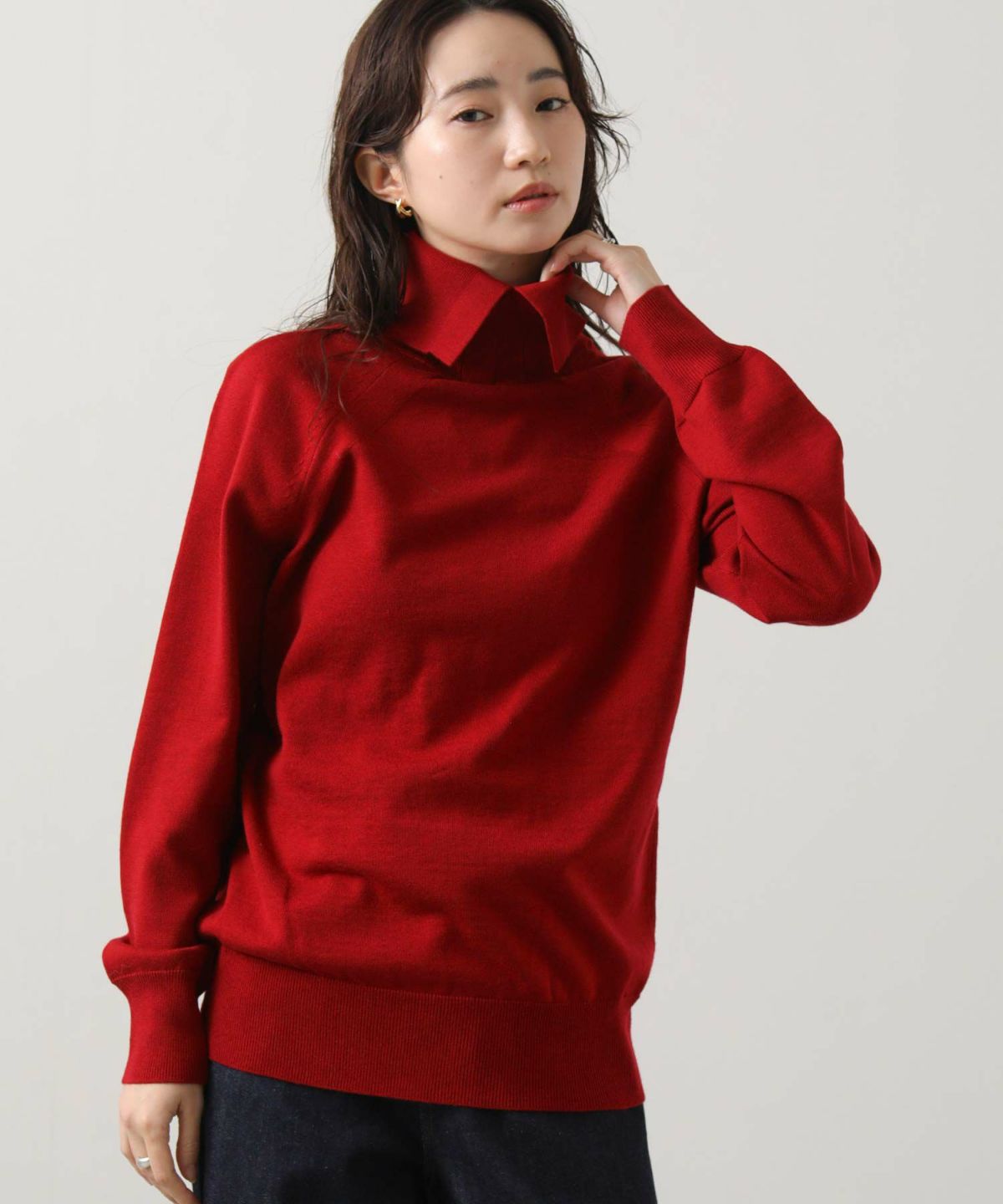 スリットハイネック前後2WAYニット