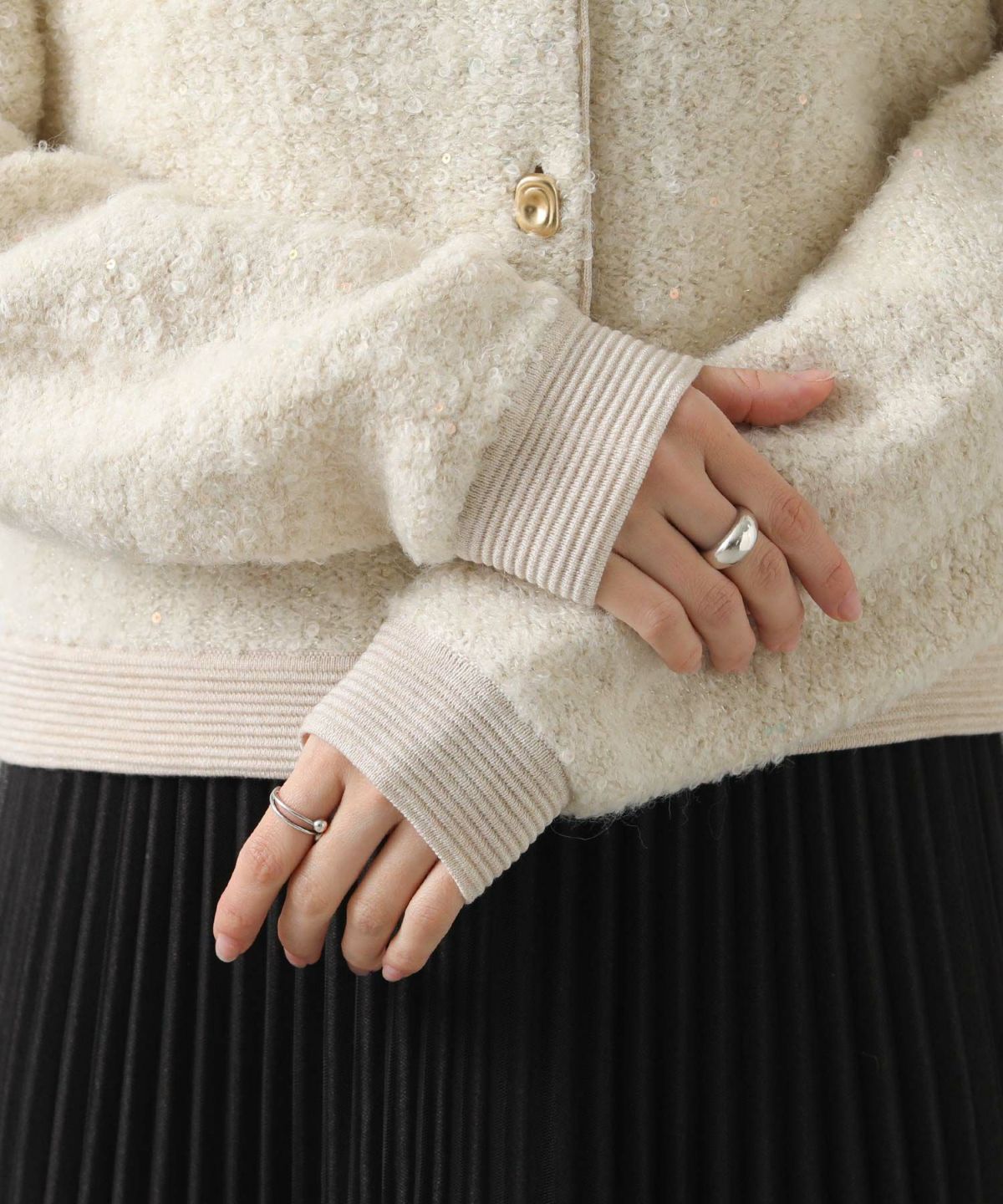 2wayシャギー楕円金釦トップス