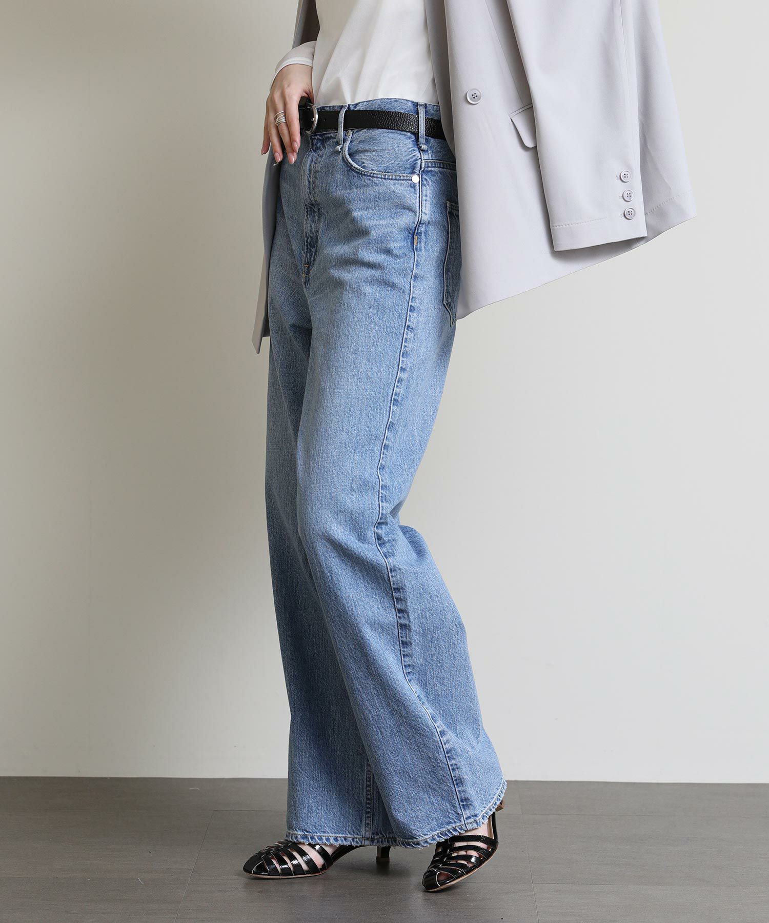 ウエスト周りはすっきりとさせたハイライズ、膝や裾は大きく取ったワイドストレートデニム。腰位置が高く見え、脚長効果抜群の1本。あえて腰履きをし、裾にクッションを持たせルーズに履く履き方もお勧めです。