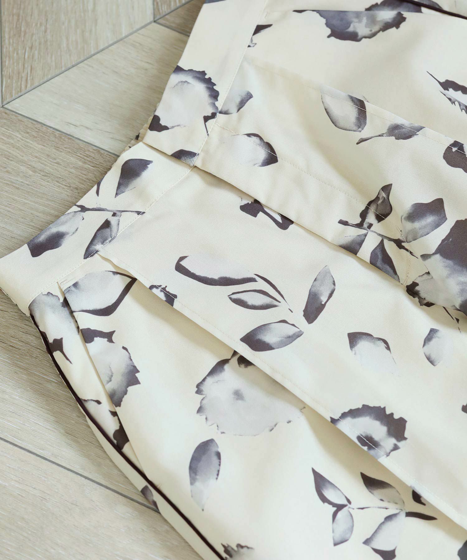 シックな色合いの滲んだフラワーモチーフのパンツ。