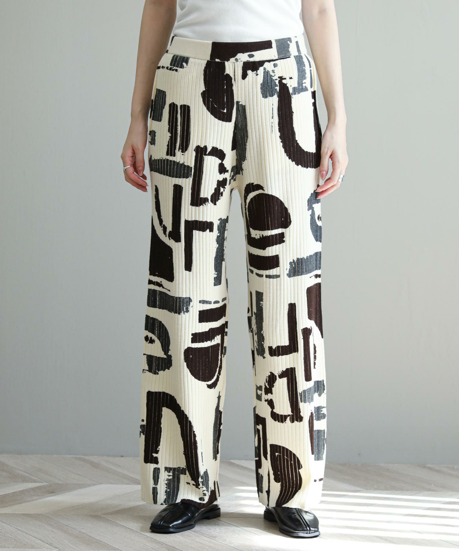 1953年にイタリアでテキスタイルデザイナーとしての活動を開始したBruno Boggiaの抽象画をプリントしたニットパンツ。
