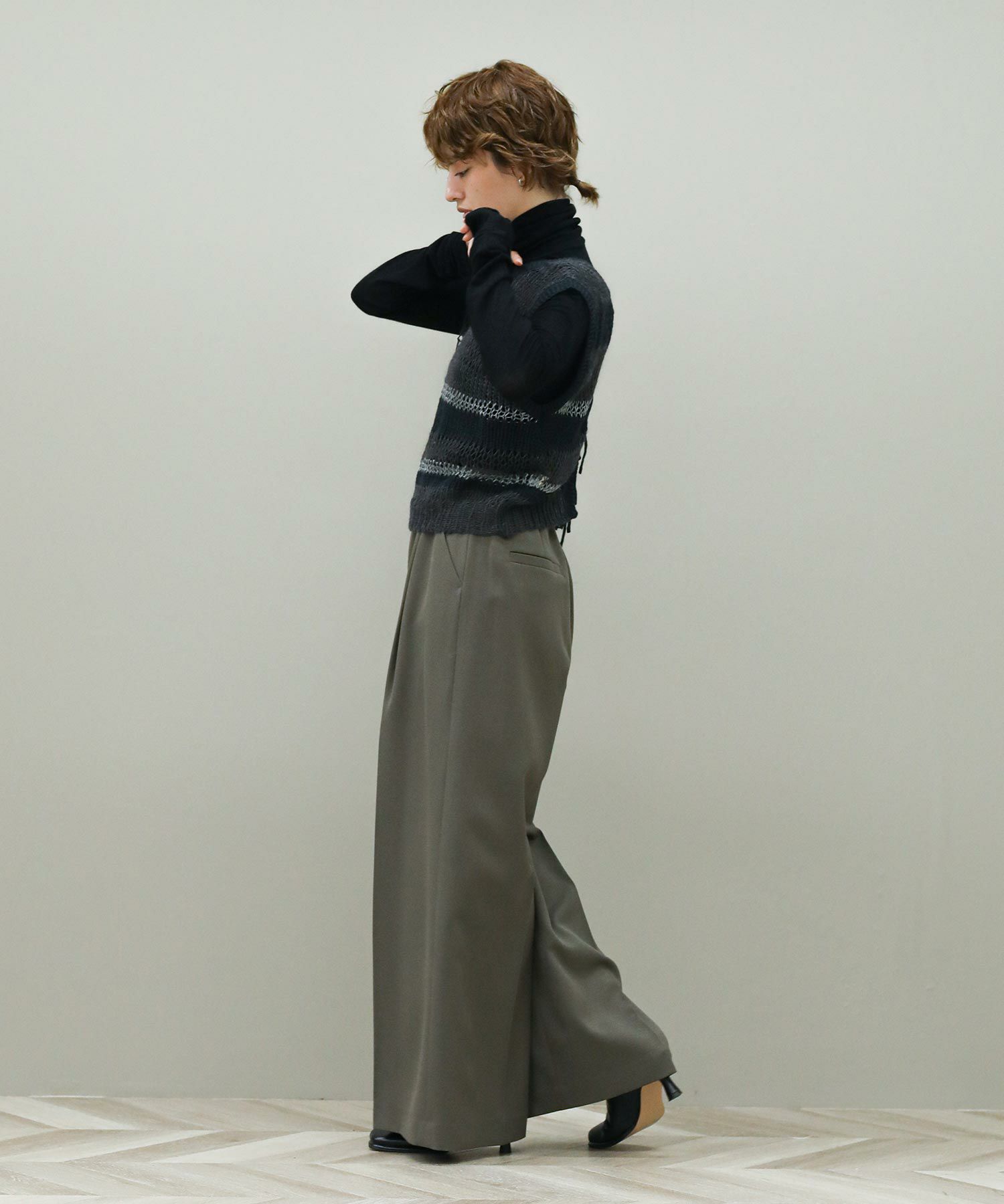 ※着用画像は撮影状況、光の当たり具合で色みが違って見える場合がございます。実際の色みについては、画像一覧の最後に掲載している詳細画像をご参照ください。