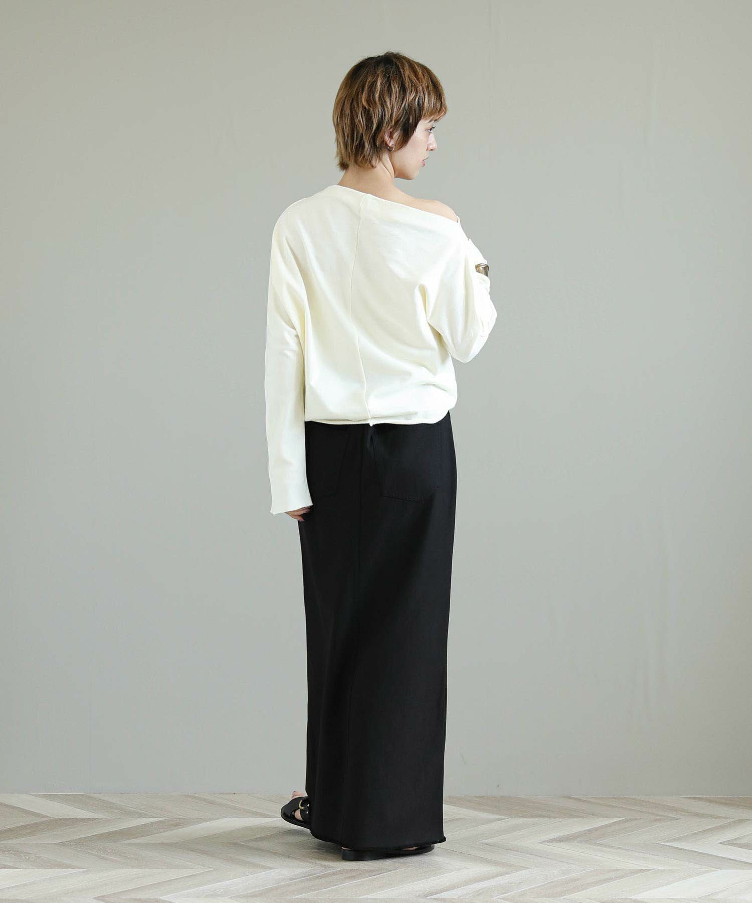 裾や袖をカットオフにしている事でロングスリーブながら軽やかな印象。