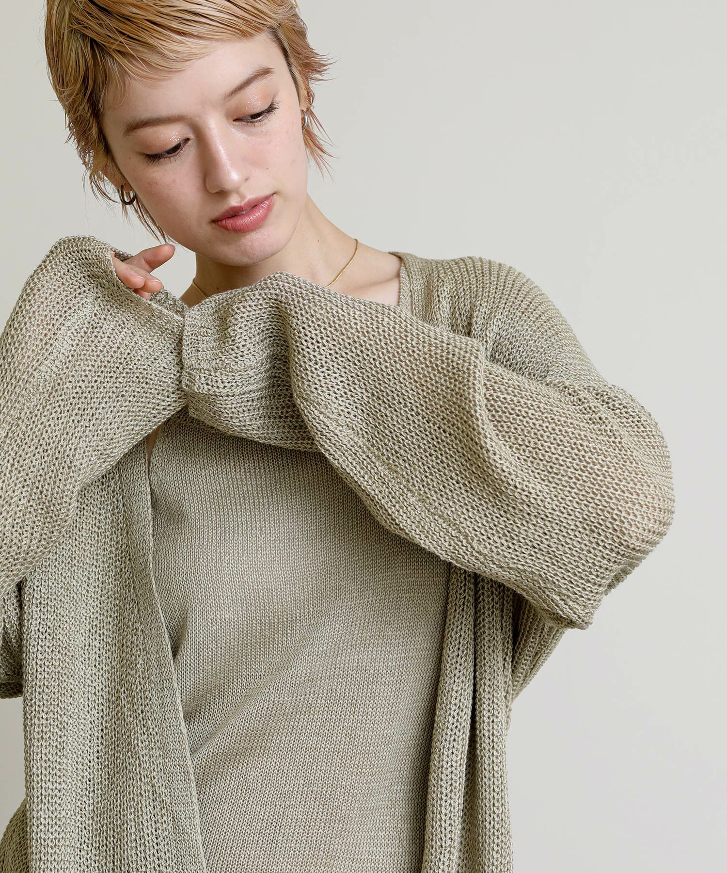 ニットのキャミソールとカーディガンがセットになったアイテム。