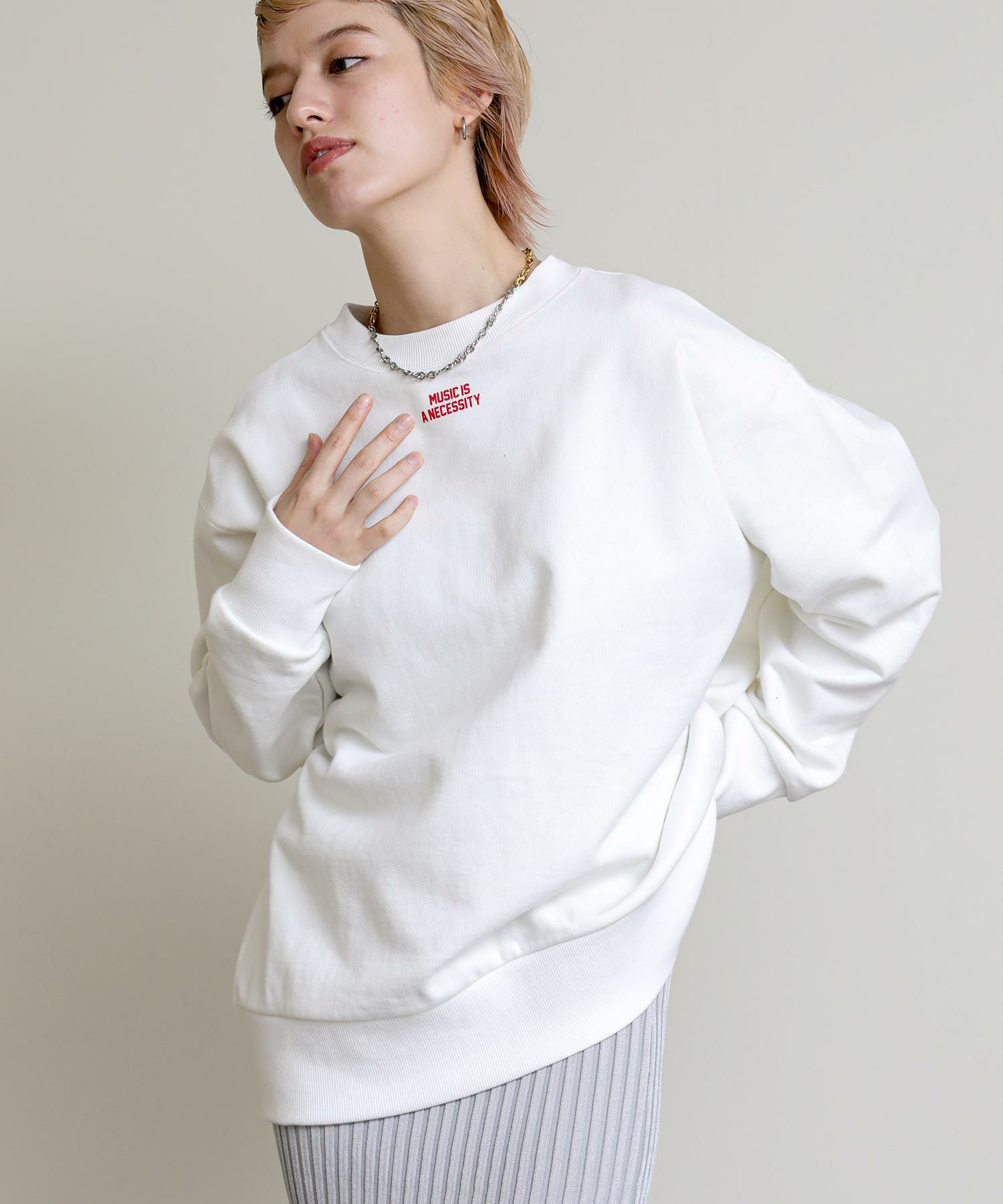 ロックテイストが可愛いビックロゴと、衿ぐりのさりげないロゴの2パターンを気分に合わせて使い分けできるデザインに。国産の裏毛スウェットを使用したゆったりとしたサイジングは、着心地抜群です。赤が映えるおしゃれなオフホワイトと、ニュアンスカラーが美しいラベンダーの2色ご用意いたしました。