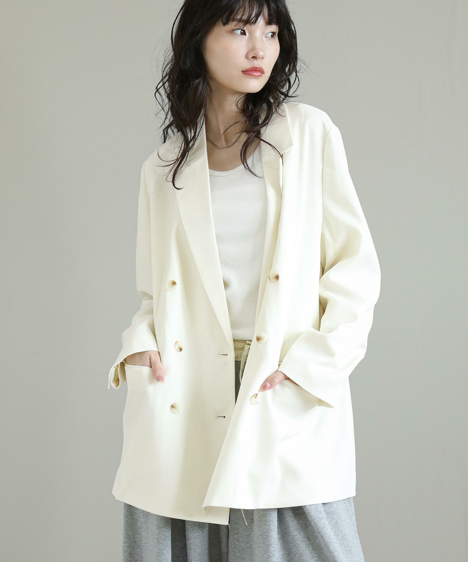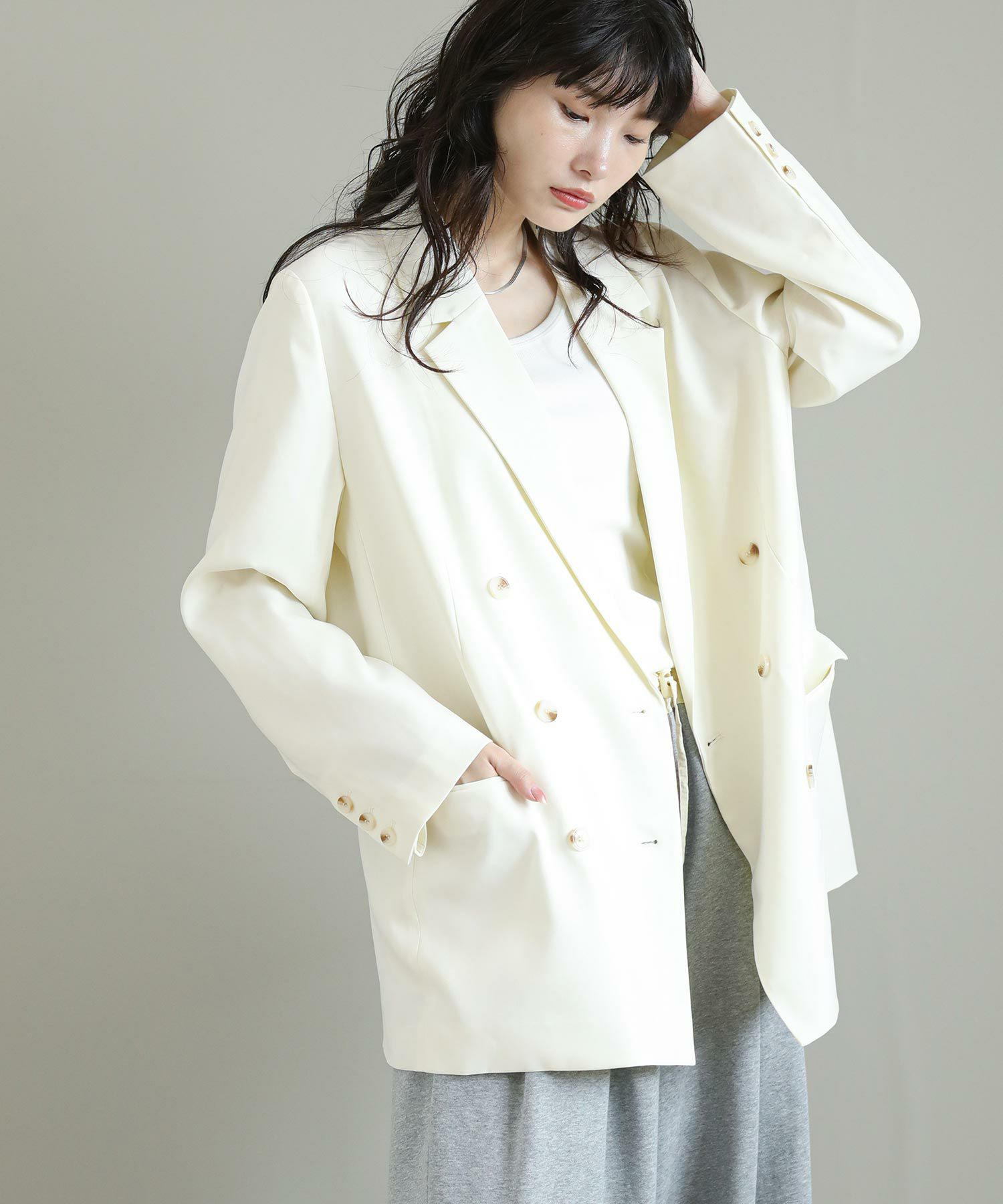 リジョイスの定番ダブルテーラードジャケット。