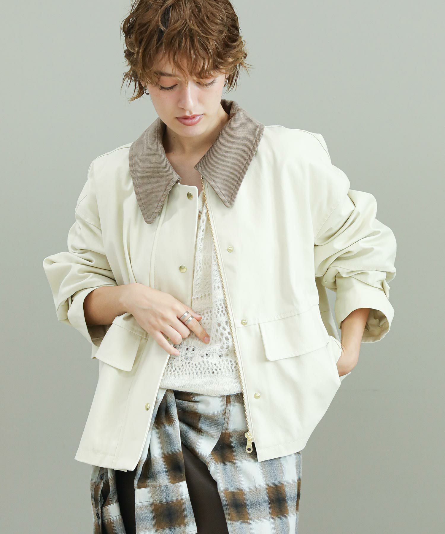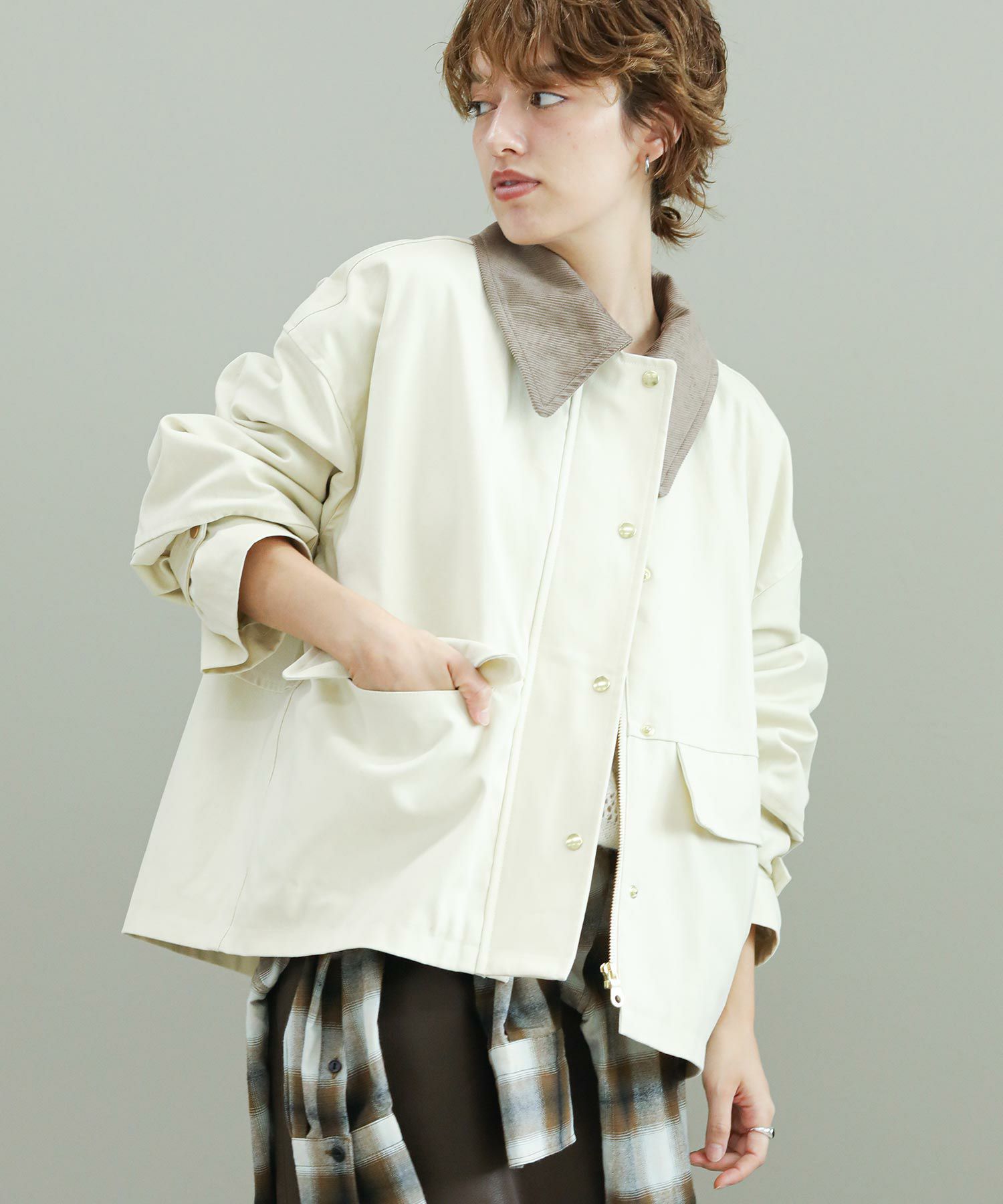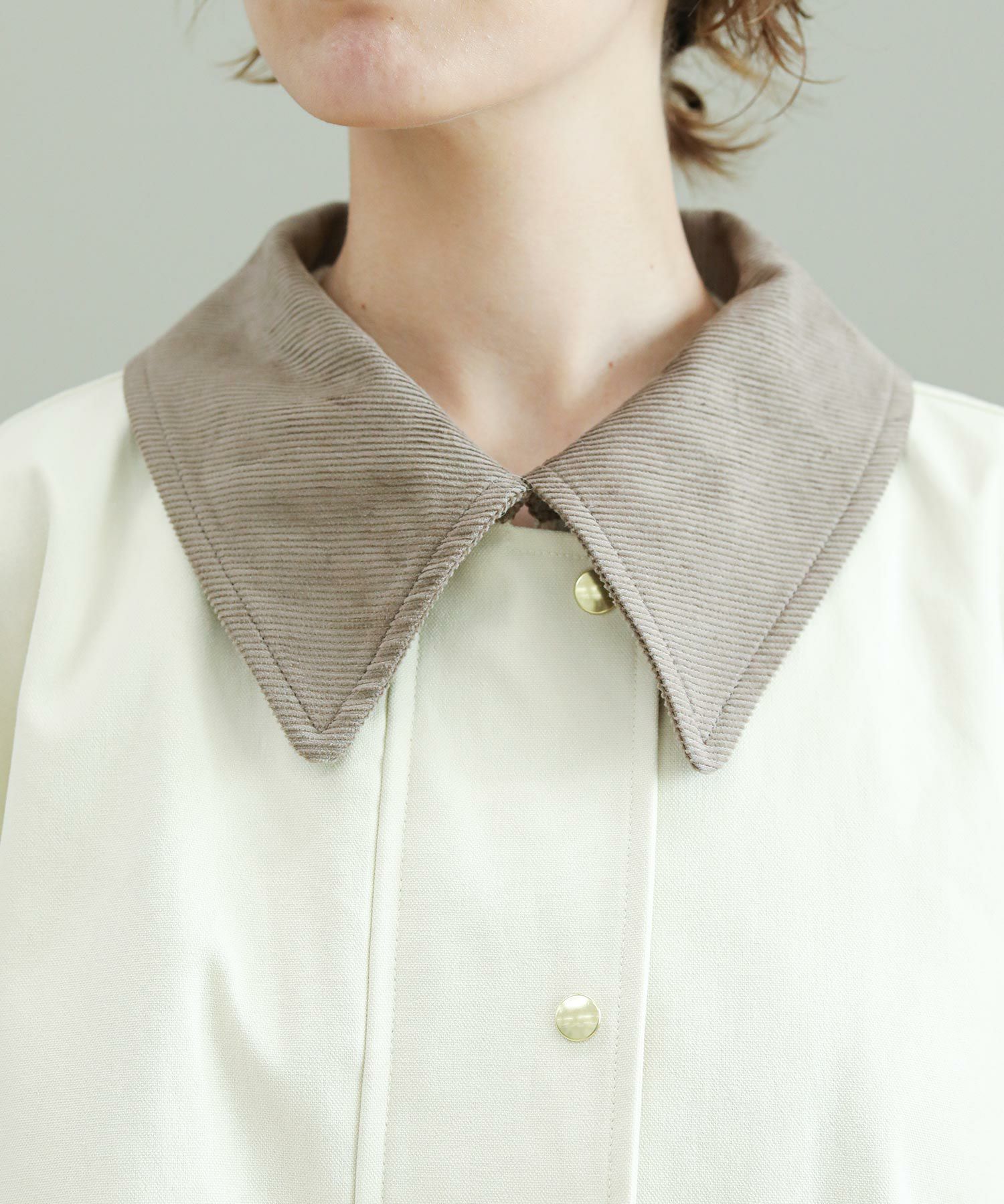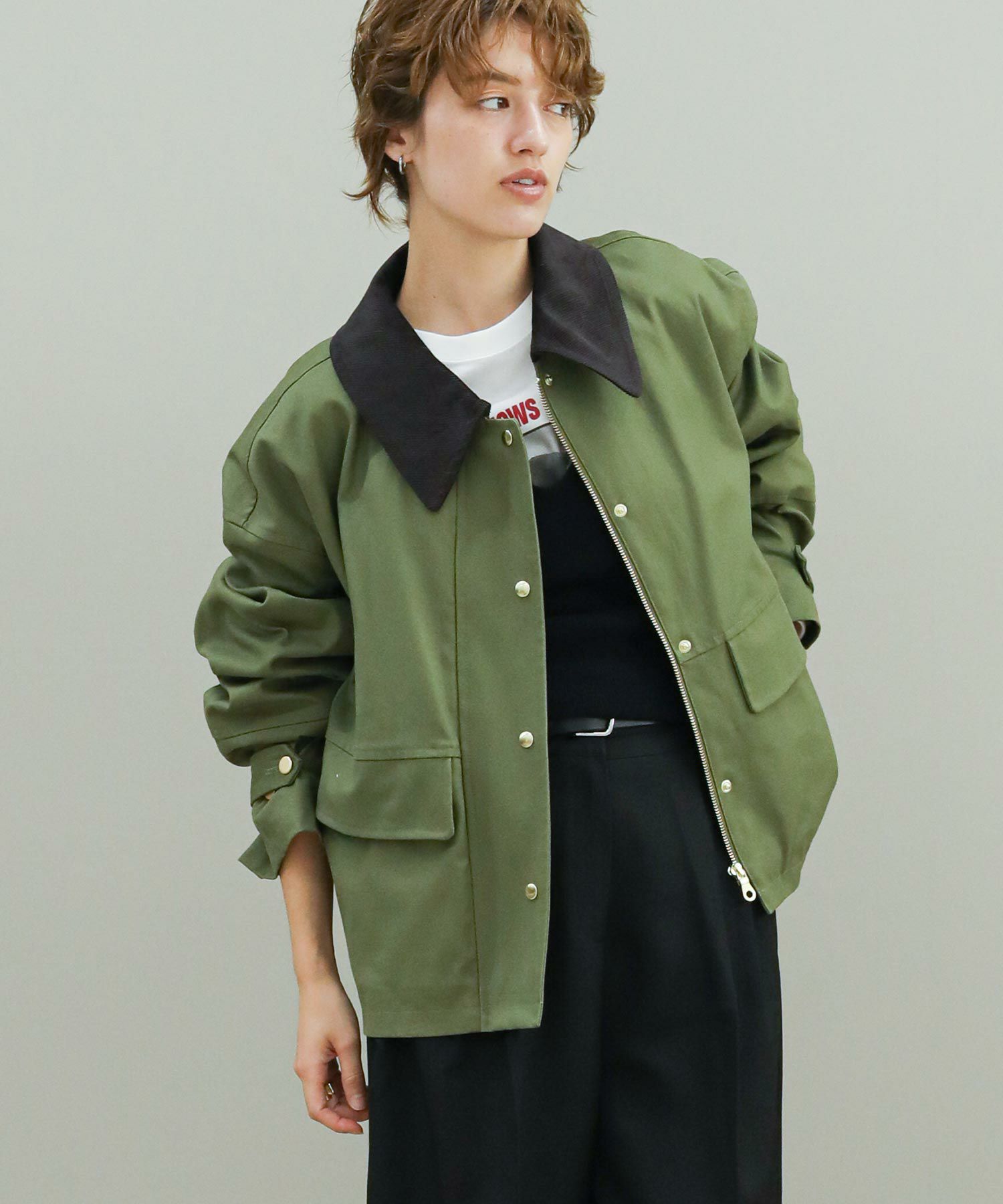 品の良さを損なわない、ヴィンテージライクな生地の風合いも魅力的な1着。配色の襟がコーデのアクセントに。スラックスやシャツなど綺麗目なアイテムとも合わせてコーディネートしていただけます。
